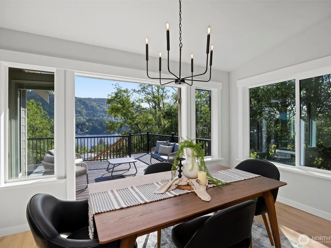 Full-length deck with lake views