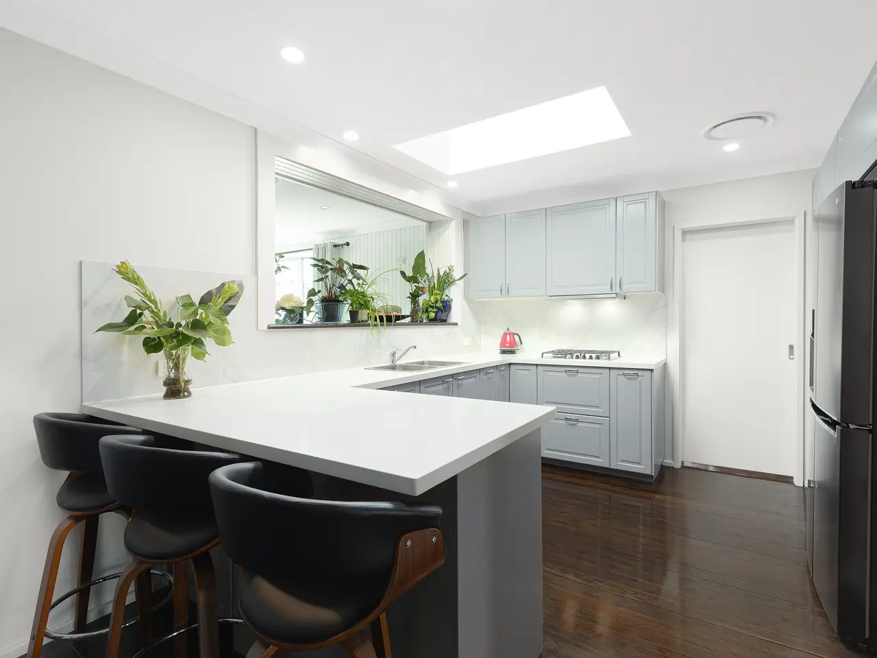 Spanning one spacious and highly versatile level, this unique home is exceptional in every way – from its elegant looks and modern comfort features, charismatic entertaining zones and low-maintenance finish inside and out, to its impressive options for extended family living. Nestled in a peaceful neighbourhood prized for its day-to-day convenience, it provides a wonderful sanctuary lifestyle within strolling distance of local parks and playgrounds, the IGA shopping centre, CBD and Chatswood transport and Belrose Public School. • Well-presented single storey property in a sought-after locale • Flexible use with multiple living areas + private side access to rear • Quality timber floorboards and Velux skylights throughout • Beautiful walled courtyard plus large sunny back deck and lawn • Stylish kitchen boasting 40mm stone benchtops and breakfast island • Ceiling fans + ducted A/C, gas fireplace, 8kw solar, lock-up garage • Minutes to John Colet School, bush walks and Glenrose Village