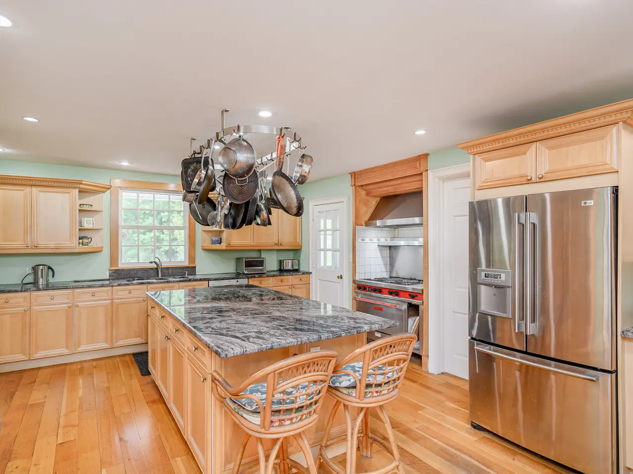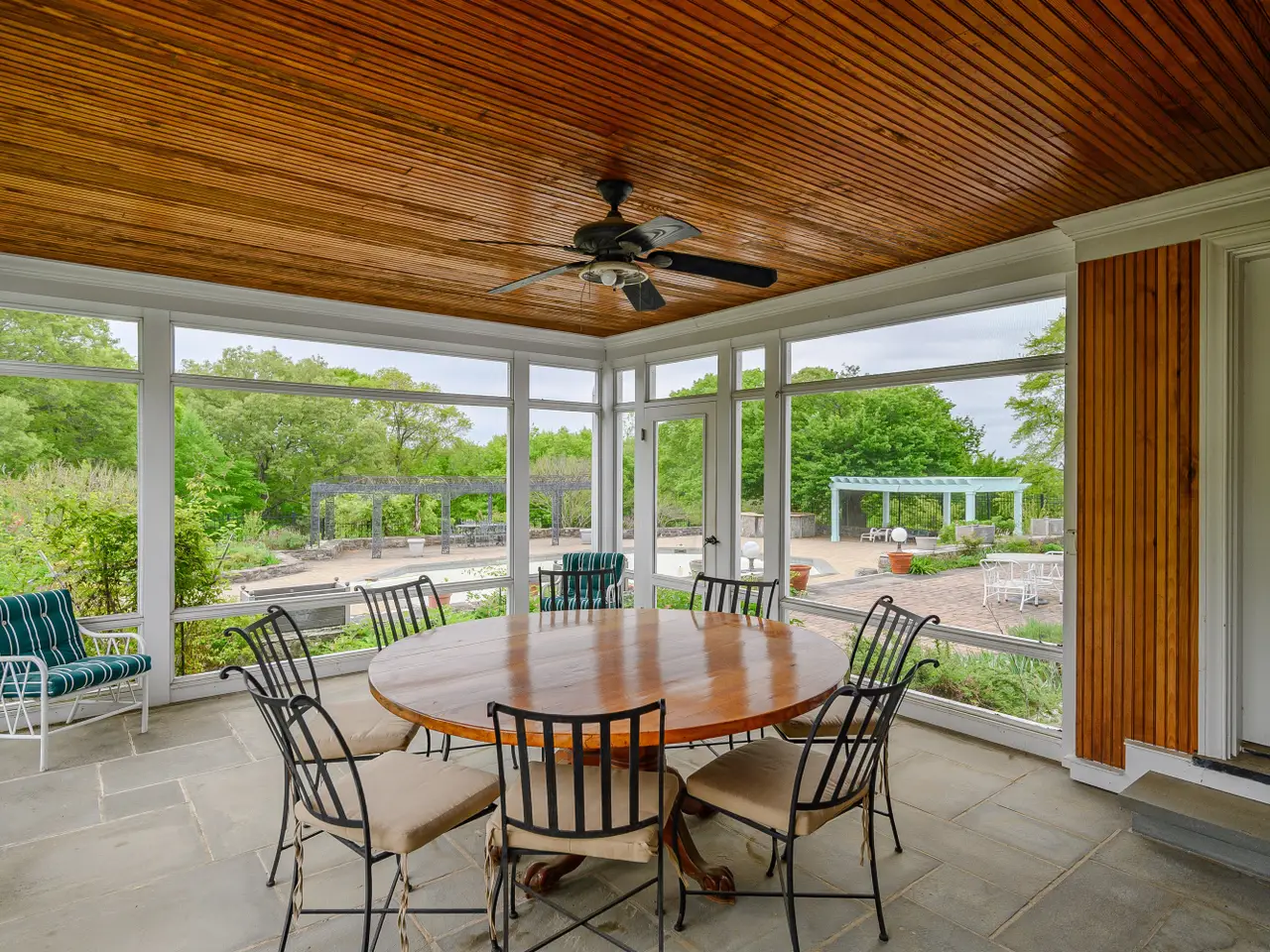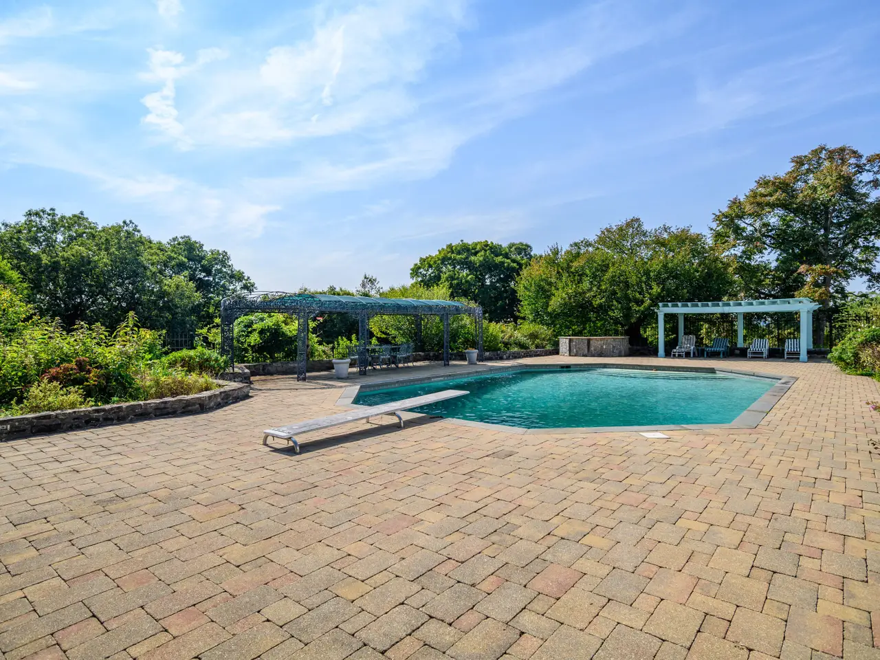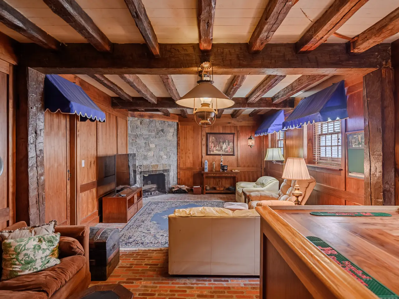 Welcome to 49 Great Ring Road-an iconic estate with breathtaking views and a classic 1940 built home full of charm and elegance. Step into the front-to-back foyer and take in the sight lines to the expansive stone patio and sparkling pool. At the heart of the home is the great room, featuring a soaring ceiling and a grand fireplace-perfect for gatherings. The custom cherry sunroom is a showstopper with wide plank chestnut floors, coffered ceiling, and French doors leading outside. Host memorable dinners in the banquet-sized dining room with built-ins and a cozy fireplace. The updated kitchen features granite counters, a breakfast bar, large pantry, and adjacent laundry area. A delightful breakfast room and an oversized screened-in porch complete the space. The primary suite is a two-room retreat with two fireplaces, ample closets, dual baths, and a balcony overlooking the grounds. Upstairs, you'll find three additional ensuite bedrooms, plus two more bedrooms with a shared full bath. The finished lower level includes a custom bar and a parlor with fireplace. Potential in-law suite over the kitchen with a full bath. A detached two-car garage includes guest quarters. Additional land available-an extraordinary opportunity. The right side of the house features air conditioning via a split system, while the left side (as you face the home) does not have A/C but could be easily updated. The guest house will require a new kitchen. There is also space above the kitchen that could serve as an in-law suite or playroom. Please refer to the floor plans for a better understanding of the layout-this exceptional home offers an abundance of flexible and beautifully designed space.