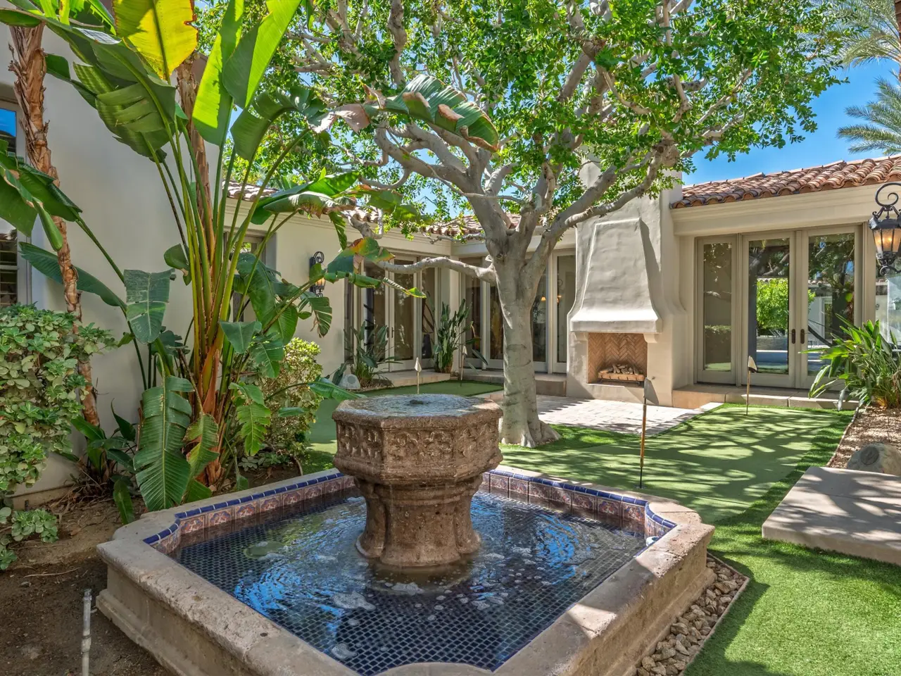 This quality built, old world designed masterpiece is one of the most substantial homes at Mirada! Set on .80-acre lot with commanding down valley, night-light and mountain views, with a luxury resort atmosphere. This 6,800 square foot residence consists of 5 bedrooms, a dual built-in office, a theater & an exercise room. The entry Courtyard features a fountain & a fireplace seating area. The massive iron entry door leads to an impressive foyer and on to a Grand Living Room with high open beam ceilings & massive fireplace. An incredible gourmet cook's kitchen with the best of all appliances, granite countertops & custom cabinets adjoins a spacious family room and breakfast nook. The formal dining room includes a wine room and views out to the courtyard. The Primary Bedroom Suite enjoys mountain views, fireplace and two bathrooms. There's a 2 Bedroom Casita with Sitting Room that opens to the pool area. Incredible outdoor living area and dining area that share a fireplace and overlook the resort style pool & spa. Residents of Mirada Estates enjoy exclusive privileges at the adjacent Ritz-Carlton Rancho Mirage, including dining, world-class spa, fitness facilities and special rates for guests.