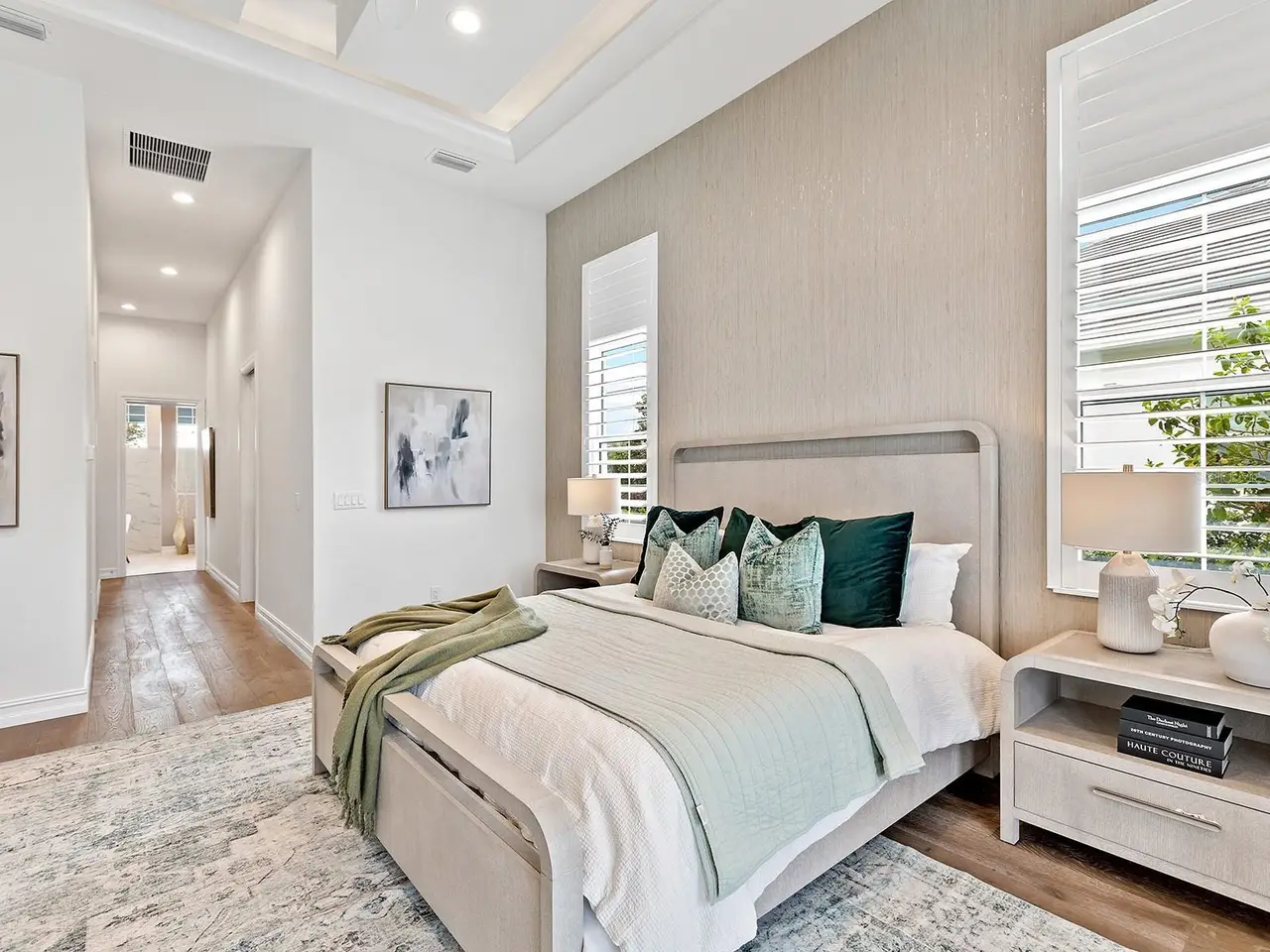 Dual walk-in closets with custom systems