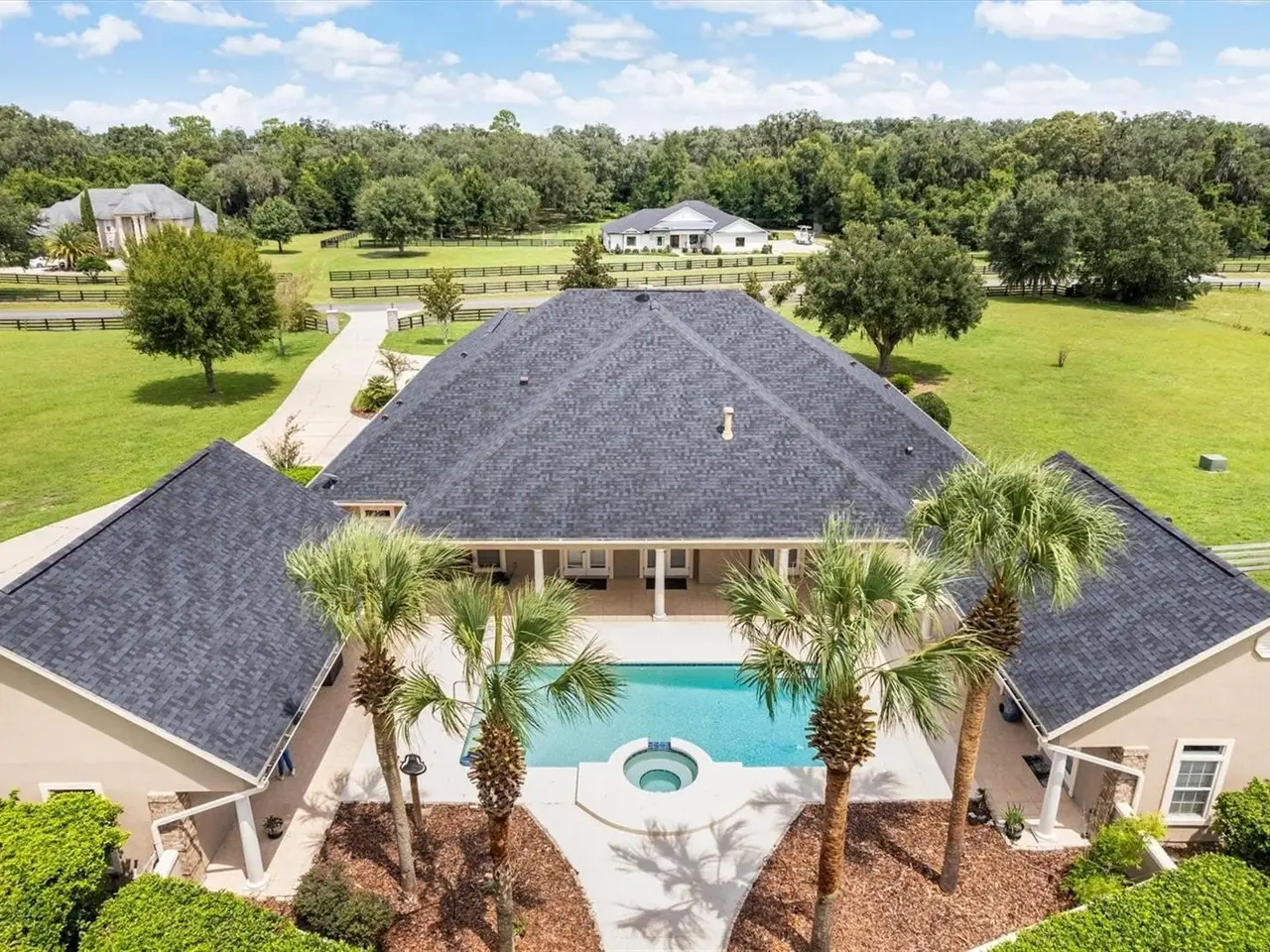 One or more photo(s) has been virtually staged. Luxury Pool Home with In-Law/Guest House, and Dual Three-Car Garage This stunning six-bedroom, five-bathroom, six car garage home located in Pradera offers exceptional living inside and out. Pradera is an equestrian-friendly, gated community in Archer, Florida known for its spacious lots, luxury homes, and miles of trails for riding, walking, and biking. Residents enjoy a blend of seclusion and convenience, with easy access to I-75, (6miles) UF/Shands (10miles) the World Equestrian Center, (21 miles) Restaurants, and Shopping. The main residence features five bedrooms, four bathrooms, a dedicated office, a spacious upstairs bonus room and an attached three-car garage. The three-way split plan is perfect for a large family. A detached in-law or guest house with a private entrance adds comfort and flexibility, while an additional three-car garage provides ample space for the car enthusiast. Outdoors, the beautifully fenced pool area offers a lovely pool and heated spa, an outdoor shower, and a summer kitchen. Recently updated with new pool area fans and a new pool pump, this space is perfect for year-round entertaining. Interior upgrades include wood and LVP flooring, crown molding, glazed cabinetry, and granite countertops. Modern conveniences abound with Starlink installed, a central vacuum system, security system, stand-alone safe, generator with transfer switch, and a home warranty. Recent improvements that ensure lasting value: Roof (2024) Titan XT 30-year roof rated for 160 mph winds, three new HVAC units, new dishwasher, refrigerator, central vacuum and fresh exterior paint. Roof, Home Warranty, and Starlink are all transferable to new homeowner. Come see this rare combination of luxury, functionality, and peace of mind—all in one exceptional property.