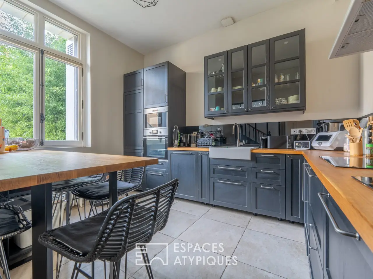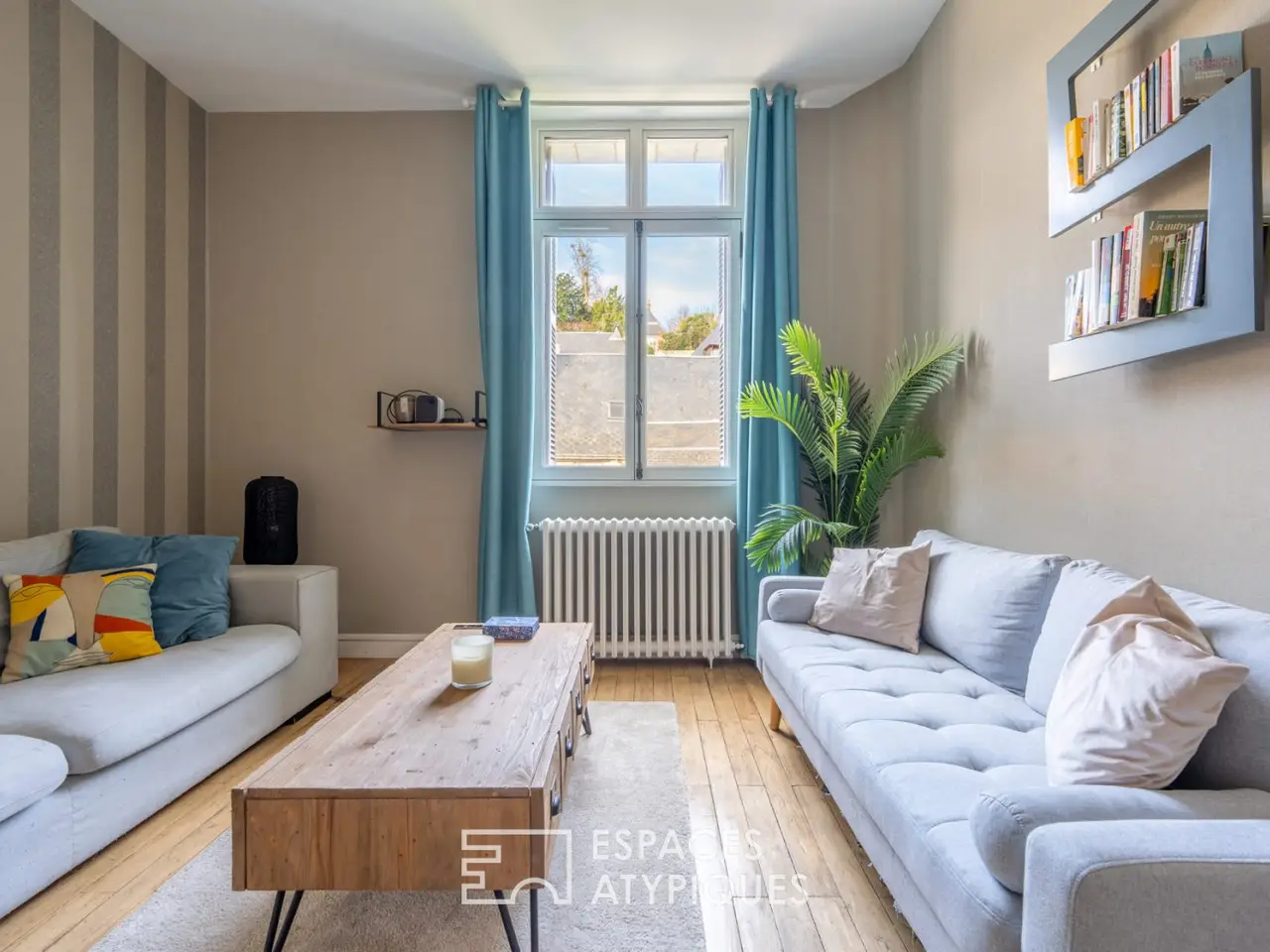 Located in Tours, this elegant townhouse, with a total surface area of 245 sqm on a plot of 425 sqm, seduces with its charm and its many assets. It includes a main building of 210 sqm, perfectly laid out, as well as a charming independent house of 35 sqm, currently rented furnished. A double garage completes this harmonious ensemble, accompanied by a garden adjoining the main house. The latter has a lean-to converted into three separate spaces: two dedicated to storage and another designed as a covered courtyard. The entrance to the main house, decorated with cement tiles, leads to a first warm living room, decorated with a fireplace and period parquet flooring. Nearby, a spacious living-dining room also has a fireplace, elegant parquet flooring, built-in cupboards and through windows that bathe the space in natural light. From this room, direct access to the garden at the back of the building invites you to enjoy the outdoors. Still on the ground floor, a separate, fitted and equipped kitchen, offering a view of the garden, completes this level. A magnificent staircase leads to the first floor, where the house reveals a bright bedroom with a view of the garden. This level also includes a room dedicated to television, equipped with a dressing room, which can be transformed into a second bedroom, also facing the garden. The master suite, with a fireplace and parquet flooring, like all the rooms on this floor, is connected to a bathroom accessible from the landing. A second dressing room and a shower room harmoniously complete this floor, combining comfort and functionality. Recently converted, the top floor, located under the eaves, offers a perfectly optimized family space. It consists of three beautiful bedrooms with carpeted floors, combining modern comfort and contemporary spirit, as well as an elegantly designed shower room. Ideally oriented north-south, this elegant bourgeois residence benefits from a full basement housing cellars and a laundry room. Perfectly renovated, it retains the authentic charm of the 19th century, with carefully preserved period features. Combining old character and modern comfort, this property is a real favorite for lovers of classic style. Secure, it has two gates, the main one of which is motorized, offering both practicality and serenity. It benefits from a privileged location close to amenities, schools, transport and major roads, offering a most pleasant living environment. DPE in progress REF. EAT4333 Additional information * 9 rooms * 7 bedrooms * 1 bathroom * 2 shower rooms * 2 floors in the building * Outdoor space : 425 SQM * Parking : 3 parking spaces * Property tax : 2 960 € Energy Performance Certificate Primary energy consumption c : 108 kWh/m2.an High performance housing