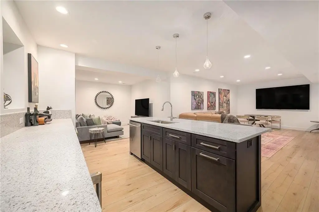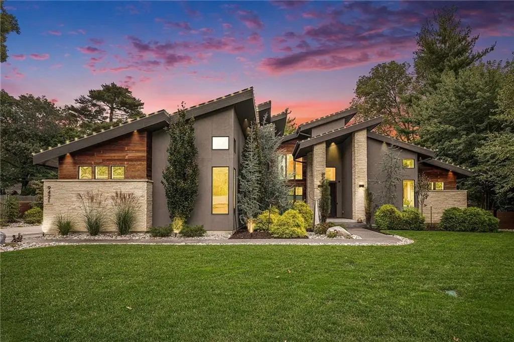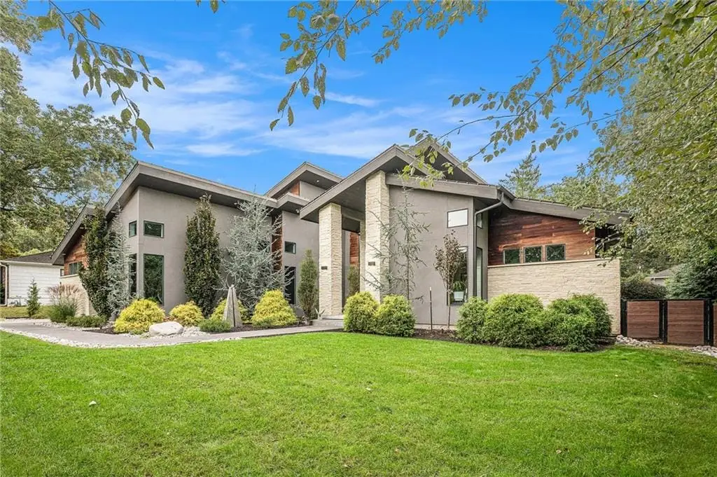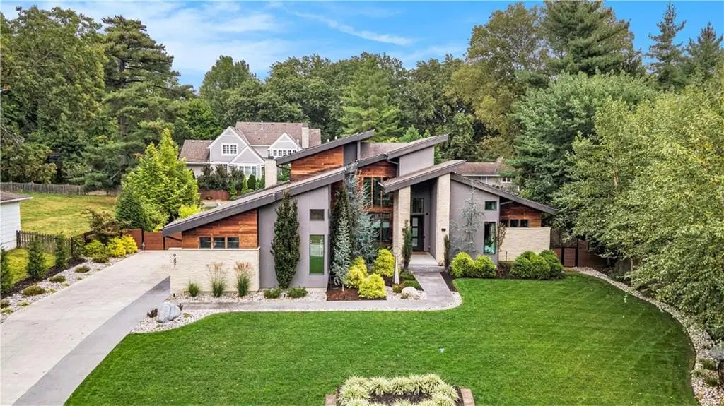 Experience the epitome of luxury living in this must-see, award-winning contemporary masterpiece meticulously crafted by Starr Builders. This extraordinary residence captivates with its striking architectural design, featuring rich IPE wood accents and elegant natural stacked stone that elevate its sophisticated curb appeal. Artfully landscaped front and back gardens create private, serene retreat environments, perfectly complementing the home's opulent exterior. Step into a breathtaking two-story entryway that welcomes you into an expansive great room flooded with natural light through soaring floor-to-ceiling windows, offering panoramic views of the meticulously designed surroundings. The great room is a true highlight, with a dramatic two-story modern gas fireplace adorned with exquisite white stacked stone, custom built-in shelving, and remote control shades. The gourmet kitchen is a culinary sanctuary, boasting top-of-the-line appliances, a state-of-the-art built-in refrigerator, and an expansive butler’s pantry complete with a wine chiller and ice machine. Double sliding doors lead to a screened porch, designed for seamless outdoor living, featuring a built-in gas grill, mini fridge, and a warming wood-burning fireplace. Primary suite is located on the main level featuring spa like bath and large custom closet. Step outside primary to a pergola that offers privacy for hot tub. Spacious dedicated office on main level, two ensuite bedrooms upstairs with generous walk-in closets, and a fully finished lower level with a media room, stylish bar with ice maker, mini fridge, dishwasher, and 4th bed and bath complete this masterpiece. Heated three-car garage with expansive windows. Located in the heart of Old Leawood, this residence is within walking distance of premier shops, grocery stores, upscale dining, and renowned schools - presenting an unrivaled opportunity to enjoy luxurious, effortless living in a highly coveted neighborhood. Endless upgrades!