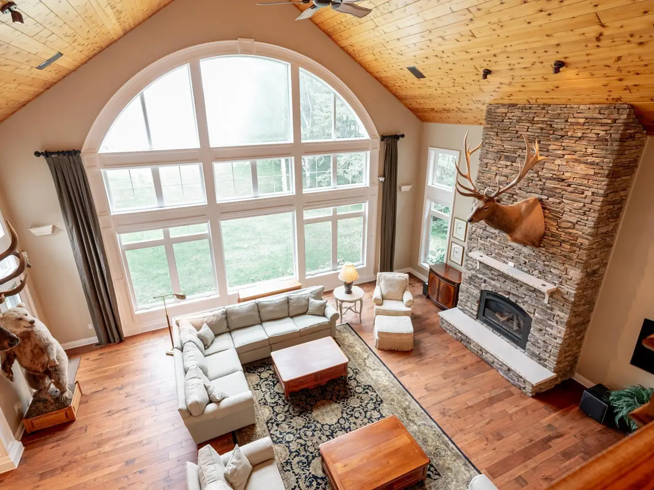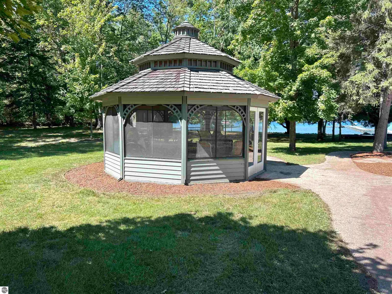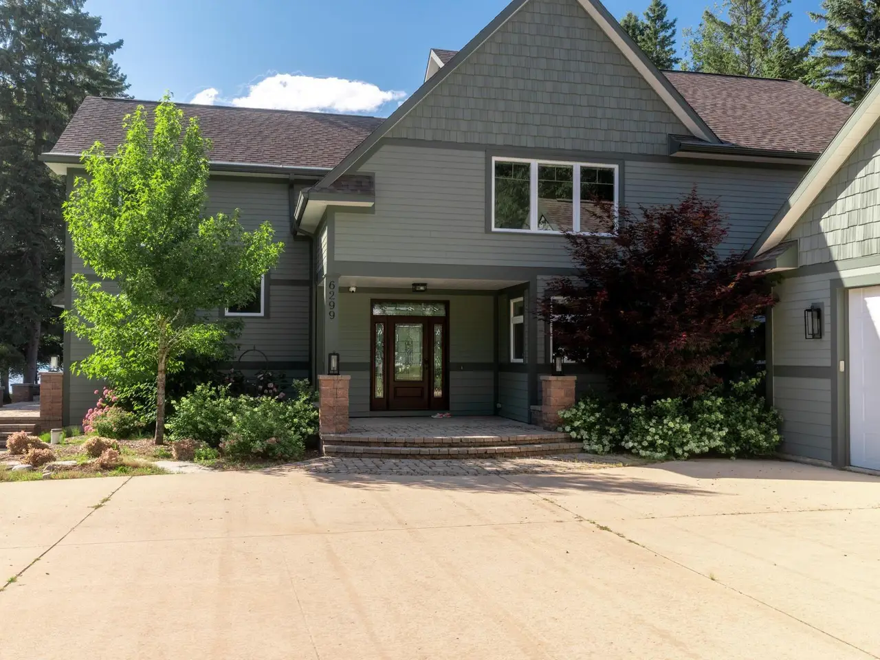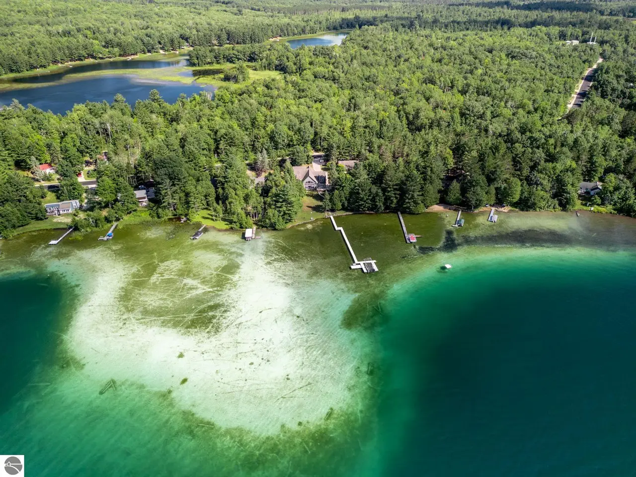 Wake up every morning in your dream vacation destination with this made-to-host, all sport, lakefront home with true luxury finishes and features. Brick wraparound patio and lawn seamlessly transition into direct access to 200 feet of private beach front, so no steps are needed to get to the beach and dock. Countless custom crafted details in the home echo the beauty of the famously "Caribbean blue" Big Blue lake, including floor-to-ceiling picture windows in the living room looking out over the water and stunning lake-blue granite countertops in the elegant kitchen. Every space is styled with timeless quality and design, from the beautiful hardwood floors and masterful tile work to gorgeous masonry on the indoor fireplace and stunning custom kitchen cabinetry. But this home isn't just beautiful; it was designed to be enjoyed. The main house is a 4 bedroom, 4 bath with an exquisite, large kitchen and beyond beautiful living room with an up North wood ceiling and natural gas fireplace. Just outside of the dining room, is the patio to entertain or relax outside. Rinse off the sand using the outdoor shower before coming inside to dry off in the sauna. Lounge in the air-conditioned and enclosed gazebo to have the best of both worlds. Everyone will want to visit, and there's room for them to stay since the detached 3-bed guest house is just a few steps away from the main house and has its own attached garage. The home also has a geothermal heating and cooling system, with in-floor heat on the main level and attached garage. Did I mention, you would own 200 private feet on an all sport gem of a lake with the dock included? Get ready to enjoy evenings by the fire at the water side and let your worries fade away. All information deemed accurate, but should be verified.