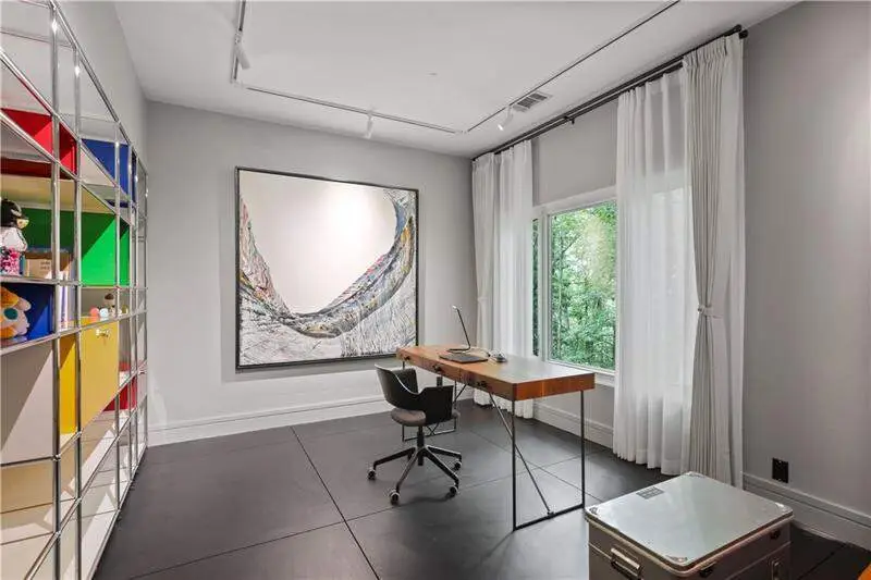 This spectacular contemporary estate on 2.5 private acres stands as a true landmark in Buckhead's prestigious Paces neighborhood. Sophisticated in design yet warm and livable, the property offers a rare balance of modern architecture and everyday comfort. A private drive leads to an expansive motor court, mature landscaping, and a turfed front lawn, setting the stage for the home's striking entrance. Inside, a dramatic foyer with 12-foot ceilings introduces sun-drenched interiors framed by walls of windows, soaring ceilings, and sleek contemporary details. The main-level primary suite boasts a newly renovated bath and an oversized custom closet. Designed for both everyday living and grand entertaining, the main level showcases a vast living room that also functions as a formal dining space for 12+, anchored by a large wet bar ideal for gatherings. Additional highlights include a private office, stylish powder room, and a comfortable family room. The chef's kitchen features stone counters, SieMatic cabinetry, Gaggenau ovens, an 8-burner Russell gas range, and a wine refrigerator, and flows seamlessly into a fireside breakfast room overlooking the lush, private backyard-complete with ample space for a future pool. Upstairs, two bedrooms and two bathrooms are complemented by a spacious bonus room that opens to a covered deck, perfect for year-round outdoor enjoyment. A possible fourth bedroom, currently serving as an office, enhances the home's flexibility. New windows throughout fill the interiors with natural light and frame views of the surrounding greenery. Outdoor living is equally impressive, with porches on both levels, expansive lawns, and multiple areas designed for recreation, relaxation, and entertaining. Located in the sought-after Jackson Elementary district and close to Buckhead's premier dining, shopping, and schools, this remarkable estate offers an unparalleled lifestyle in one of Atlanta's most coveted neighborhoods.