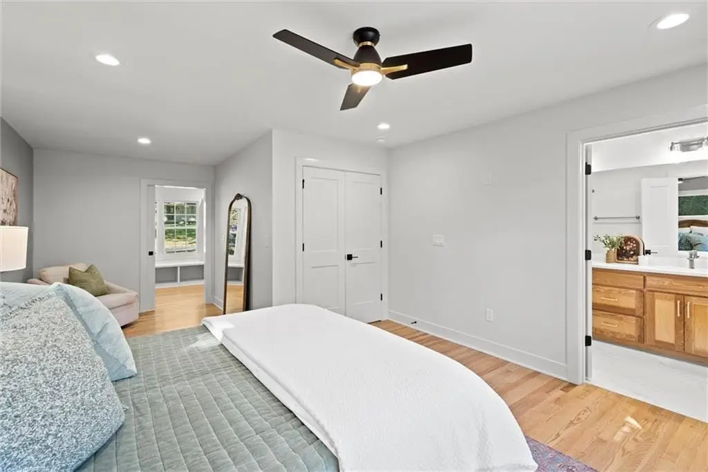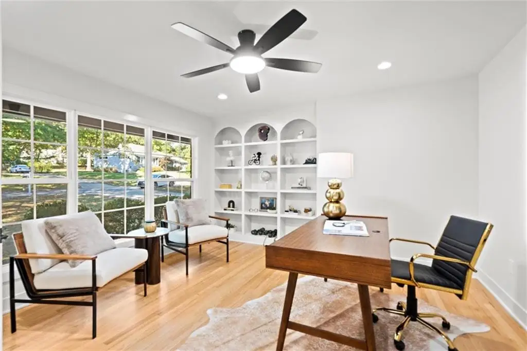 Villa-style living could be yours at this fully remodeled home in an unbeatable location. Boasting a ranch/reverse 1.5 story floor plan, every inch has been thoughtfully renovated with modern touches yet timeless style. This home offers 4 spacious bedrooms and 3.5 pretty as a picture bathrooms. You will fall in love with the built-ins, custom crafted cabinetry, vaulted ceilings, flexible floor plan, designer touches and everything is NEW! Stunning double front doors and bright foyer showcase French doors leading into a stately office or den. Enter the gorgeous vaulted living room and hearth flanked by windows overlooking the half acre yard complete with a freshly stained deck, pergola and firepit too. The custom kitchen has a grand quartz island, gas stove with hood, floating shelves and walk-in pantry. It leads into everyone's favorite breakfast/dining room. Holiday dinners will be perfect in here when everyone gathers around the table and grabs a drink and an appetizer from the built-in buffet with arch and floating shelves. The primary en suite also has a sitting area and walk-in custom closet with stackable hook-ups. The shower is the star in the primary bath. There is one additional large bedroom on the main level with a full hall bath showcasing a soaking tub, a separate shower and double vanities. The expansive walkout/walkup lower level has room for everyone, including the two remaining bedrooms, a well appointed full bathroom, large laundry room, and a lovely kitchenette. Do not miss out on the opportunity to own a rare gem in one of Leawood's most desirable locations and neighborhoods.
