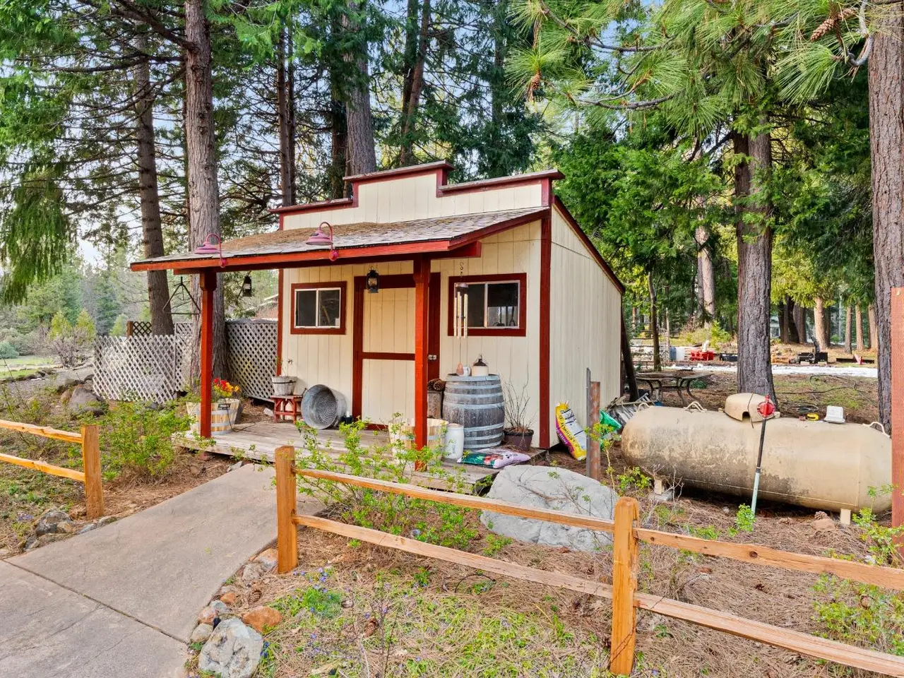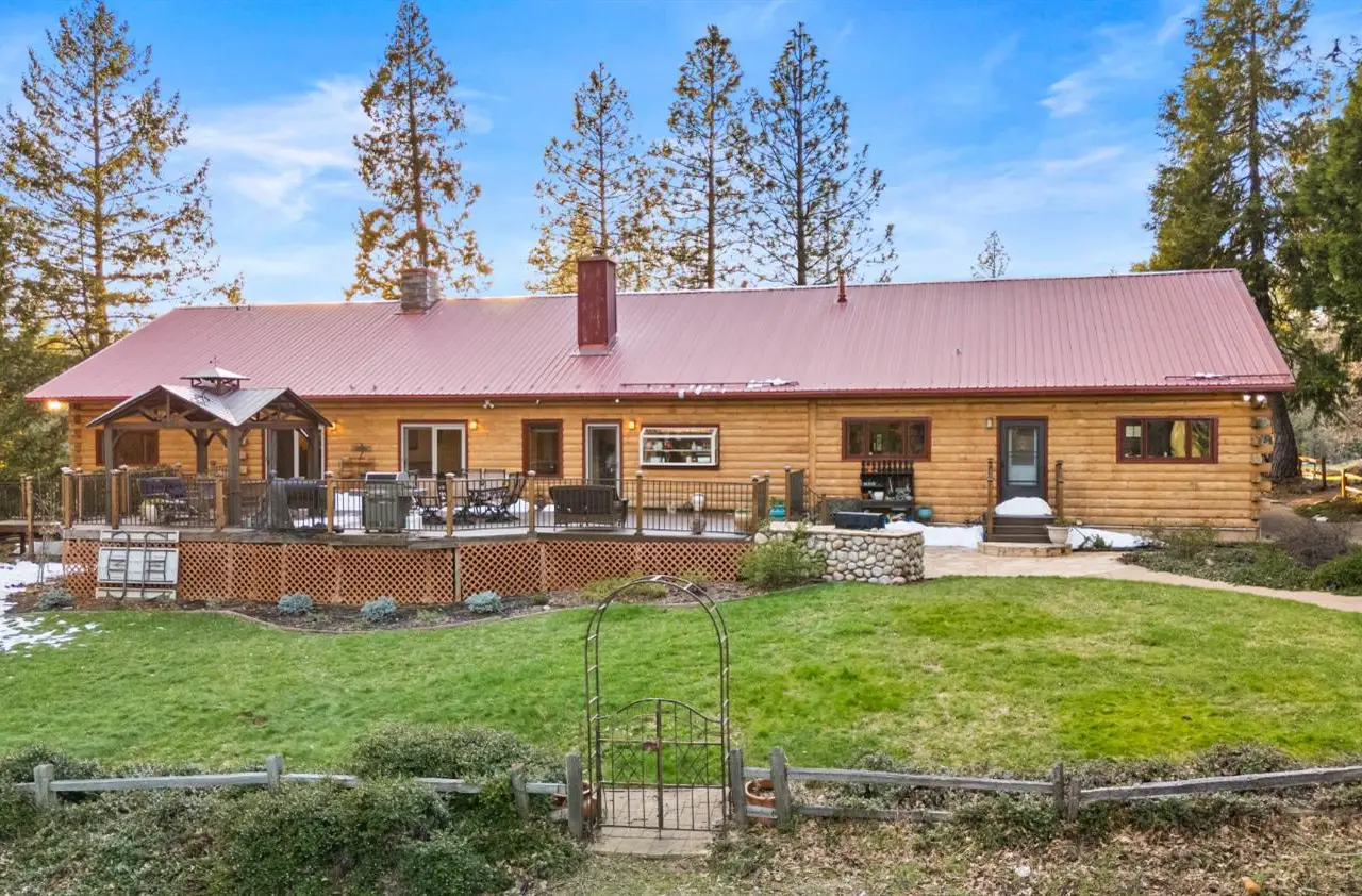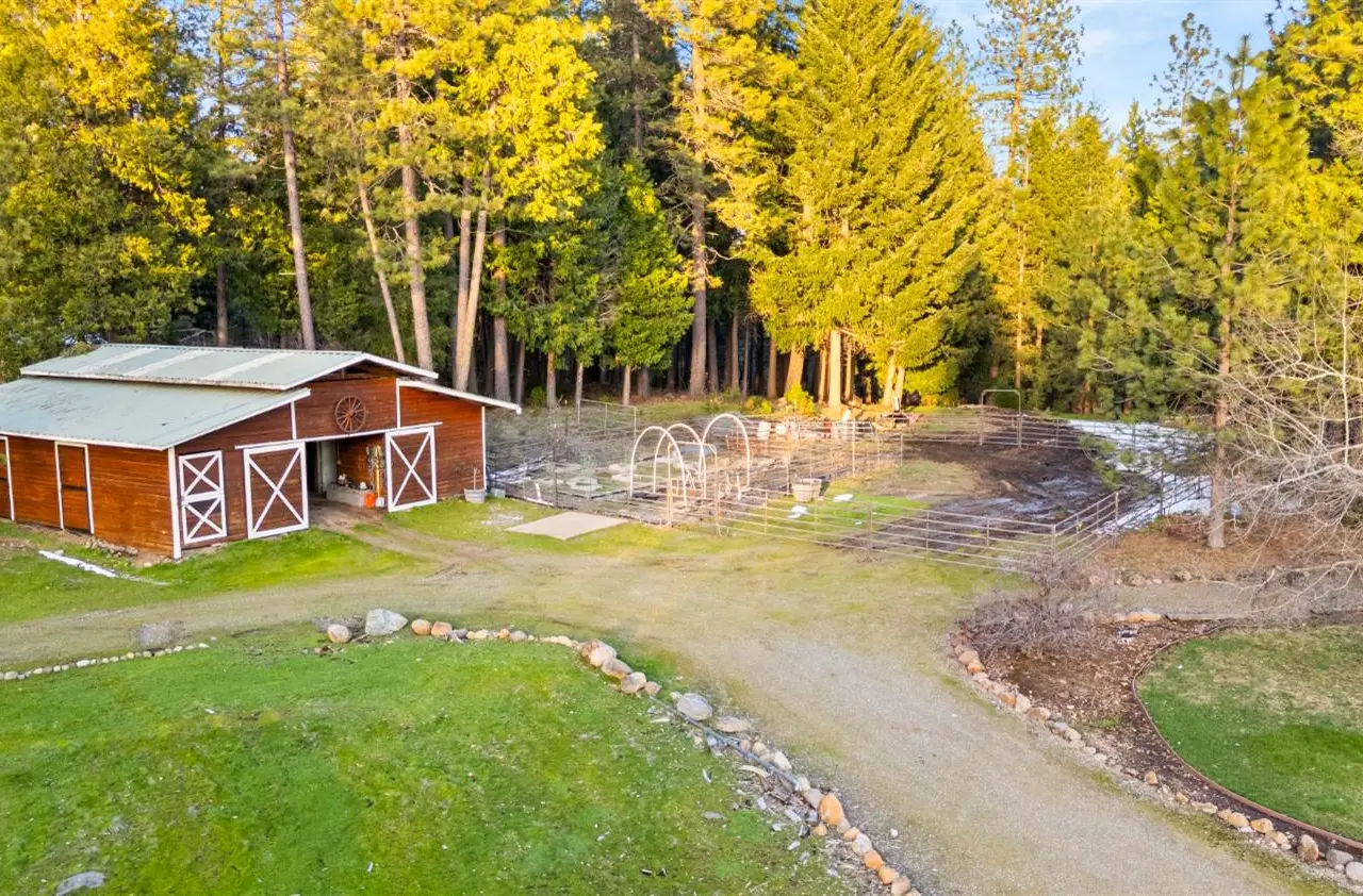 Escape to the peace and beauty of the Sierra Mountains with this stunning 10-acre log cabin retreat, perfectly designed for both comfort and country living. This 3-bedroom, 3-bathroom home showcases wood floors, custom brick tile work, granite countertops, and a cozy wood stove that sets the tone for mountain living. Large windows and expansive decks invite you to take in the breathtaking views and soak up the serenity of your private haven. Ideal for horse lovers, the property features a 3-5 stall barn, a tack room, a fenced horse area, and plenty of space for riding and roaming. Whether you're tending to the garden, sipping coffee on the deck, or enjoying the golden hour with your horses nearby, this home is your own slice of rustic paradise. Located just minutes from scenic Jenkinson Lake, you'll have easy access to kayaking, paddle boarding, fishing, and hiking. Enjoy the charm of nearby Apple Hill with its orchards, seasonal festivals, and family-run farms, or spend the day exploring local award-winning wineries just a short drive away. For a full mountain escape, South Lake Tahoe is just an hour away. Ideal for skiing, boating, dining, and entertainment year-round.
