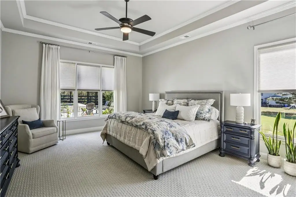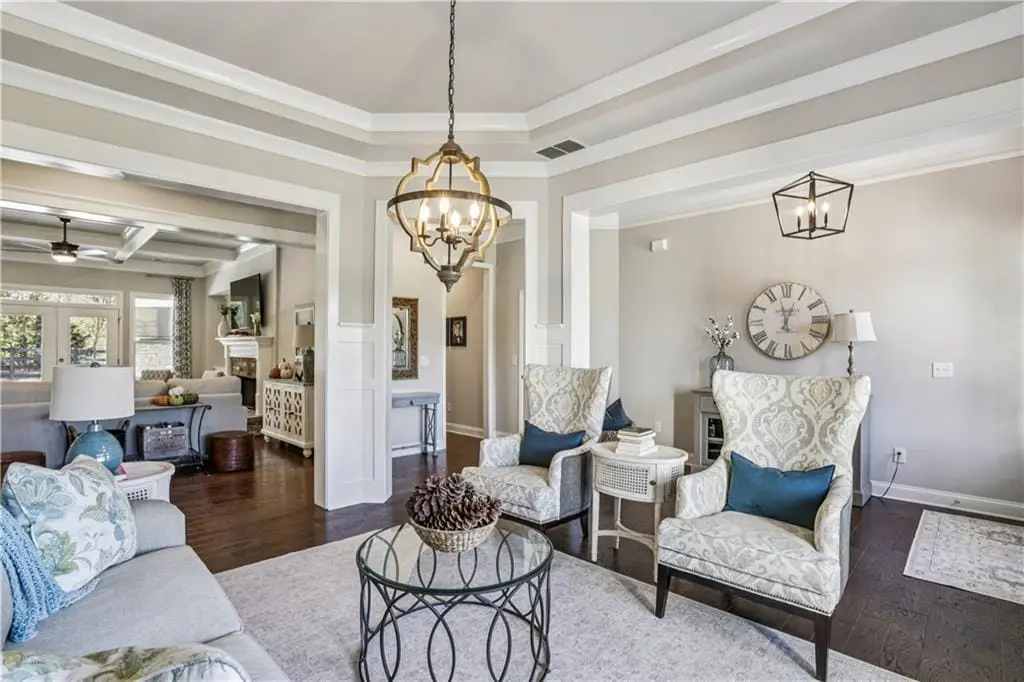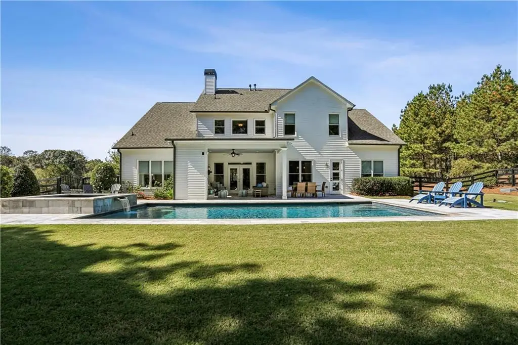 Set on two manicured acres in the prestigious Birmingham Estates community, this striking residence captures refined Southern living with modern flair. Featuring four bedrooms and three-and-a-half baths, the home blends effortless everyday comfort with luxurious outdoor living. From the welcoming front porch to the sparkling sport pool and hot tub surrounded by marble decking, every space is designed for connection, relaxation, and entertaining in style. The open-concept floor plan showcases gleaming hardwood floors, abundant natural light, and thoughtful architectural details throughout. The primary suite on the main level provides a peaceful retreat with a spa-inspired bath and generous walk-in closet. The heart of the home centers around a warm fireside great room and gourmet kitchen - ideal for entertaining or everyday living with an oversized island, custom cabinetry, and a casual dining area overlooking the backyard oasis. Upstairs, you'll find spacious secondary bedrooms and an expansive recreation room, ideal for movie nights, gaming, or guest accommodations. STORAGE IS ABUNDANT throughout, including a three-car garage, an accessible 12' x 14' temperature-controlled storage room above the garage, and well-organized closets. The covered patio with fireplace and TV makes entertaining effortless year-round, while the manicured lawn offers plenty of space for play and outdoor gatherings. Situated in one of Cherokee County’s most desirable neighborhoods known for its large estate lots, scenic setting, and charming mail pavilion, this home combines privacy, style, and convenience, just minutes from Milton, Alpharetta, and Crabapple.