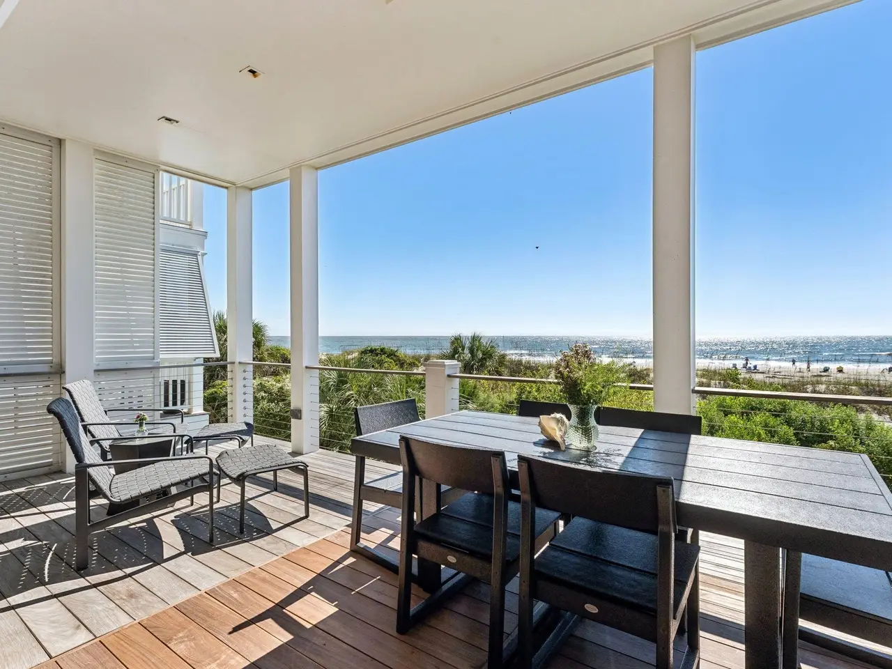 Perfectly positioned oceanfront within the exclusive Grand Pavilion of Wild Dunes Resort, this fully furnished, 6-bedroom, 6.5-bath coastal retreat has been completely reimagined and renovated in 2023. Designed across three levels and nearly 3,900 sq. ft., the home combines modern sophistication with relaxed Low country charm -- offering turn-key, resort-style living at its finest in one of Charleston's most coveted beachfront communities. Step inside to discover a bright, open-concept main level anchored by a chef's kitchen featuring custom walnut cabinetry, a statement marble island with bar seating, and professional-grade appliances.The adjoining living and dining areas open seamlessly to the oceanfront balcony through accordion-style glass doors, creating a true indoor-outdoor flow ideal for entertaining. A fully integrated wet bar and gas fireplace complete the space. A floating glass staircase and private elevator connect all three floors. Upstairs, the oceanfront primary suite offers a private balcony, spa-inspired bath with dual vanities and a freestanding soaking tub, and a custom walk-in closet. Two additional ensuite bedrooms provide privacy and comfort on this level. The third floor hosts an additional guest suite, laundry room, and a spacious lounge with a wet bar, sliding glass doors, and access to an expansive sun deckperfect for sunrise coffee or sunset cocktails. Outside, enjoy a private pool, IPE decking with stainless steel railings, electric hurricane shutters, and direct beach access just steps from your door. The home also includes a two-car garage with ample storage for golf carts and beach gear. Every inch of the home reflects the highest attention to detail, from 8' solid-core doors and rich white oak flooring to custom lighting and cabinetry. Additional conveniences include laundry on both the second and third floors and durable, low-maintenance construction with excellent insurability. Highlights Fully furnished Oceanfront setting with private beach access Pool and multiple outdoor living spaces Elevator to all three levels from garage Gas fireplace Electric hurricane shutters Two-car garage with storage Durable, low-maintenance construction with excellent insurability Resort Lifestyle: Homeowners enjoy access to all the premier amenities of Wild Dunes Resort, including: Two Tom Fazio-designed golf courses Award-winning Spa at Sweetgrass World-ranked tennis & pickleball facilities Multiple resort pools and 2.5 miles of pristine coastline 24/7 gated security and year-round community events Dining options within the resort include Coastal Provisions, Oystercatcher, Hudson's Market & Café, Coastal Crust, Laughing Gull, Beachside Burgers & Bar, The Nest Rooftop Bar, Huey's, and moreoffering everything from casual coastal fare to refined dining steps from your door.