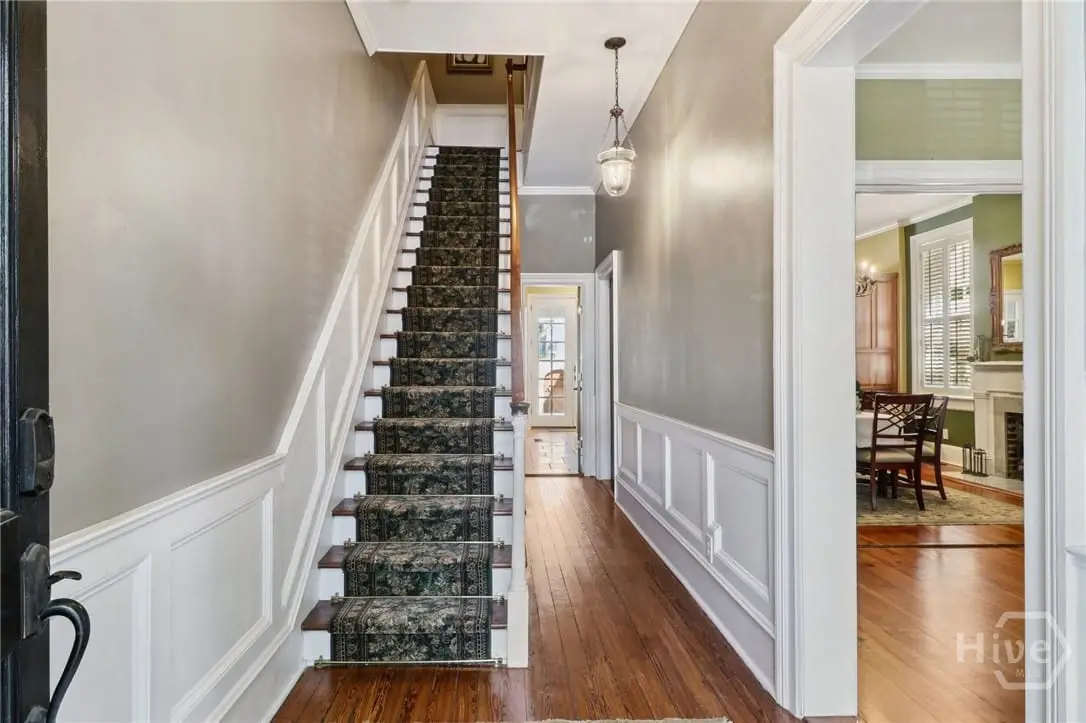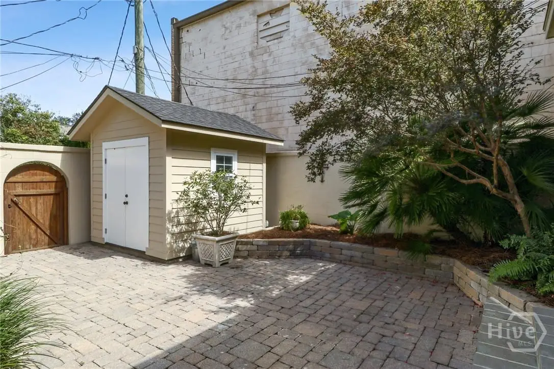 Escape to this stunning, pristine Savannah home, where historic charm meets modern luxury. The beautiful stucco exterior and inviting entryway set the stage for a truly elegant experience. Inside, you'll find an open kitchen and dining area perfect for entertaining. The gourmet kitchen, with its large island and stainless steel appliances, flows seamlessly into the inviting dining space. After dinner, retreat to the spacious living room, featuring a beautiful fireplace and large windows that fill the space with natural light. The serene primary suite offers a cozy fireplace and a luxurious ensuite bathroom, ensuring a private and peaceful sanctuary.Enjoy the convenience of an in-home elevator and the tranquility of a private, two-tiered rear courtyard, an ideal oasis for morning coffee or evening cocktails. A charming storage structure at the back of the property offers additional storage or potential for a studio. This home isn't just a place to live; it's a lifestyle. Imagine yourself savoring the best of Savannah living in a home that caters to your every need. This is more than a listingit's your next chapter. Don't miss the opportunity to see it for yourself.