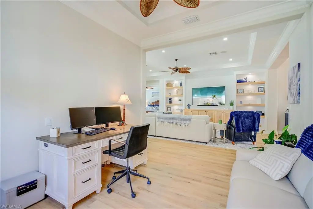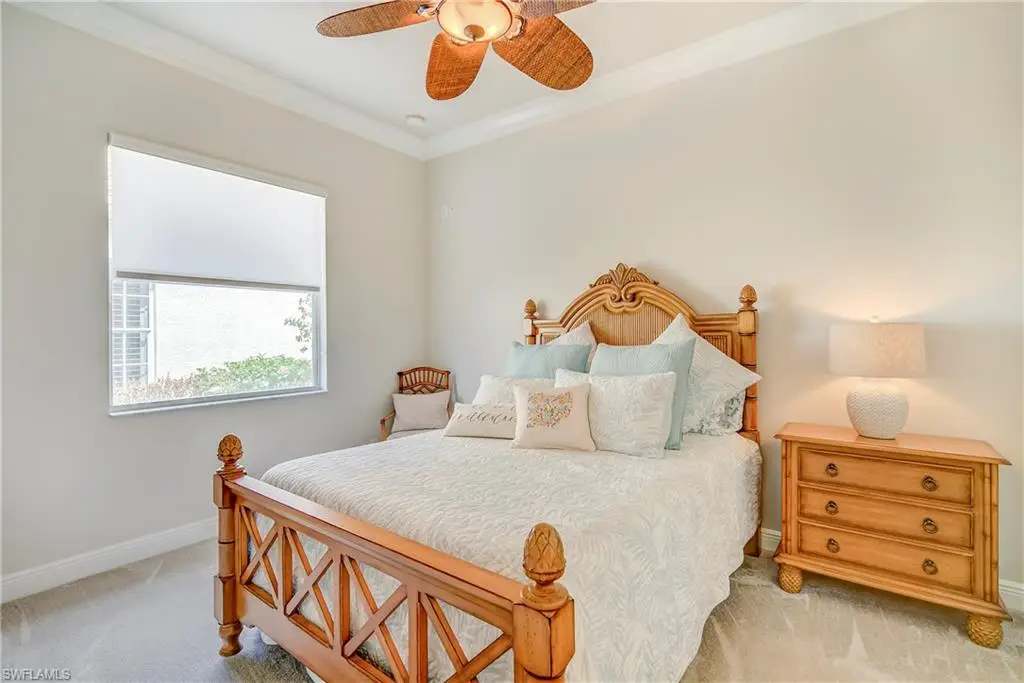 Beautifully renovated and ideally located just steps from the clubhouse and resort amenities, this 3-bedroom, 3-bath pool home in Vasari Country Club offers luxury living with quality craftsmanship, stylish finishes, and a new roof among its many thoughtful updates. The dream kitchen is designed for both beauty and functionality, featuring custom cabinetry, elegant hardware and faucet, and a full suite of 2022 KitchenAid appliancesùincluding a refrigerator, dishwasher, convection wall oven/microwave, and cooktopùalong with a Whirlpool beverage fridge. Wide-plank luxury vinyl flooring flows throughout the main living areas, creating a modern and cohesive space. The open great room is an entertainerÆs dream, with a custom shiplap-paneled entertainment wall, built-in shelving, and a mounted television. A wall of three-panel glass sliders opens to your private lanai, where you'll enjoy beautiful views of the pool, tranquil lake, and VasariÆs 18th hole. The spacious ownerÆs suite has direct access to the lanai and features a spa-like bath with dual vanities and a separate water closet. The split-bedroom layout includes two generous guest bedrooms, offering privacy and comfort for family and friends. Extensive improvements include: a brand-new roof and gutters (2025), full exterior paint (2025), remodeled kitchen (2022), new luxury vinyl flooring (2022), new Built Right pool heater and pump (2023), remodeled living room with complete interior paint including doors, trim, ceilings, and closets (2023), new carpet in guest bedrooms (2023), new hot water heater and overhead garage storage (2021), and refreshed landscaping (2022). This home includes immediate golf membership with full access to VasariÆs extensive amenities. Enjoy 18 holes of championship golf, tennis on lighted Har-Tru courts, bocce, a resort-style pool and spa, a vibrant social calendar, and coming soonùpickleball. The elegant clubhouse features both formal and casual dining, locker rooms, and game and meeting spaces. Ideally located near Gulf beaches, I-75, and US-41, with convenient access to Naples and Fort Myers, top dining spots, shopping destinations, cultural venues, and scenic biking trails. This home is truly move-in readyùoffering modern elegance, ideal indoor-outdoor living, and a vibrant resort lifestyle in one of Bonita SpringsÆ most sought-after communities.