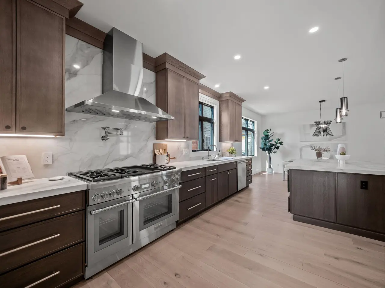 This stunning new construction home is located just steps from downtown Birmingham, a vibrant city filled with entertainment, shopping and fine dining. With 4500 square feet of living space the open floor plan is perfect for families and entertaining. There are 4 levels of finished living space including 5 bedrooms, 5 bathrooms, 2 powder rooms with a 2 car attached garage. The gourmet kitchen is a chef’s delight with premium appliances, quartz counters and a full back splash is open to the dining room and great room including one of 2 custom limestone fireplace surrounds. The den includes a second fireplace with custom glass doors & steel doors for privacy. There is a full walk-in pantry plus custom built in lockers with a bench and storage. Up one level the primary suite is magnificent with a large custom closet, luxurious private bath with a soaking tub, large shower, dual vanities with illuminated mirrors and natural light. The second floor office is spacious and perfect for working from home. There are 2 bedrooms with a jack and jill bath and another full ensuite and laundry room. The 3rd level includes an additional spacious ensuite with plenty of storage. The fully finished lower level offers and additional bedroom, full bath and second full kitchen opens to an entertainment area with a cozy fireplace. This custom built home is the perfect place to call home offering a combination of style, luxury and comfort. No detail has been spared.