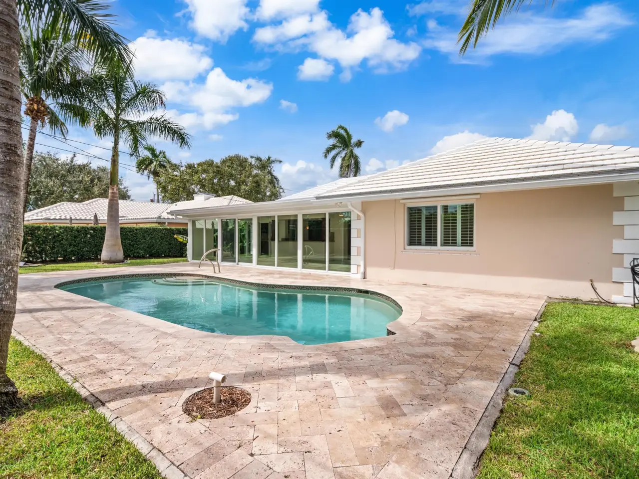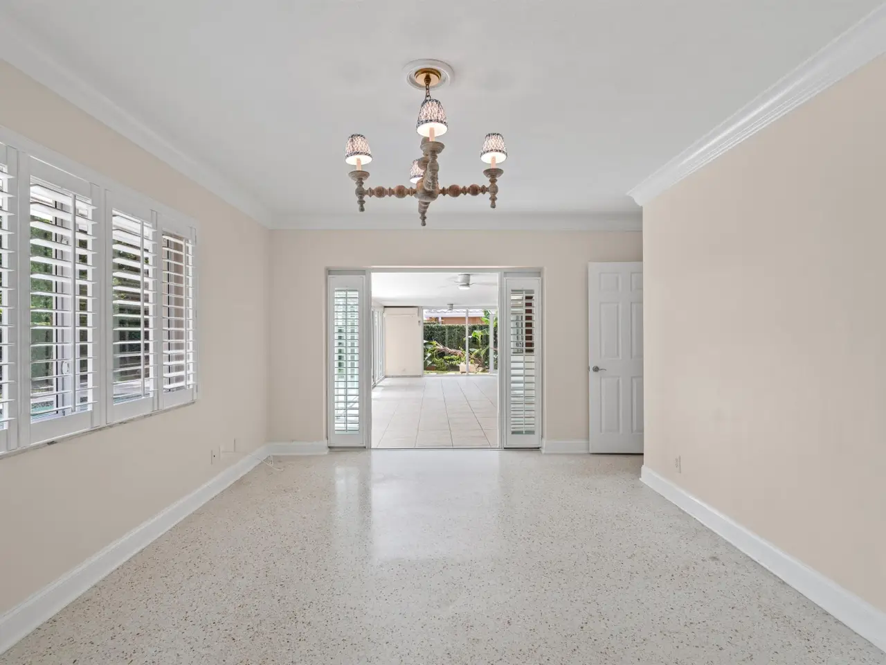 Located in desirable Camino Gardens, this classic Bermuda-style residence presents a harmonious blend of tropical character and modern sophistication, featuring an updated gourmet kitchen and designer bathrooms. The light-filled interiors span 2,539 +/- total square feet in a free-flowing, open floor plan. Architectural details include crown moldings and elegant plantation shutters. The central great room is perfectly situated for entertaining, serviced by a spacious bar connecting it to the kitchen. The kitchen is equipped with Mahogany Shaker cabinetry, granite countertops, and stainless-steel appliances. The adjoining breakfast nook offers a built-in buffet with glass showcase cabinetry.