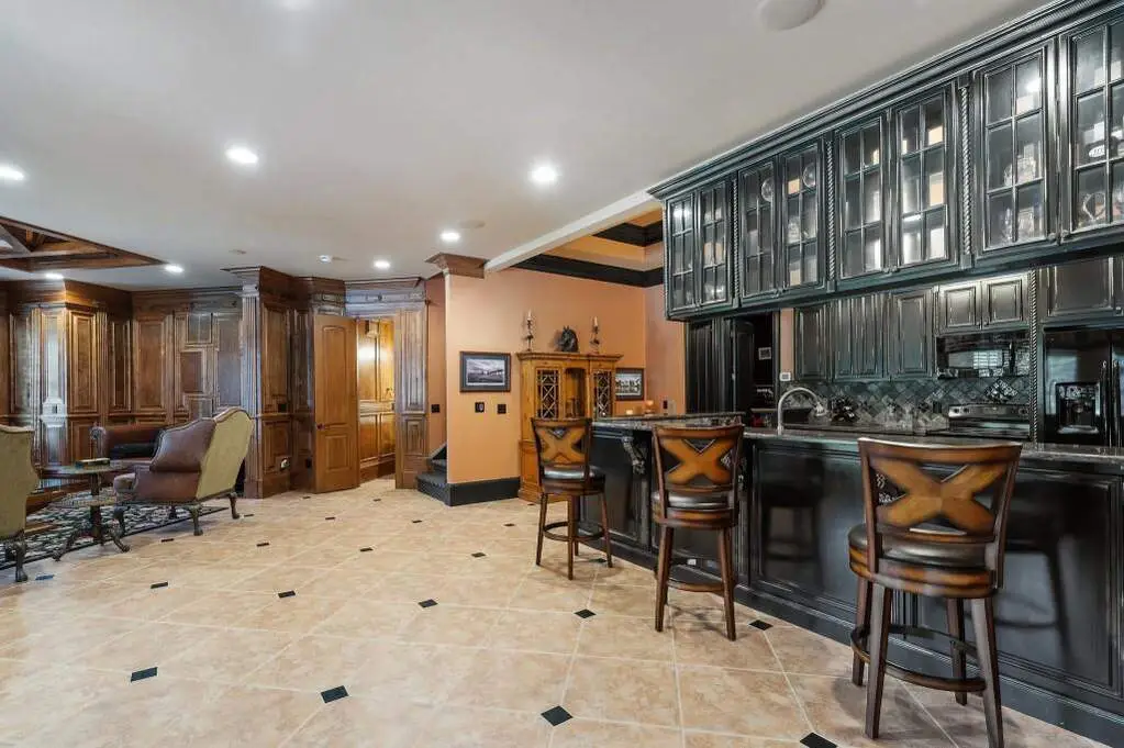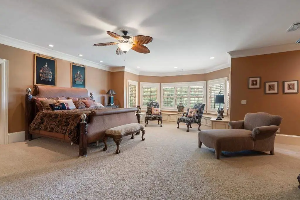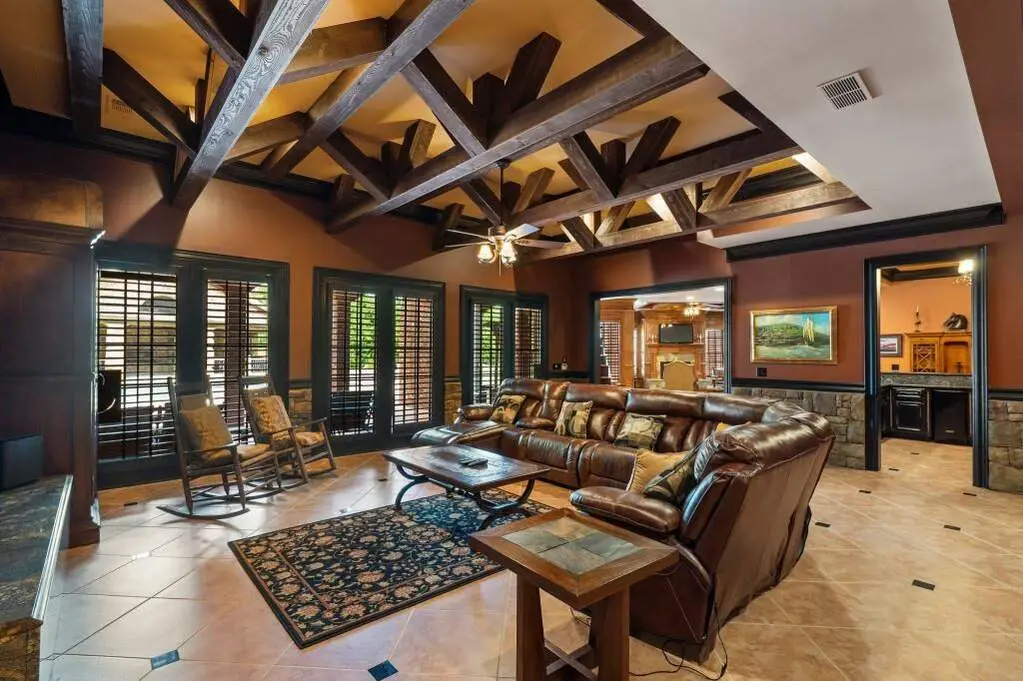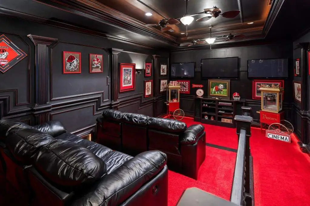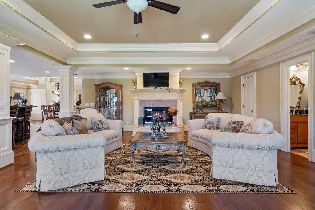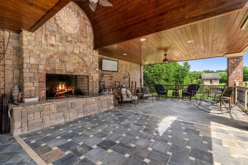 A magnificent estate where timeless architecture meets exceptional craftsmanship. Set on lush, rolling acres, this brick and stone masterpiece offers both grand entertaining spaces and serene outdoor retreats. A courtyard-style entry with a central fountain and dual staircases sets a dramatic tone. Inside, a soaring foyer with mirrored staircases leads to a formal living room featuring a stone fireplace and built-in bookcases, with direct access to a tranquil screened-in porch. The formal dining room impresses with coffered ceilings and intricate molding, ideal for elegant dinners. A hidden prep kitchen with double ovens, ice maker, and fridge adds convenience. The chef's kitchen boasts an oversized stone island with prep sink, 8-burner cooktop, double ovens, and wine storage, flowing into a sunny breakfast room and informal living area with a cozy fireplace.The main-level primary suite is a spacious, private retreat with a fireplace, morning bar, sitting area, and oversized windows. The spa-like bath features double vanities, a soaking tub, and a luxurious wraparound shower. Upstairs are four guest bedrooms with en-suite baths, connected by a dramatic open bridge hallway. A large storage closet and half bath add function. A stunning library-style study, adorned with rich wood paneling and custom murals, offers a refined escape. The terrace level is perfect for entertaining, with exposed beams, a cozy living room with fireplace, full bar and kitchenette, and lounge area with outdoor access. A half bath with mahogany paneling, large game room, and custom Georgia Bulldogs-themed home theater enhance the experience. A spacious gym and second half bath complete the level. Outside, a resort-style pool and hot tub create the ultimate retreat. The cabana features two grills, a microwave, counter space, and a fireplace. A koi pond adds tranquility. The carriage house sits above an oversized garage with space for large vehicles or a car collection. It offers a full kitchen, living and dining areas, and two private bedrooms with full baths-ideal for guests. Surrounding the home, manicured gardens and mature trees enhance the setting. A charming barn adds versatility, perfect for storage or a workshop, blending seamlessly into the estate's classic aesthetic.