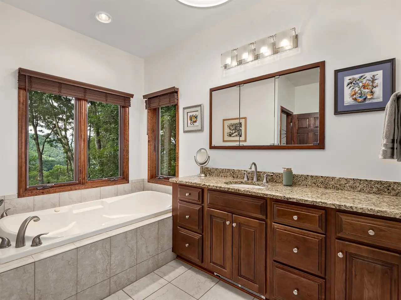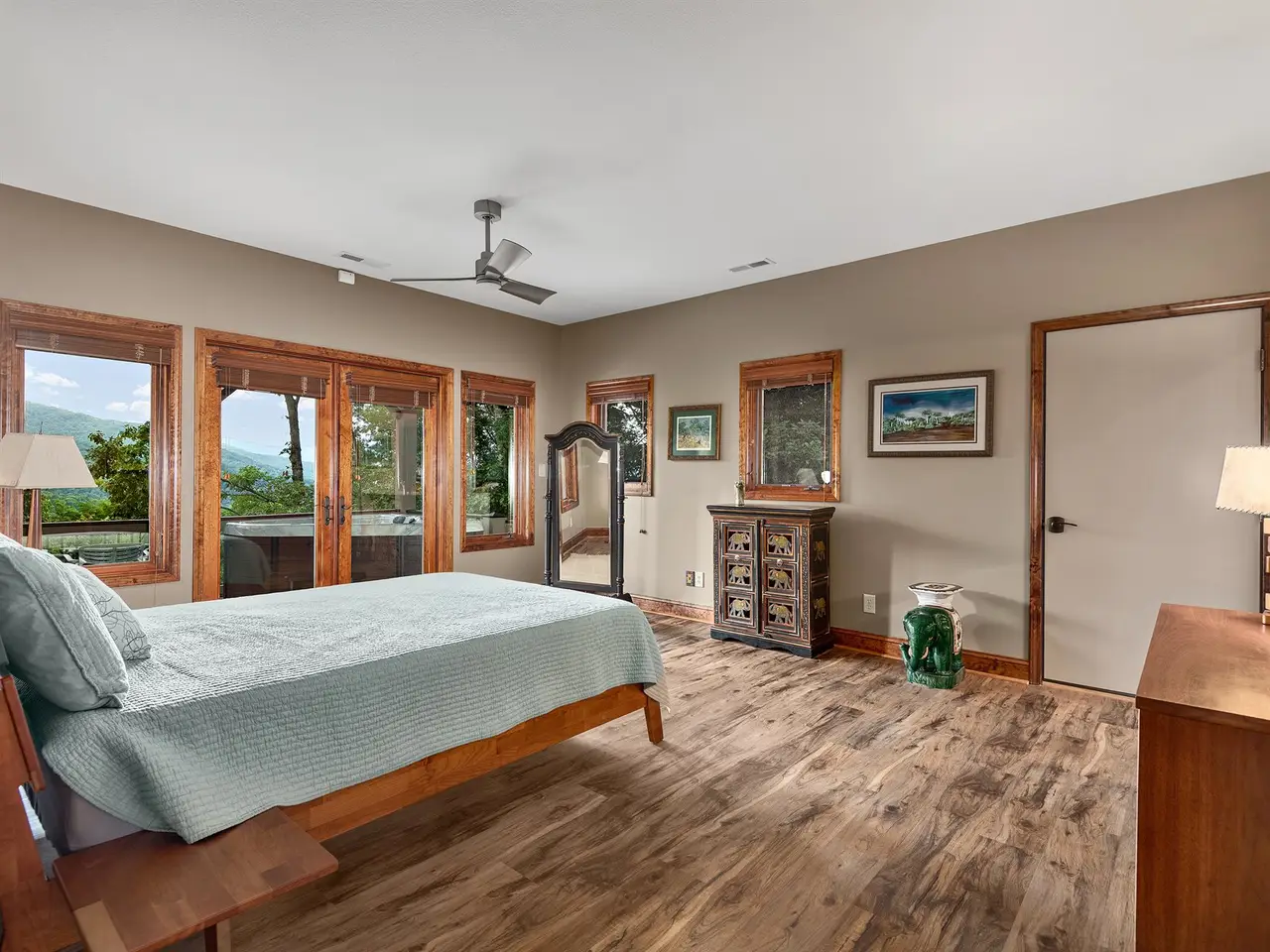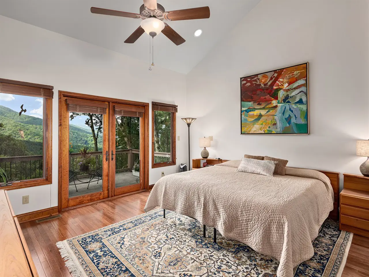 Perched at nearly 4,000 ft, this custom-built masterpiece offers a private sanctuary where sophistication meets Smoky Mountain serenity. Every inch of this 4,127 sq ft residence was designed with intention?from the soaring ceilings and walls of glass that frame sweeping vistas, to the chef's kitchen appointed with granite countertops, custom cabinetry, and a professional-grade appliance suite. The main-level primary suite is a retreat of its own, featuring direct deck access and a spa-inspired bath with dual vanities, walk-in shower, and indulgent details throughout. Upstairs, a finished half-story offers flexible living for guests, work, or art. The lower level provides entertainment space with a full wet bar, ensuite bedroom, and access to a covered patio overlooking rolling mountain ridges. Outdoors, layered decks and patios blur the line between home and horizon, while a low-maintenance turf area offers comfort for pets and gatherings. Recent upgrades?including a new roof, concrete driveway, and sidewalks?reflect the quality and care invested in this home. Nestled on 2.46 acres within minutes of downtown Waynesville, this property defines mountain luxury. An adjoining 1.01-acre parcel is also available for those who value space, privacy, and possibility. Experience the pinnacle of mountain living?schedule your private showing today.