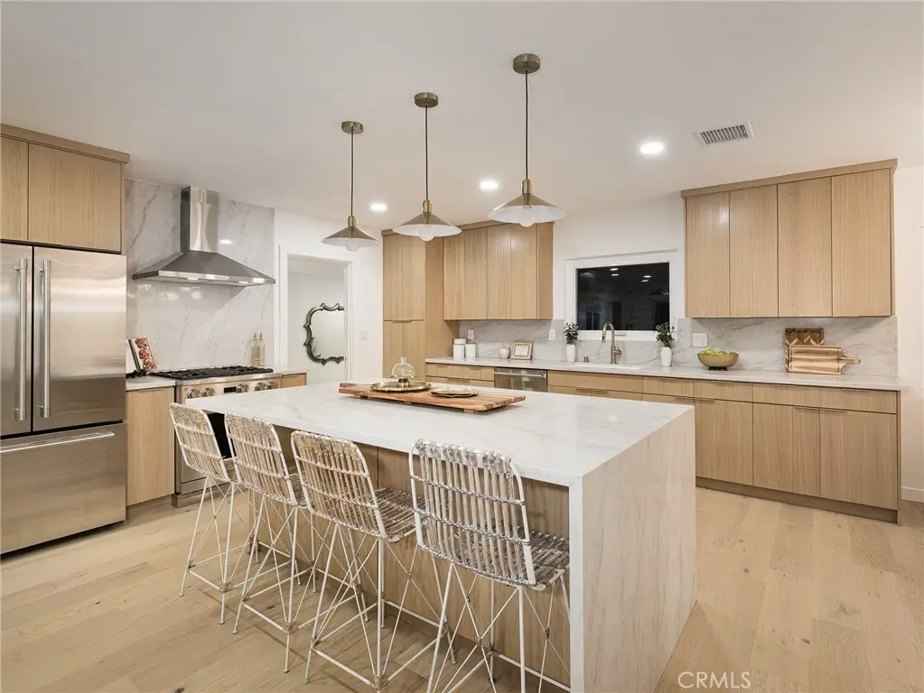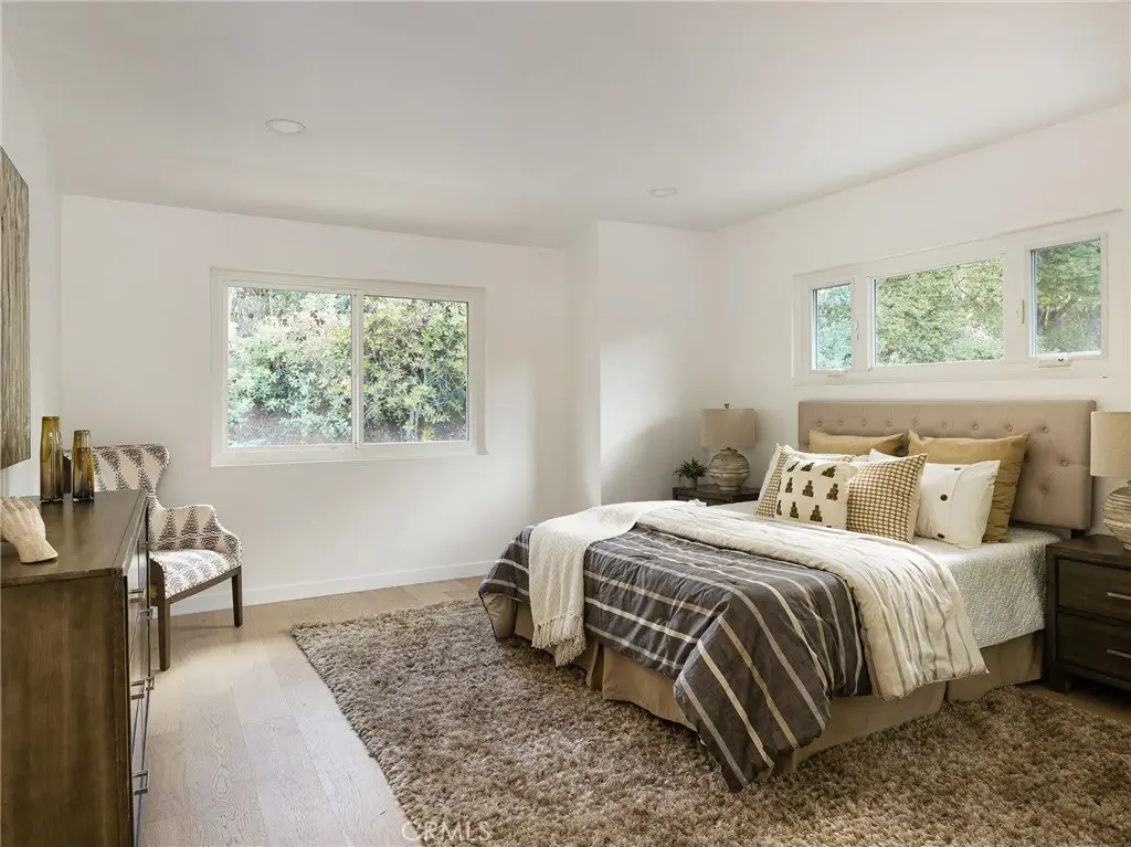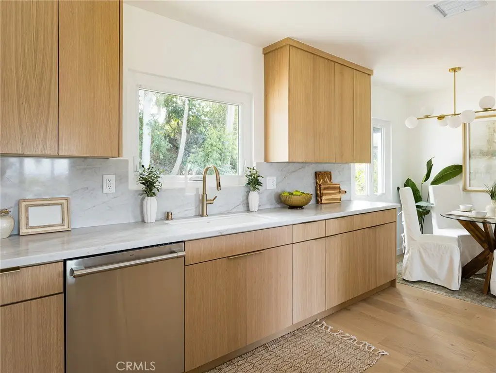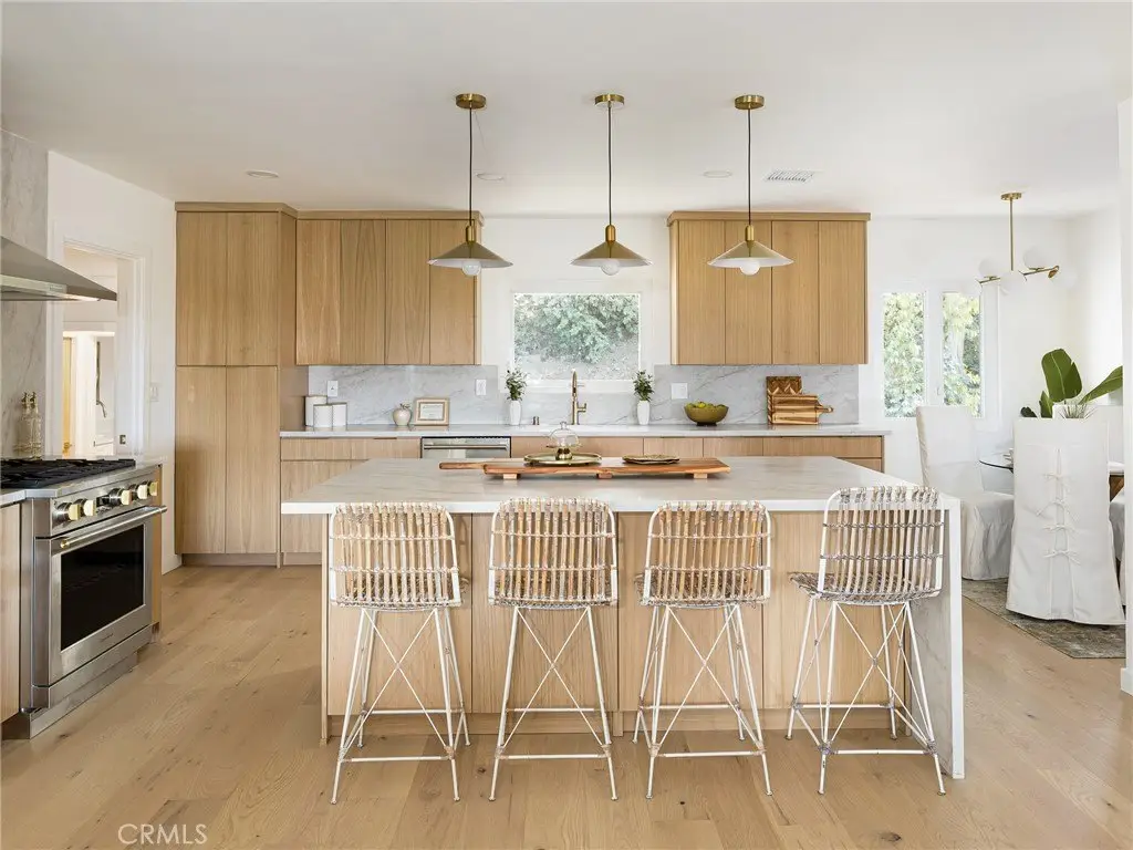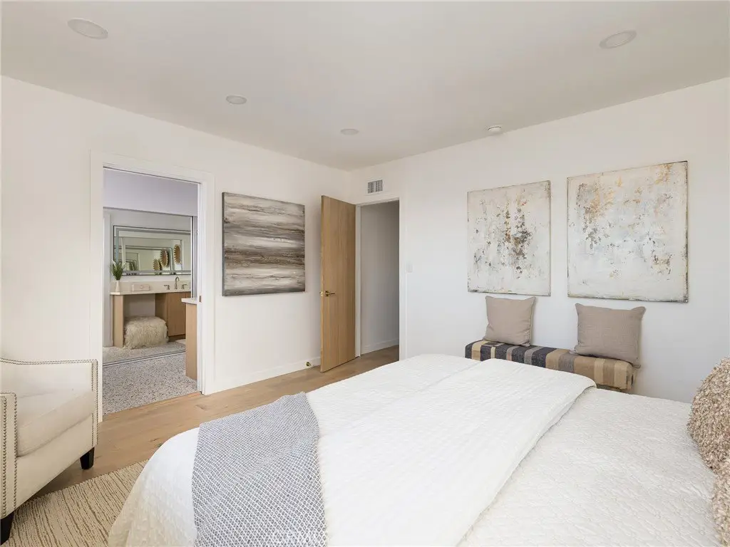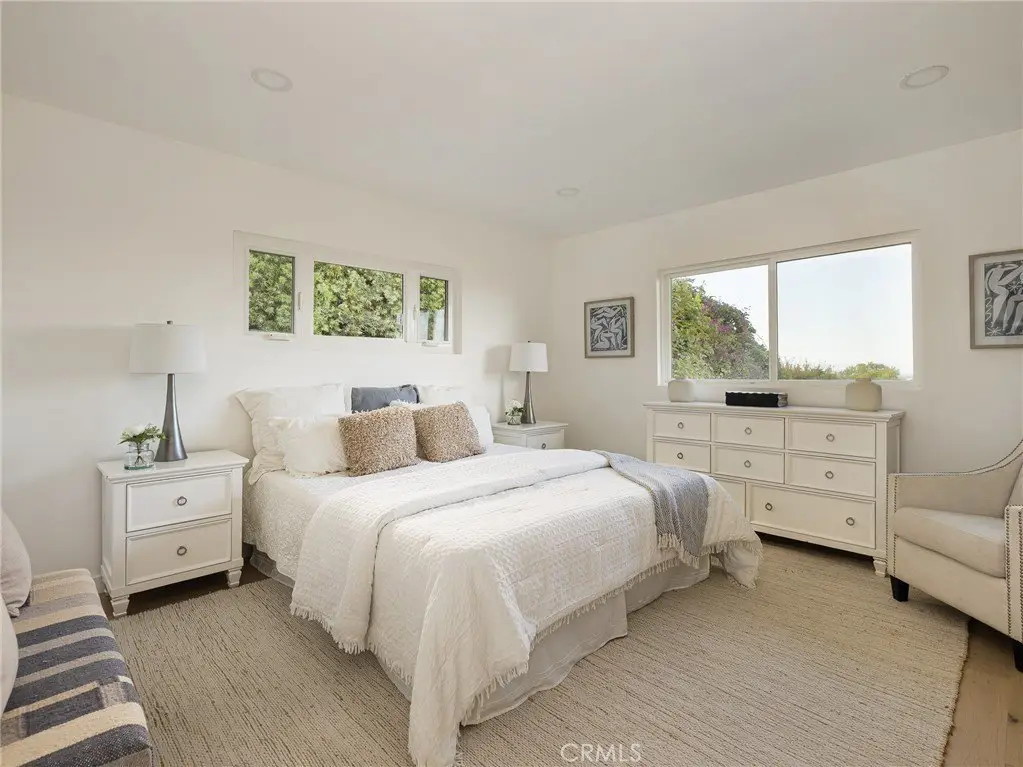 Perched above the street on a sprawling 21,500 sq. ft. lot, this fully remodeled single-level Hollywood Riviera home offers privacy, tranquility, and beautiful city lights & ocean views. A long private driveway leads to the residence, where you’ll enjoy peace of mind with no through traffic and exclusive access to the eucalyptus-lined Palos Verdes bridle trail. This 4-bedroom, 3.5-bath home has been thoughtfully reimagined with modern design and convenience. Three bedrooms feature en-suite baths, including two luxurious primary suites—each with its own stunning perspective, so you can choose which view to wake up to. The entertainer’s kitchen showcases a dramatic waterfall quartz island, custom cabinetry and state-of-the-art Monogram appliances, all opening seamlessly to the living and dining spaces. White oak engineered floors run throughout, creating warmth and elegance at every turn. With over 2,550 sq. ft. of expansive, single-level living, the home’s interiors and outdoor spaces are designed to maximize the views and invite indoor-outdoor living while entertaining guests. Though tucked away in its own serene world, the property is just minutes from Riviera Elementary, Rocketship Park, and the boutiques and dining of Riviera Village. Come experience the rare blend of seclusion, sophistication, and sweeping views that make this one-of-a-kind Hollywood Riviera property so special.