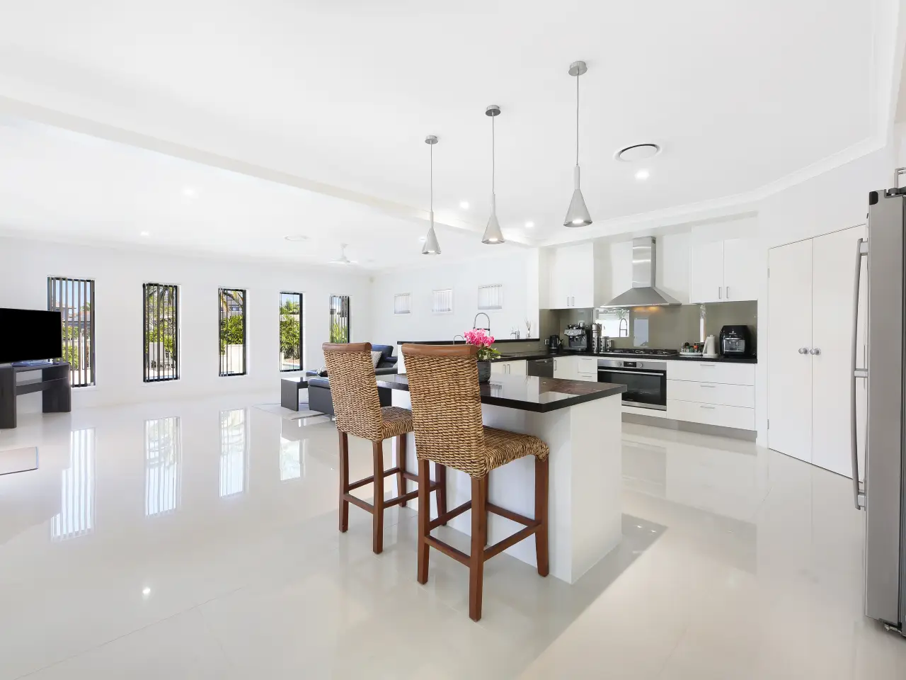 This delightful two-level home in the sought after luxury resort of Hope Island sits on a northeast 656m2 block in the prestigious enclave of Gracemere Gardens, overlooking peaceful parkland with a large easement on one side providing an illusion of extra outdoor green space and privacy. The contemporary 346m2 residence is a dream home for a family looking for a resort lifestyle within a gated, secure and private neighborhood. Offering the ultimate buggy and resort lifestyle, this elegant house with loads of street appeal is an entertainer's dream. The outdoor covered alfresco patio has BBQ facilities and looks onto the exquisite and inviting swimming pool with a separate, heated jacuzzi spa. Set in low maintenance, lush, landscaped gardens, this area is the perfect spot for outdoor dining, entertaining and evening sundowners with your loved ones and friends. Comprising 5 bedrooms, 3 bathrooms, a media room, study and open plan dining, living and a gorgeous "wow factor" kitchen with gas cooktops, 90cm huge Westinghouse oven, integrated dishwasher, generous benchtop space and storage, a Westinghouse double door fridge with plumbing, there is also a large walk-in pantry. A separate breakfast bar island makes this kitchen a great place for family and friends to gather. The master bedroom is an elegant and inviting retreat with walk-in robes, fully tiled ensuite bathroom with electric blinds and a spa bath and separate toilet with door for added privacy. The lovely Juliet balcony off the master suite has stone floor tiles. 3 of the 5 bedrooms have wall installed TVs, built in. robes and are serviced by two spacious, fully tiled bathrooms. The open-plan dining, living and kitchen areas have easy-to-clean porcelain floor tiles, LED lighting, multi-zoned air-conditioning and direct current ceiling fans. The media room includes a large TV and cabinetry for videos and equipment. The study/home office has built-in cabinetry and a large stone desk top with two work stations. The laundry room is fitted with a Fisher and Paykel dryer and LG 7.5kg inverter washing machine with ample storage space and a drying court. Double lock-up garages with a separate buggy garage complete this impeccable property which has recently been painted and roof checks completed. In immaculate and pristine condition, the lucky buyer can simply move in and immediately begin to enjoy the fabulous lifestyle which Hope Island offers. FEATURES OF THIS PRESTIGIOUS RESIDENCE INCLUDE: • 5 bedrooms • 3 bathrooms • Master bedroom with deluxe ensuite which has electric blinds and a spa tub, walk-in robes and Juliet balcony. • 3 of the 5 family bedrooms have wall installed TVs, built-in robes, fully carpeted with ceiling fans and air-conditioning. • 2 fully tiled family bathrooms • Open plan living, dining and luxury kitchen areas, porcelain tiles, LED lighting, fans and air-conditioning. • Huge modern kitchen with high-end appliances, separate island breakfast bar and walk-in pantry • Kitchen appliances include 90cm Westinghouse under bench oven, gas cooktops, dishwasher and fully plumbed double-door Westinghouse fridge. • Spacious laundry with washing machine and dryer, ample storage facilities and a drying yard. • Media room with built-in cabinetry for electric appliances and video storage. Includes a very large TV. • Study or home office has a stone desktop, built-in cabinetry and two workstations. • Double lock-up garages • Separate buggy garage • Covered alfresco entertaining area with BBQ facilities, overlooking the swimming pool • Huge swimming pool with travertine tiles around the outside and a separate Jacuzzi spa. • Low maintenance landscaped gardens with private gateway to Gracemere Park which also has its own BBQ facilities. • Multi-zone air-conditioning and direct current ceiling fans • FIRB approval for overseas buyers • Integrated buggy paths connect all areas of the resort to the local shopping center and marina as well as Sanctuary Cove and the Intercontinental Hotel. • The local shopping center has a Coles supermarket, shops, restaurants and cafes which overlook the marina and Tamborine mountains. • Comprehensive medical facilities including dentists, radiology, pathology and optometrists are situated within the shopping center which has multiple free car parking spaces. • 24 hour gated security with regular security patrols, back to base alarms and panic buttons for medical emergencies. • 3 Championship golf courses in the vicinity for golf enthusiasts and an almost complete tennis and pickleball center. • Close to several excellent public and private schools as well as all the famous Gold Coast theme parks. • 55 minutes' drive via the M1 motorway to Brisbane CBD and International Airports • Several waterways, canals and 3 marinas in the area make Hope Island a boat and fishing lovers paradise. To view this outstanding residence please contact: Gordon Sharpe at Belle Property, Hope Island 0432337662 gordon.sharpe@belleproperty.com Disclaimer: We have in preparing this information used our best endeavours to ensure that the information contained herein is true and accurate but accept no responsibility and disclaim all liability in respect of any errors, omissions, inaccuracies or misstatements that may occur. Prospective purchasers should make their own enquiries to verify the information contained herein.