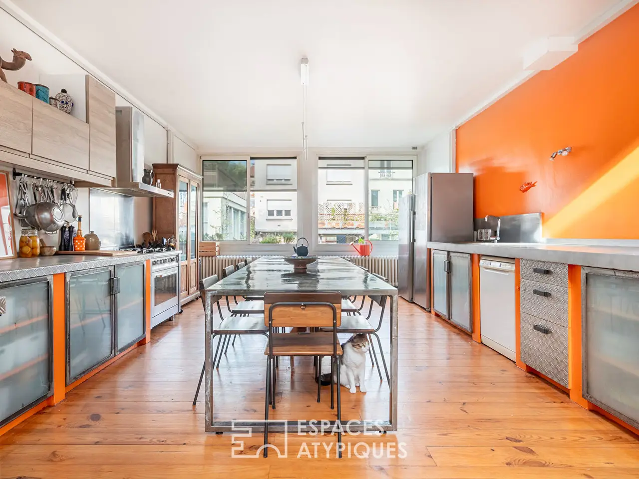 Located on the edge of Montreuil, in the Coutures district, this 253.40 m2 duplex loft (201.80 m2 Carrez law), designed to combine personal and professional life, was the result of the transformation of the former offices of the iconic small appliance brand. Nestled on the first and top floors, it boasts generous volumes and omnipresent light that accompanies every moment.From the entrance, the living room of over 80 m2 captures the eye: a spectacular space beneath a dizzying height, topped with metal beams testifying to the industrial past of the premises. Bathed in light from a skylight and punctuated by skylights, the space benefits from a warm living room, a convivial dining room, and an eat-in kitchen designed as a space for sharing.Wood, concrete, and metal create a subtle and elegant combination, asserting a resolutely contemporary identity. In the center, a wood-burning stove, a true functional sculpture, imposes its presence and enhances the space.Opposite the TV area, a discreetly integrated bookcase accompanies the staircase leading to the mezzanine, designed as a creative cocoon with two workspaces.On the sleeping area, leading off the living room are two bedrooms of 20 m2 and 22 m2 respectively, a bathroom with a bathtub, shower, and toilet, and a dressing room.The entrance hall also leads to a laundry room, a separate toilet, and a third 23 m2 bedroom with its own shower room.Upstairs, a fourth bedroom with a bathtub and an office area completes the space.Tucked away from the hustle and bustle of the city, nestled in a peaceful courtyard, this exceptional loft combines elegance, comfort, and functionality. A truly expressive property, ideal for those seeking a meaningful work-life balance.A parking space and a cellar complete this loft, which is subject to co-ownership status.Metro line 9: Robespierre, 400 meters awayENERGY CLASS: D / CLIMATE CLASS: DEstimated average annual energy costs for standard use, based on 2021 energy prices: between €2,070 and €2,860Contact: Daniel +33 6 64 01 30 43 EI - RSAC: 811 163 369 BobignyREF. 12333Additional information* 7 rooms* 4 bedrooms* 2 bathrooms* 1 bathroom* Floor : 1* 1 floor in the building* Parking : 1 parking space* 91 co-ownership lots* Annual co-ownership fees : 4 263 €* Property tax : 5 801 €* Proceeding : NonEnergy Performance CertificatePrimary energy consumptiond : 160 kWh/m2.yearHigh performance housing*A*B*C*160kWh/m2.year34*kg CO2/m2.yearD*E*F*GExtremely poor housing performance* Of which greenhouse gas emissionsd : 34 kg CO2/m2.yearLow CO2 emissions*A*B*C*34kg CO2/m2.yearD*E*F*GVery high CO2 emissionsEstimated average annual energy costs for standard use, indexed to specific years 2021, 2022, 2023 : between 2070 € and 2860 € Subscription IncludedAgency feesThe fees include VAT and are payable by the vendorMediatorMediation Franchise-Consommateurswww.mediation-franchise.com29 Boulevard de Courcelles 75008 ParisInformation on the risks to which this property is exposed is available on the Geohazards website : www.georisques.gouv.fr