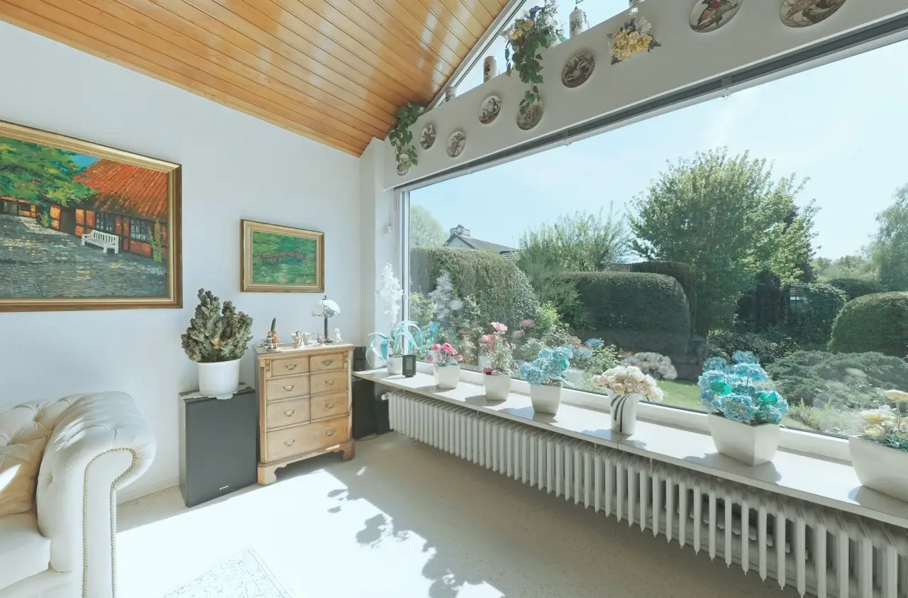 The semi-detached house on offer was built in 1966 and extended in 1974 with a loft conversion. With a living space of approx. 172 m² and a plot size of approx. 635 m², this house offers the perfect retreat for you and your family. The property is in a prime cul-de-sac location on the Kollauwanderweg and offers an unobstructed view of the countryside. The street-side entrance leads into the hallway, from which you can access the rooms on the first floor. The large living/dining room with panoramic windows offers access to the covered terrace and the garden. On cooler days, the open fireplace provides a cozy atmosphere. On the first floor there are two further rooms, a kitchen, a full bathroom with window and a guest WC. An open wooden staircase leads to the converted attic. There are two further rooms and a shower room. There is also a large storage room in the attic. The property has a full basement. In addition to the underground garage, utility and storage rooms, there is also a large hobby room with sauna in the basement. The double-glazed plastic windows are fitted with electric shutters. There is a photovoltaic system on the roof, which supports the household electricity supply. There is space for one car in the underground garage and another on the plot. The excellent location of the property is particularly noteworthy. It is located in one of the most sought-after streets in the district and directly on the Kollauwanderweg. The adjoining owners share an additional parcel of grassland with a total size of approx. 5,893 m² in this area, so that the view remains unobstructed. Have we piqued your interest? Then please contact us and arrange a viewing appointment!
