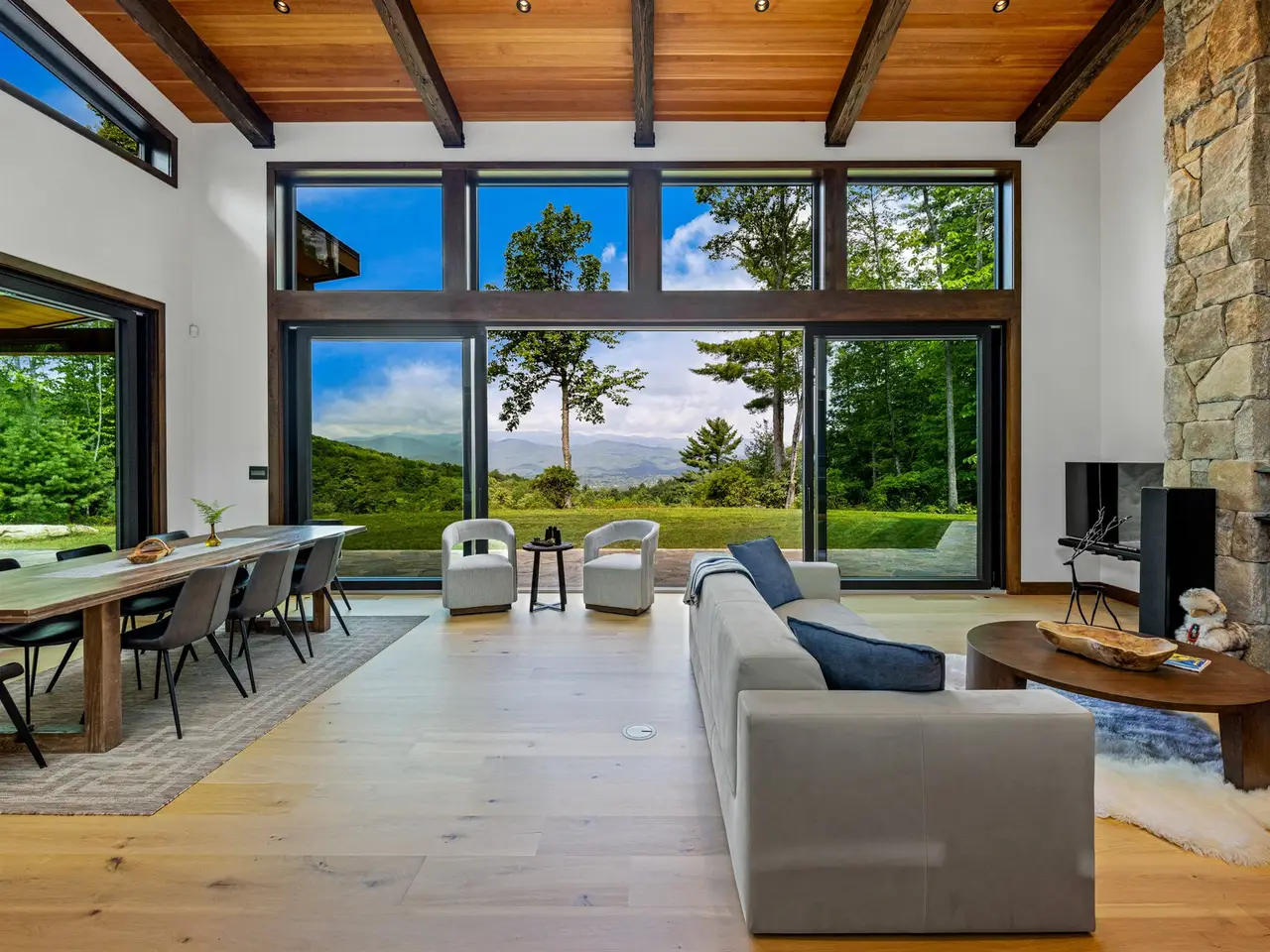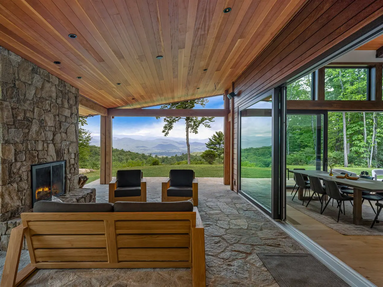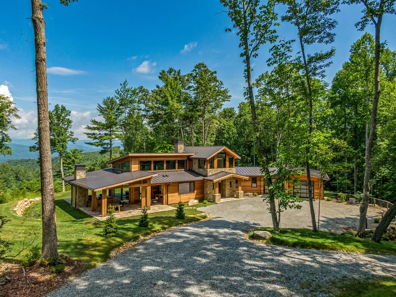 One of Brevard's most exceptional view homes, this European-inspired modern rustic retreat by Platt Architecture sits on four-plus wooded acres in Eagle Lake, just 12 minutes from downtown. Enjoy year-round Blue Ridge Mountain views-including a stunning view of Cedar Rock in Pisgah National Forest-and easy access to a private 30-acre high-elevation lake. Premium finishes include Kommerling steel-frame windows and doors, imported European White Oak floors, handcrafted Walnut cabinetry and trim, and floating stairs. The exterior features durable and elegant Brazilian Ipe siding. Geothermal HVAC with humidifier and fresh air intake ensures year-round comfort. The open floor plan flows effortlessly onto a spacious covered porch with a wood-burning fireplace and a level yard-perfect for outdoor entertaining or play. A branch of Philips Creek meanders through the property, including a lower-level oversized garage/workshop. Crafted with care, this home offers refined mountain living at its finest.