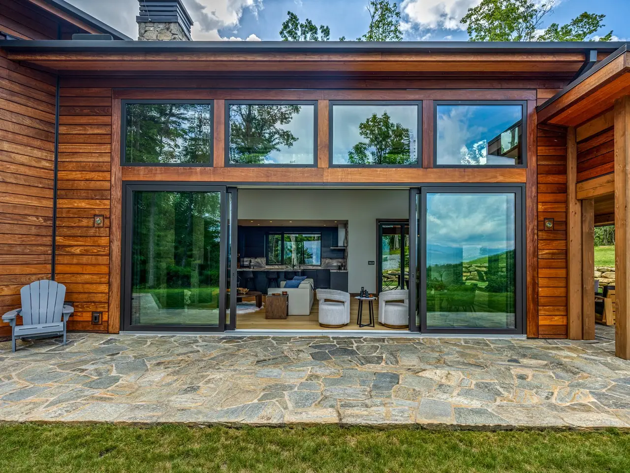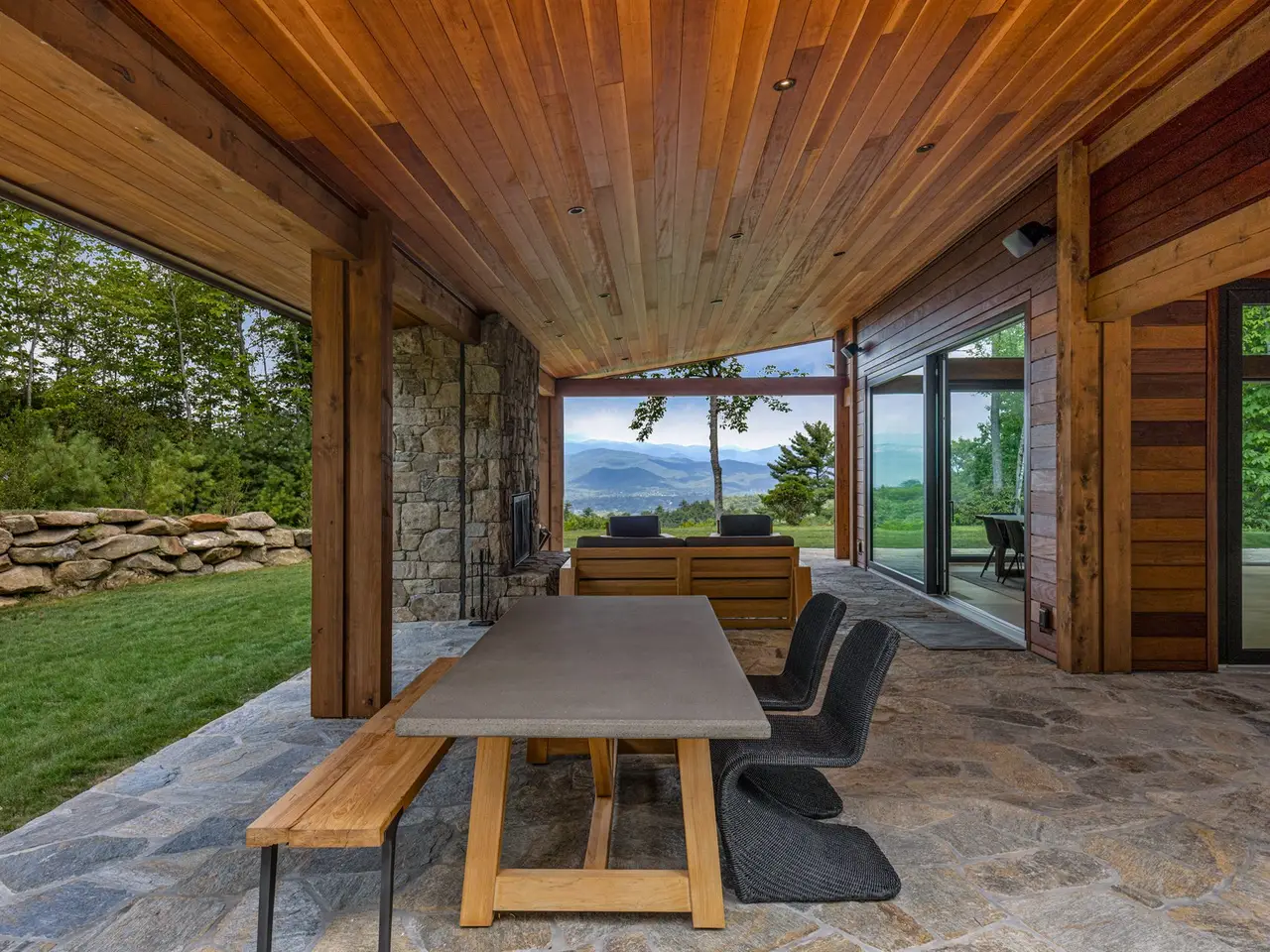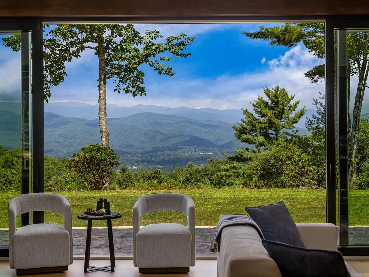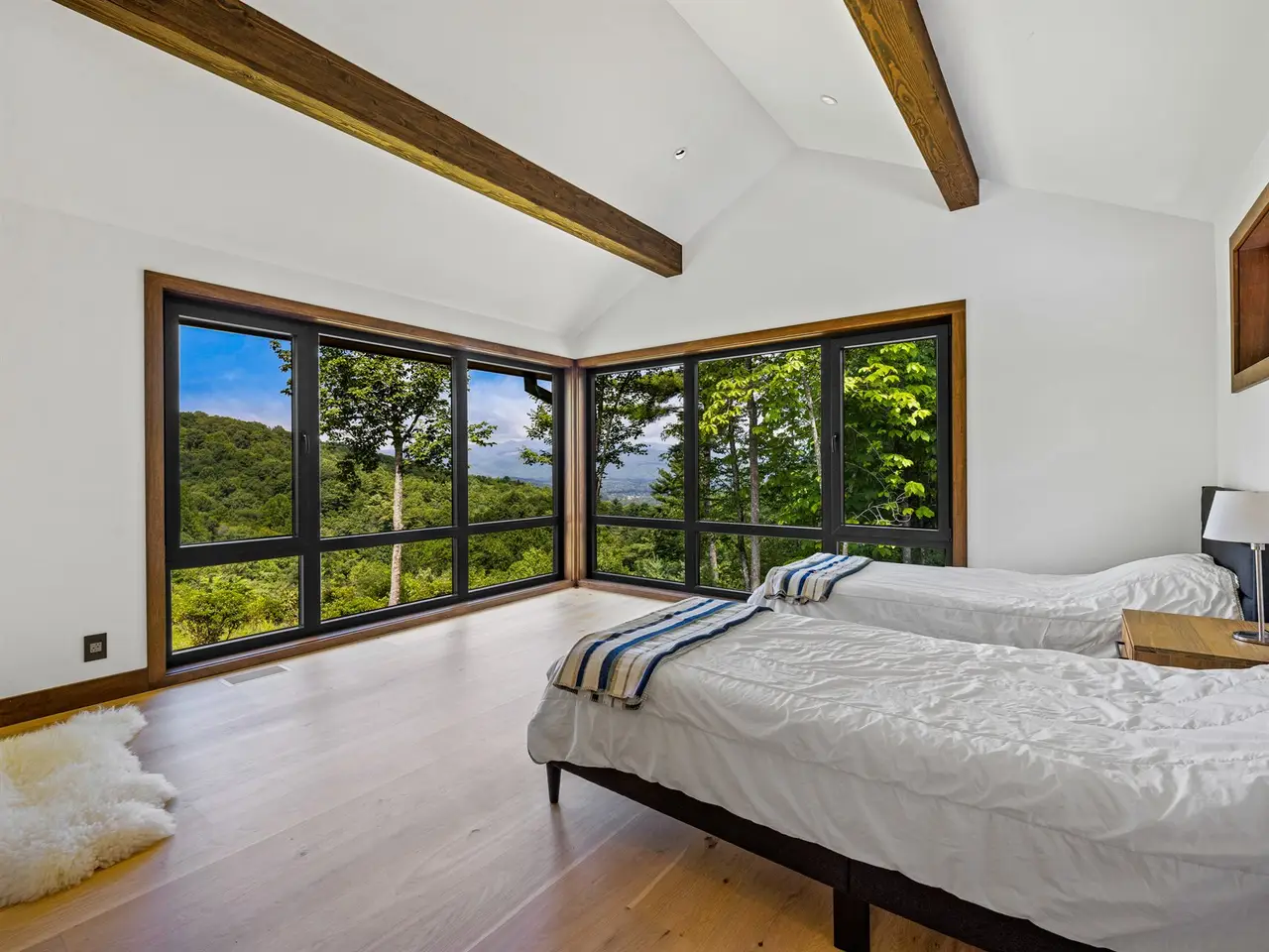 One of Brevard's most exceptional view homes, this European-inspired modern rustic retreat by Platt Architecture sits on four-plus wooded acres in Eagle Lake, just 12 minutes from downtown. Enjoy year-round Blue Ridge Mountain views-including a stunning view of Cedar Rock in Pisgah National Forest-and easy access to a private 30-acre high-elevation lake. Premium finishes include Kommerling steel-frame windows and doors, imported European White Oak floors, handcrafted Walnut cabinetry and trim, and floating stairs. The exterior features durable and elegant Brazilian Ipe siding. Geothermal HVAC with humidifier and fresh air intake ensures year-round comfort. The open floor plan flows effortlessly onto a spacious covered porch with a wood-burning fireplace and a level yard-perfect for outdoor entertaining or play. A branch of Philips Creek meanders through the property, including a lower-level oversized garage/workshop. Crafted with care, this home offers refined mountain living at its finest.