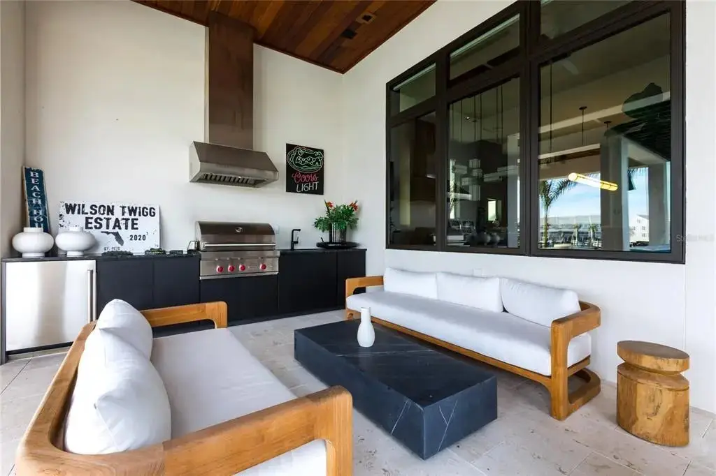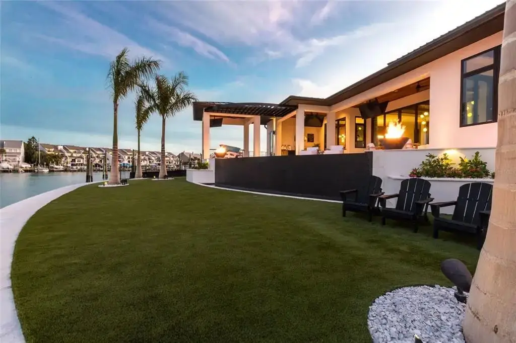 This custom luxury home, completed in 2023, exemplifies exceptional coastal living and architectural excellence, set on 200 feet of waterfront with seamless access to open Gulf waters — a true haven for boating enthusiasts. • DESIGN: Created by the award-winning Sire Design team, known from Netflix’s Designing Miami and HGTV’s Divided by Design, the home was thoughtfully designed for indoor-outdoor flow, everyday comfort, and timeless appeal. • SMARTLY BUILT: Elevated construction, impact-resistant windows, full-house generator, supported by a pilings and stem wall foundation for enhanced structural integrity. • LIVING SPACE: 5,251 square feet of air-conditioned space with 5 bedrooms, 6 full and 1 half bath, a loft, elevator, and two-2-car garages — all anchored by a dramatic 24-foot foyer with a custom pivot door. • HOME AUTOMATION: A full Savant system manages audio-visual, lighting, security, window treatments, televisions, and music — delivering seamless, effortless everyday living through a centralized platform. • INTERIOR FINISHES: Oak Plank Flooring, Avocatus quartzite, Van Gogh onyx, walnut accents, CLE tile, Atelier de Troupe lighting, and Waterworks fixtures add warmth, character, and quality throughout. • OUTDOOR LIVING: A negative-edge heated pool with spillover spa, covered lounge area, and artificial turf create a low-maintenance outdoor retreat perfect for relaxing or entertaining. • DOCK & BOATING: A custom dock completed in 2022 includes a 40,000-pound lift for a 52-foot boat, 2 JetSki lifts, and a seawall completed in 2020. There is ample space to position a larger yacht as well.  • SETTING: Situated on a beautiful street in a peaceful waterfront setting, the home offers effortless access to the water, with the dock placed to the side to preserve open views. Located just minutes from beaches, parks, dining, shopping, and airports, this home offers a lifestyle defined by thoughtful design, premium finishes, and convenience — both on and off the water. Come experience the level of quality, comfort, and design that truly sets this home apart.