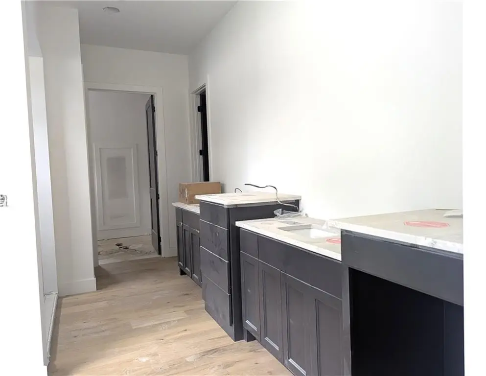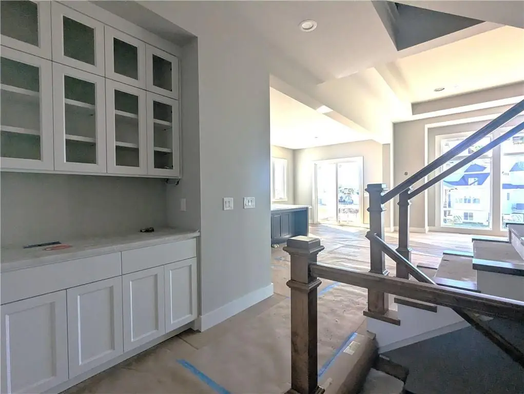 Sunwest Residential's new dramatic Berkshire 1.5-story plan on walkout lot. Now at trim and ready for decor selections. Covered deck and patio. Great room, breakfast, dining, study, laundry, pantry, powder room and master suite with two spacious closets on first. Three bedrooms and three baths, 2nd laundry on second. Wilshire Hills is Ashner Development's newest Blue Valley neighborhood. Amenities with pool, slide, kids pool, playground and pickleball court.