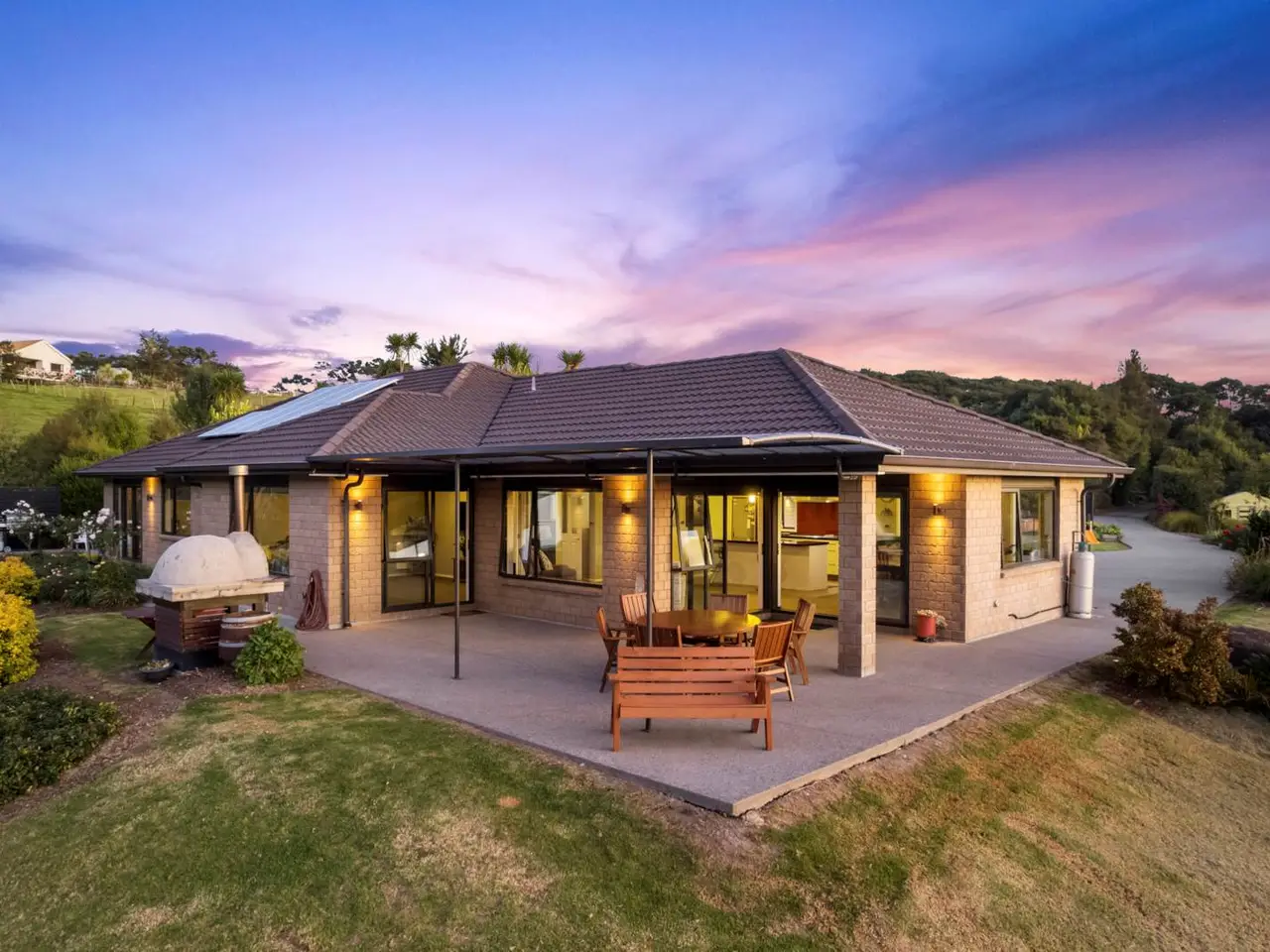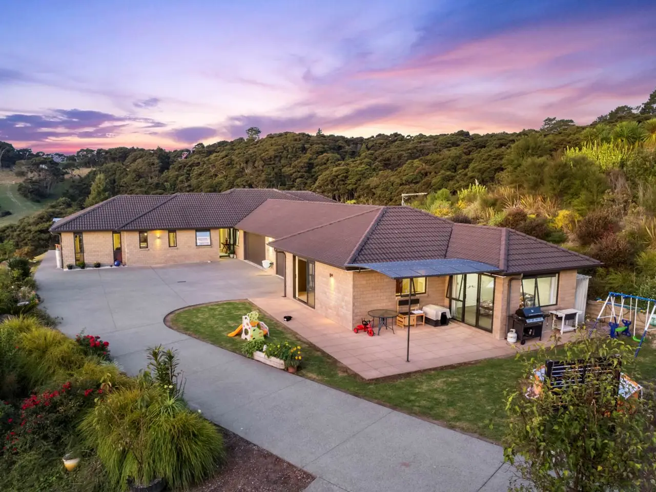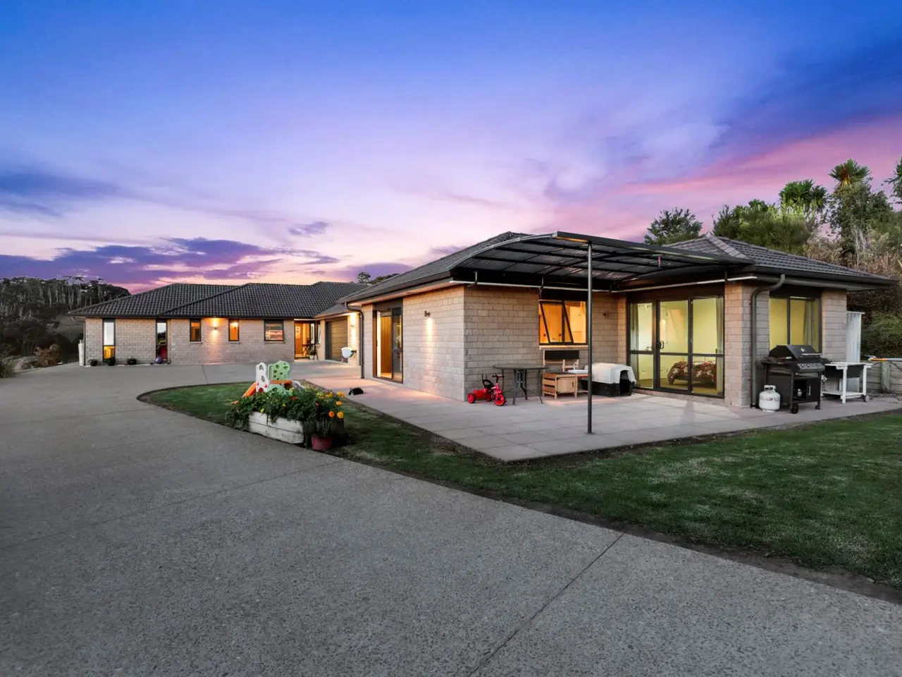 Seeking extended family living in an idyllic natural setting that chimes to the daily birdsong of Tuis & native birdlife? This contemporary 354m2 residence provides the benefit of two separate homes, offering independence & space. The main dwelling suitable for a large family is complimented with asecond (attached) minor dwelling. Perfect as a home & rental also.Enjoy modern living conveniences & sustainable living off the land, growing organic fruit & vegetables with fresh eggs for breakfast & reduce your monthly power bills, thanks to solarpower. Set on a serenely private one hectare – fully fenced, 2.5 acre wonderland, you’ll enjoy stunningly scenic panoramic views. The pad’s in place awaiting your spa pool & the outdoor pizza oven is ready for gourmet pizza! A hidden dog fence provides pet security peace of mind also.The seamless floorplan successfully merges single level living across the two homes.Primary residence:Four bedrooms including master bedroom suite, en-suite bathroom, walk in robe plus three double bedrooms & family bathroom. The open plan kitchen, living & dining room is anentertainer’s joy with plentiful space, showcased by panoramic views from all angles. An adjoining second living room is the perfect place for kicking back & relaxing in the evening. Access to the Archgola covered patio off the living is seamless for supreme outdoor living & alfresco dining.Secondary residence:One bedroom plus study: Includes master & study suitable as home office, open plan dining, kitchen & living with main bathroom. An Archgola covered patio accesses off the masterfor easy outdoor living.Located only 20 minutes from Silverdale and Westgate. Inspect today!