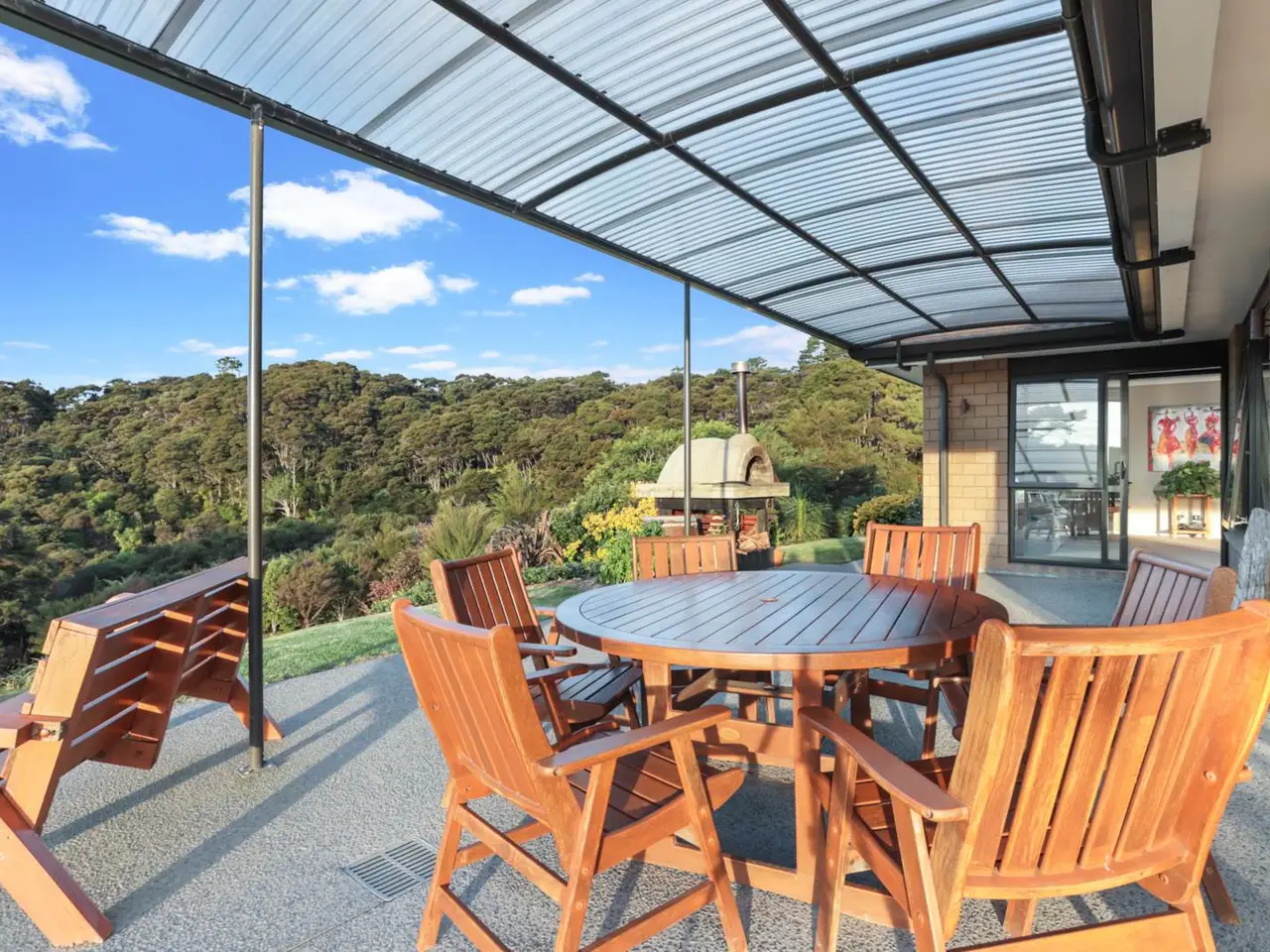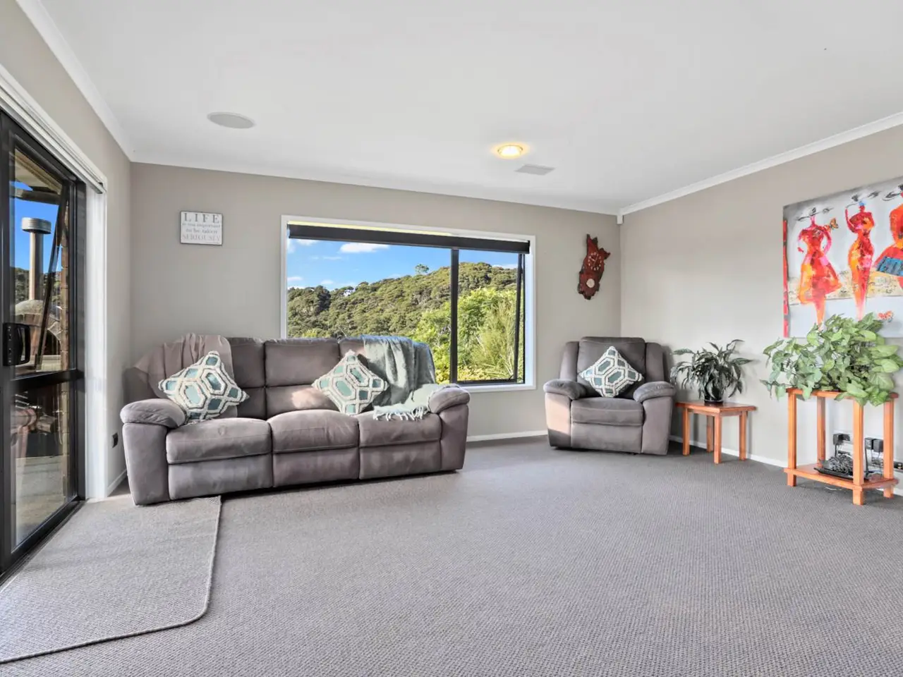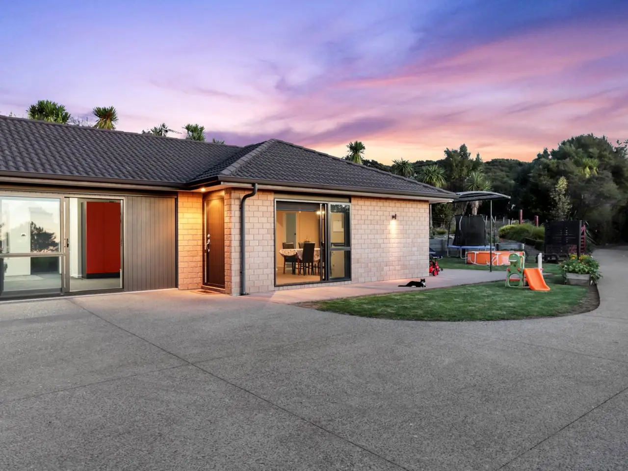 Seeking extended family living in an idyllic natural setting that chimes to the daily birdsong of Tuis & native birdlife? This contemporary 354m2 residence provides the benefit of two separate homes, offering independence & space. The main dwelling suitable for a large family is complimented with asecond (attached) minor dwelling. Perfect as a home & rental also.Enjoy modern living conveniences & sustainable living off the land, growing organic fruit & vegetables with fresh eggs for breakfast & reduce your monthly power bills, thanks to solarpower. Set on a serenely private one hectare – fully fenced, 2.5 acre wonderland, you’ll enjoy stunningly scenic panoramic views. The pad’s in place awaiting your spa pool & the outdoor pizza oven is ready for gourmet pizza! A hidden dog fence provides pet security peace of mind also.The seamless floorplan successfully merges single level living across the two homes.Primary residence:Four bedrooms including master bedroom suite, en-suite bathroom, walk in robe plus three double bedrooms & family bathroom. The open plan kitchen, living & dining room is anentertainer’s joy with plentiful space, showcased by panoramic views from all angles. An adjoining second living room is the perfect place for kicking back & relaxing in the evening. Access to the Archgola covered patio off the living is seamless for supreme outdoor living & alfresco dining.Secondary residence:One bedroom plus study: Includes master & study suitable as home office, open plan dining, kitchen & living with main bathroom. An Archgola covered patio accesses off the masterfor easy outdoor living.Located only 20 minutes from Silverdale and Westgate. Inspect today!