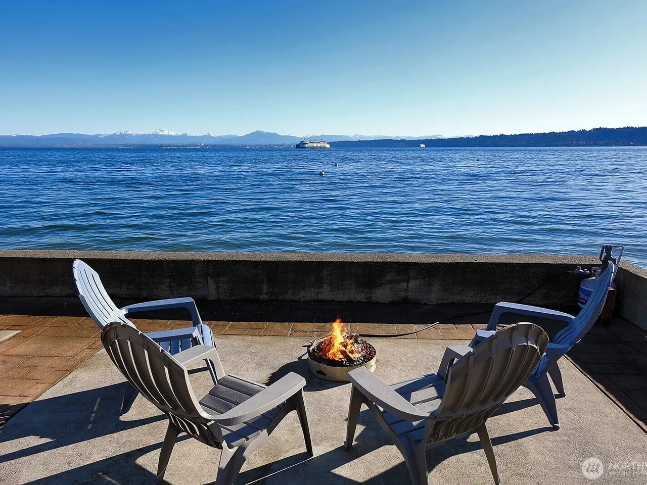 Waterfront views of Cascades & Mt. Baker