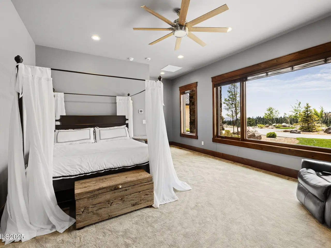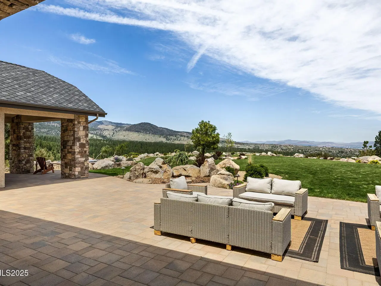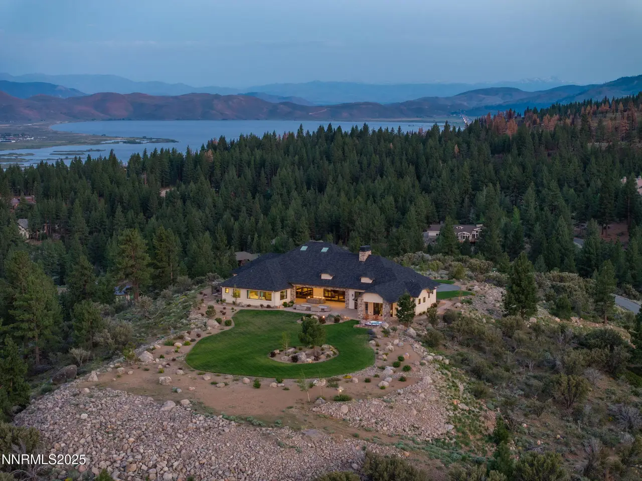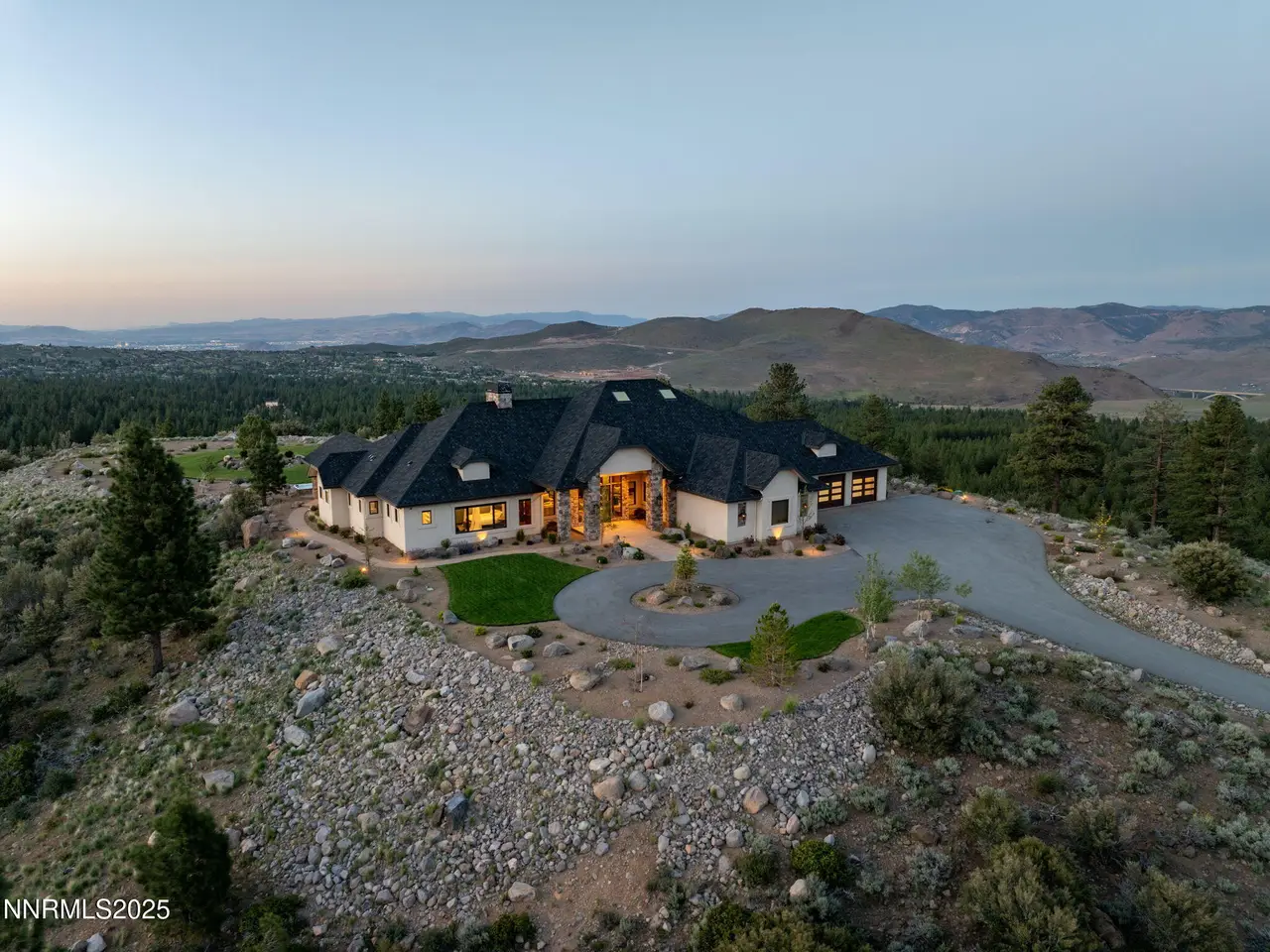 Come home to the only mountaintop that matters at 29 Bennington Court—a 4,831 sq ft single-level, 3 bd/3.5 bath home on 6.33 acres, including an adjacent lot. Designed for privacy, presence, and purposeful luxury, this custom home's features include heated quartzite counters, radiant floors, Waterstone fixtures, and Thermador appliances. Outside, the terrace opens to a Bullfrog spa, gas firepit, wood-burning hearth, and panoramic views of Mt. Rose, the city, and the forest for gatherings and grounded living. Where clarity meets craftsmanship and where home meets horizon, you'll find 29 Bennington Court. A rare alignment of location, design, and intention, this 6.33-acre property—including the adjacent lot—is ideal for those seeking space, presence, and enduring quality on a mountaintop estate unlike any other in the region. This single-level residence was designed with intention for liveable luxury. Every room opens to views of Mt. Rose, downtown Reno, and the surrounding forest canopy, while remaining just minutes from restaurants, schools, and shopping in South Reno. Inside, timeless craftsmanship is paired with intelligent modern upgrades. Radiant in-floor heating runs throughout the bathrooms, while heated counters add to the kitchen. A full suite of Thermador appliances—including a six-burner range with griddle, dual convection ovens, and commercial-grade ventilation—anchors the chef's kitchen. Soft-close cabinetry flows into a walk-through butler's pantry, featuring a pebble ice maker, custom storage, open shelving for effortless entertaining, and direct access to the oversized garage, which features epoxy floors and space for storage. The home's wide hallways, soaring soffit ceilings, and unobtrusive transitions between rooms create a grounded rhythm that invites movement and rest. Materials were chosen to age beautifully and wear comfortably: hardwood in main living areas, plush carpet in the bedrooms, and marble thresholds in transition zones. Skylights are placed to follow the arc of the sun, shifting light across the home throughout the day. A dedicated home office offers built-in storage, integrated lighting, and sweeping views—perfectly positioned for focused work, creative flow, or organizational ease. The three en-suite bedrooms offer privacy, stunning views, and spa-level finishes. The primary suite features a soaking tub, a walk-in essential oil steam shower, and a custom dressing room featuring mirrored cabinetry, soft-close drawers, tailored lighting, and a clever pass-through to the oversized laundry room. Dual washers and dryers, integrated hampers, and abundant storage make daily living more doable. An additional powder room with a Chanel-inspired wall texture accommodates guests and outdoor use. Beyond the view-filled windows, the outdoors unfolds with a similar sense of ease and intentionality. A recessed Bullfrog spa, a built-in gas firepit, and a wood-burning hearth create three zones for gathering, storytelling, and stargazing. The concrete terrace is plumbed for gas heaters and a future outdoor kitchen or enclosed pavilion. Hand-selected landscaping stones, including rare moss-covered granite boulders, were sourced from the land. Technology, comfort, and craftsmanship work in tandem: Lutron smart lighting, Brizzo hardware and Waterstone fixtures, prewiring for audiovisual integration, and ceiling heights engineered for long-term maintenance ease—no scaffolding required. The adjacent parcel at 33 Bennington Court is included in the sale, offering rare flexibility. Expand your compound. Build a guest home, artist's studio, multigenerational retreat, or simply preserve the land for peace, investment, or the future you haven't imagined yet. This home was built for gatherings that span generations, careers that evolve, and for people who understand that living well means living with purpose. Whether hosting, resting, creating, or simply being, this home meets you where you are.