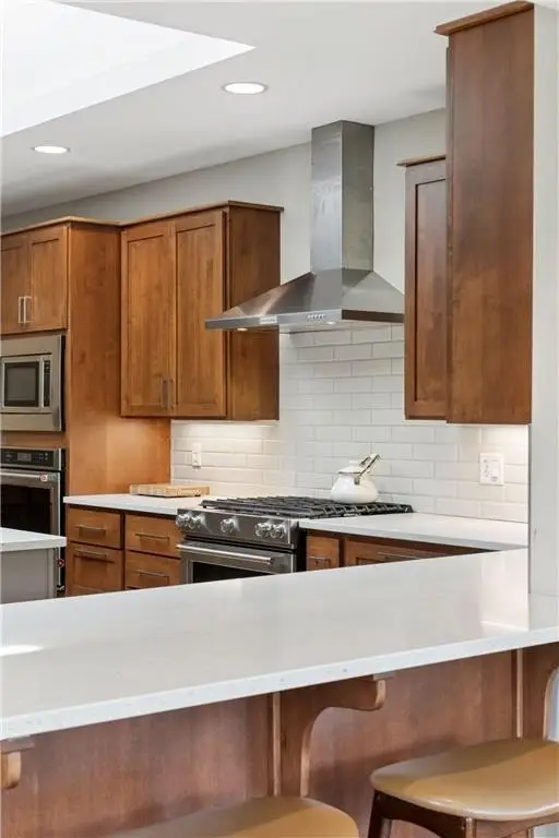 Tucked away on a beautifully wooded 5.42-acre lot in the heart of Afton, this striking mid-century modern home is the perfect blend of timeless design and thoughtful modern updates. Every detail of this property exudes style, comfort, and functionality—from the open floor plan and dramatic vaulted ceilings to the sun-drenched skylights and architectural double-sided woodburning fireplace, seamlessly connecting the main living space with a cozy covered back deck. The heart of the home is the fully remodeled kitchen (2019), where sleek Quartz countertops, soft-close cabinetry, a statement vent hood, and premium appliances—including a Kitchenaid ice machine—make entertaining a breeze. Warm hardwood floors lead to a stunning sunroom and three spacious main-level bedrooms, while recently updated bathrooms add fresh sophistication with high-end finishes. Step outside to experience the ultimate in resort-style living: a heated saltwater pool, expansive 2-tiered maintenance-free deck, and your very own outdoor sport court and pickleball court for endless summer enjoyment. A tree house tucked among the trees adds a whimsical touch for guests of all ages. A newly constructed (2022) 25x29 detached garage offers the perfect setup for a workshop, extra storage, or even boat parking. Additional highlights include new carpet, new interior doors, a radon mitigation system, sauna, and a newer roof (2018). This home is not just a property—it's a lifestyle. Experience peace, privacy, and inspired design just minutes from downtown Afton