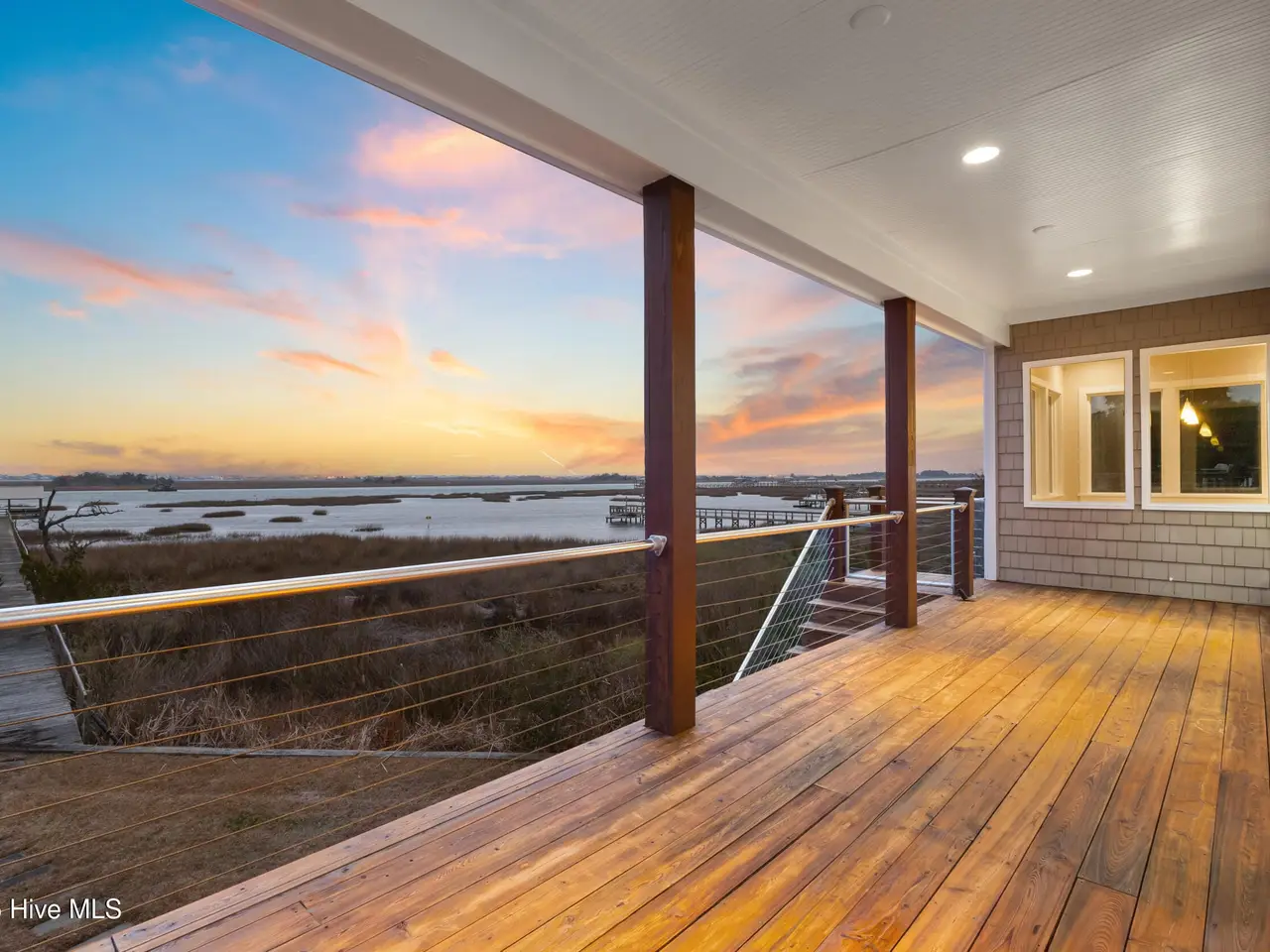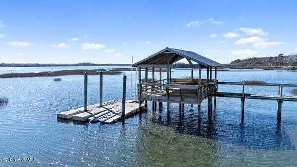Nestled along 100 feet of pristine waterfront, this exceptional 3 bedroom, 4.5 home (plus two additional upstairs flex rooms with closets) is the perfect blend of thoughtful craftsmanship with the serenity of coastal living! The monolithic slab construction and Zip-Wall System ensure lasting strength, while the new architectural shingled roof (installed 11/2024) and impact-resistant windows provide peace of mind. Step inside, and you'll be greeted by luxurious 20x20 Spanish stone tile flooring, featuring a compass rose, setting the stage for a home that is both refined and inviting. The custom KraftMaid maple cabinetry offers soft-close dovetail drawers throughout, while the built-in wet barfeaturing a one-of-a-kind sea turtle tile backsplashcreates the ideal space for entertaining. With an elevator-shaft, a whole-house water filtration and softener system, and a cedar-lined storage window seat in the spacious upstairs Family Bonus Room, every detail has been carefully curated for comfort and convenience. Freshly painted inside and out (12/2024), this meticulously maintained home also includes a garage workshop wired for 20A service, ample space for a small boat on a trailer, and three Carolina Perception kayaks with ruddersready for new owners to explore the beauty of the coast. Outside you will find where the expansive covered porch with Cypress decking and sleek cable railing invites you to unwind with beautiful unobstructed ICW views. Venture down to your oversized dock, featuring built-in seating, a full roof, a kayak launch, a fish-cleaning station, and drive-on boat docking for a flat bottom boat or jet skis; a dream setup for avid boaters and fishermen alike. The Harbour Village Marina and Topsail Inlet are just moments away, ensuring effortless access to the best coastal waters. This is more than a home; it's a legacy of waterfront living, where crabbing with a string, fishing and watching sunsets ensure memories to last a lifetime!