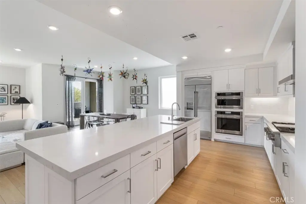 Welcome to 4209 Rivington at Lexington in Central Park West, where modern luxury and convenience meet in one of Irvine’s most desirable communities. This nearly 2,000 square foot corner residence stands apart with its generous scale, rare construction features, and access to resort-style amenities. Spacious and inviting: Oversized rooms create comfort and flexibility. The primary suite is a true retreat with space for a sitting area, while the open-concept living, dining, and kitchen spans a dramatic footprint that’s perfect for entertaining. At the center of it all, a striking 14-foot kitchen island anchors the chef’s kitchen, offering abundant workspace and an inviting hub for gatherings. This floorplan also includes an extra closet for added storage. Private and peaceful: Enjoy rare privacy with no homes looking in and only one common wall. Reinforced 12-inch concrete slabs—a premium feature found in only a handful of Lexington residences—ensure quiet living, while metal stud construction and double-paned windows add durability and sound resistance. Light-filled corner unit: South-facing exposure fills the home with natural light all day. Smart-home features such as a Ring alarm, WiFi-enabled appliances, remote-access community doors, and a smart thermostat bring ease and security. Additional highlights include dual entry, a private patio for morning coffee or evening gatherings, and two side-by-side parking spaces conveniently located next to the exit stairwell. This chic Lexington residence also includes quartz countertops, GE Monogram appliances, designer cabinetry, and commercial-grade WiFi. Residents also enjoy access to an 8,000 sq. ft. clubhouse and recreation center, junior Olympic saltwater pool, three outdoor Jacuzzis, a cutting-edge fitness center, and outdoor half basketball and Pickleball courts. Exclusive Lexington offerings include a gated dog park, cabanas, BBQ grills, fireplaces, flat-screen TVs, foosball and ping pong tables, outdoor workspaces, EV charging stations, and direct access to the future Jamboree pedestrian bridge slated for completion in 2027. Perfectly situated at Michelson Drive and Jamboree Road, Lexington offers access to South Coast Plaza, Fashion Island, Irvine Spectrum, UCI, John Wayne Airport, and major freeways. With its spacious interiors, unique concrete slab construction, premium amenities, and unbeatable location, this Rivington residence is truly a gem within one of Irvine’s premier communities.