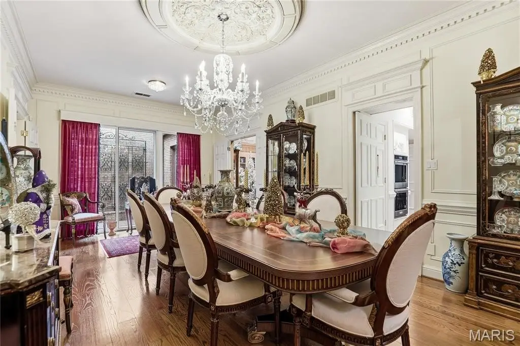 Discover timeless luxury in this three-bedroom, four-and-a-half-bath villa offering 3,368 square feet of refined living space. Beyond the gated brick courtyard, this home welcomes you with 12-foot-high ceilings, checkerboard Italian marble flooring, intricate custom moldings, and exquisite architectural details throughout. A newly renovated Kitchen is both stylish and functional, featuring quartz countertops, abundant storage, and premium finishes—perfect for both everyday living and entertaining. A charming dining area adjoins the Kitchen area. Soaring ceilings, exquisite chandeliers and lighting , attention to details and rich hardwood flooring flows throughout the main living areas, accented by Scalamandré designer wallpaper that adds a touch of sophisticated elegance. Each bedroom suite offers privacy and comfort, with luxurious baths and generous closets. An upper level offers flexibility for a third bedroom en suite bath or office. Additional Storage closet wrap around the upper level to provide an remarkable abundance of additional storage and a cedar closet. Additional highlights of this fee simple Villa include an inviting gated courtyard entry ideal for your relaxing or hosting guests. Do not miss the terra cotta brick–floored two car garage featuring crown molding, white birch paneling, heaters and a pair of ceiling fans. This fee simple villa combines classic design, modern amenities, and unmatched attention to detail—a rare opportunity for those seeking sophistication and comfort in a distinguished setting.