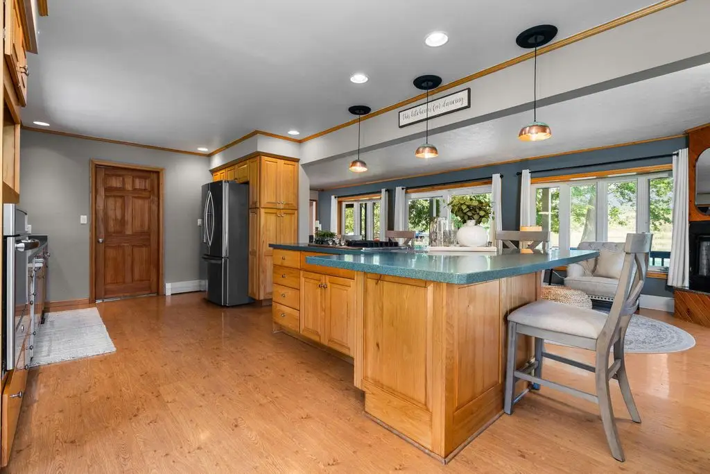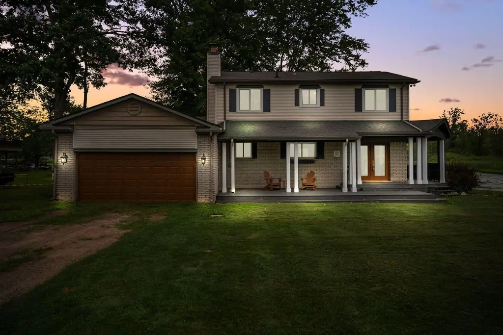 Lakefront Gem on Gallagher Lake, part of the Portage Chain of Lakes. Premier corner lot with 337 feet of newer seawall, offering panoramic, unobstructed views of Gallagher Lake with tranquil sights & sounds of nature in every season. Inside, the home offers an open-concept kitchen with a spacious island & sweeping lake views from nearly every window. Living room with fireplace & family room, perfect for entertaining. 4 bedrooms & 2 full baths including a primary suite with en-suite bath. The expansive yard offers plenty of space for outdoor funC/B?B=and ample room for all your boats & water toys. Enjoy lake life, including the terrific annual Gallagher fireworks show from your own front yard. Soak in the views from sunrise to sunset they are truly unforgettable!