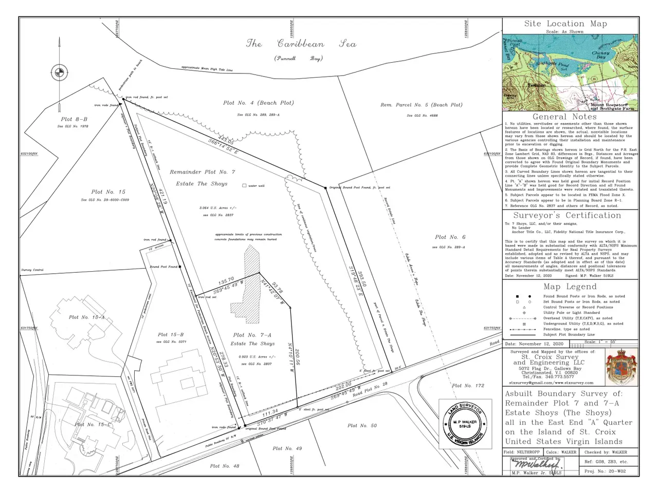 Stunning One-of-a-Kind Beachfront Lot located in the coveted gated community of Shoys. This gorgeous 3.97-acre lot offers direct access to Shoys Beach and the pristine waters of the Caribbean Sea. With a sandy beachfront, mature trees, a gentle grassy slope, and an onsite well, this lot provides an unparalleled opportunity to build your private oasis in paradise. Enjoy golf or join the tennis club at the Buccaneer Beach and Golf Resort, just minutes away. Green Cay Marina is within walking distance, and historic Christiansted, with open-air dining, water activities, shopping, and daily excursions, is only a 5-minute drive.