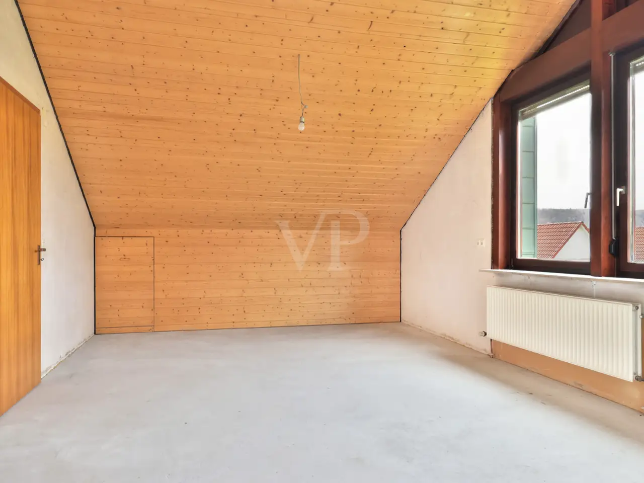 This exceptional property, which is located in the middle of Leonberg in a quiet area and offset in the second row of buildings, leaves nothing to be desired. Nestled in a mature residential area, the building is located in the middle of a 925 sqm plot with beautiful trees and shrubs in the garden. Inside and out, it exudes the charm of the 80s. But in terms of technology and energy, it was ahead of its time, which is also reflected in the energy certificate. The house has full thermal insulation using insulating mortar, triple-glazed windows and central heating with special storage technology - something very special. This opens up numerous possibilities for how you can heat it in the future. There are just as many options for future use. Possible uses could therefore be: A multi-generational house, living and working under one roof, a mixed property between personal use and investment, connecting the upper and top floor units and using the apartment on the ground floor as a granny flat/guest apartment/office, dividing into 3 units in separate land registers and reselling, etc.! The building is currently divided into an attic apartment, which is still in an undeveloped state. Heating is available, as is the screed and all connections in the sanitary and kitchen areas. This means that you can start with the interior work right away and design everything according to your wishes and ideas. There is also a balcony. If you leave the rooms as they are, a 3.5 room apartment with around 115 square meters could be created here. On the upper floor there is a 4.5 room apartment with around 175 square meters of living space. This apartment is developed, but in the state it was in when it was built. Highlights of this living level are the 44 sqm living room with fireplace and access to an above-average sized and covered balcony, which also has a fireplace, a separate utility room adjacent to the kitchen, 2 bathrooms and a separate guest toilet and other practical amenities such as some electric shutters. On the ground floor, in addition to some communal areas such as a utility room, a practical storage room and the prepared pool area, there is also a small apartment of around 53 sqm and two further rooms. The two rooms can either be used separately or added to the apartment, which would increase the area of the apartment to a good 90 sqm living space. The basement offers a total of 3 spacious basement rooms, one of which has a natural floor. There is also a boiler room in which the central heating technology of the house is located, as well as a storage room and a room for the swimming pool technology, which also has its place. Have these exciting facts about the house made you curious? Then please contact us, we look forward to hearing from you. Position The property for sale is located in a sought-after, quiet and yet central location in Leonberg - everything you need for your daily needs, including doctors, etc., is in the immediate vicinity. Leonberg, including all its districts, has a population of almost 50,000. With its picturesque old town and beautiful half-timbered houses, the city has a lot of charm and also offers an excellent infrastructure with all kinds of shopping facilities (e.g. the Leo Center) and a wide range of leisure activities (e.g. the large Leo-Bad swimming pool area). Due to the good transport links to the state capital Stuttgart and the scenic location, the location has a high quality of living. Leonberg is optimally connected to the national road network via the A8 and A81 motorways. Stuttgart Airport can be reached in around 25 minutes. Local public transport is provided by the S6 and S60 suburban trains. Numerous bus lines also take you quickly to your desired destination. equipment Let's get to the most important key data about the building. The house has a full basement. There is a prepared elevator shaft right at the entrance to the house. There is neither an elevator nor technology, but it could be installed and would ensure that all 4 floors of the building are accessible without barriers - the elevator reaches from the basement to the attic. There is a pool in the shell on the ground floor. There is no swimming pool technology yet, but everything is prepared for it. A toilet and a shower are also prepared in the pool area. If necessary, the pool could also be covered with a wooden structure and serve as another room, which could even be connected to the ground floor apartment described above with a breakthrough. With another breakthrough from the pool into the adjacent utility rooms, the living area of this apartment can be enlarged even further. There is a spacious double garage with direct access to the house and the garden. Further parking spaces are available on the tarred area to the south of the building and in front of the garage. parking space 2 x open space, 2 x garage Other Information An energy requirement certificate is available. This is valid until August 1, 2031. Final energy requirement is 139.80 kWh/(m²*a). The main energy source for heating is electricity. The year the property was built according to the energy certificate is 1984. The energy efficiency class is E. MONEY LAUNDERING: As a real estate agency, von Poll Immobilien GmbH is obliged under Section 2 Paragraph 1 No. 14 and Section 11 Paragraphs 1 and 2 of the Money Laundering Act (GwG) to establish and verify the identity of the contractual partner when establishing a business relationship, or as soon as there is a serious interest in executing the property purchase contract. To do this, it is necessary that we record the relevant data from your ID card (if you are acting as a natural person) - for example by means of a copy. For a legal entity, we require a copy of the commercial register extract showing the beneficial owner. The Money Laundering Act stipulates that the broker must keep the copies or documents for five years. As our contractual partner, you also have a duty to coopera