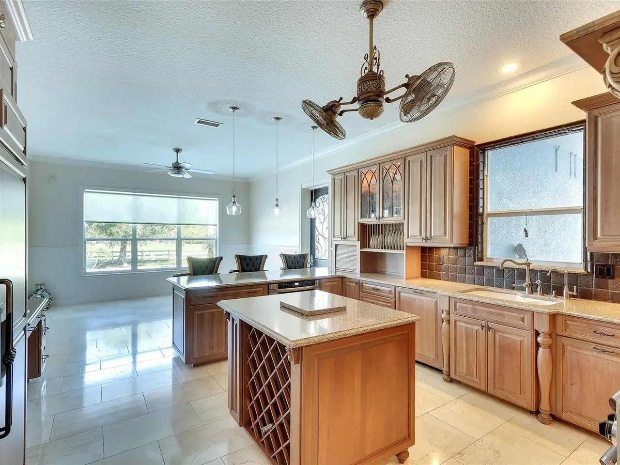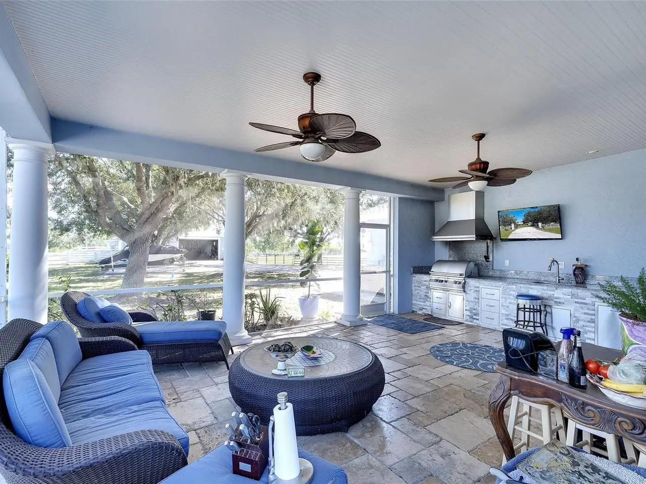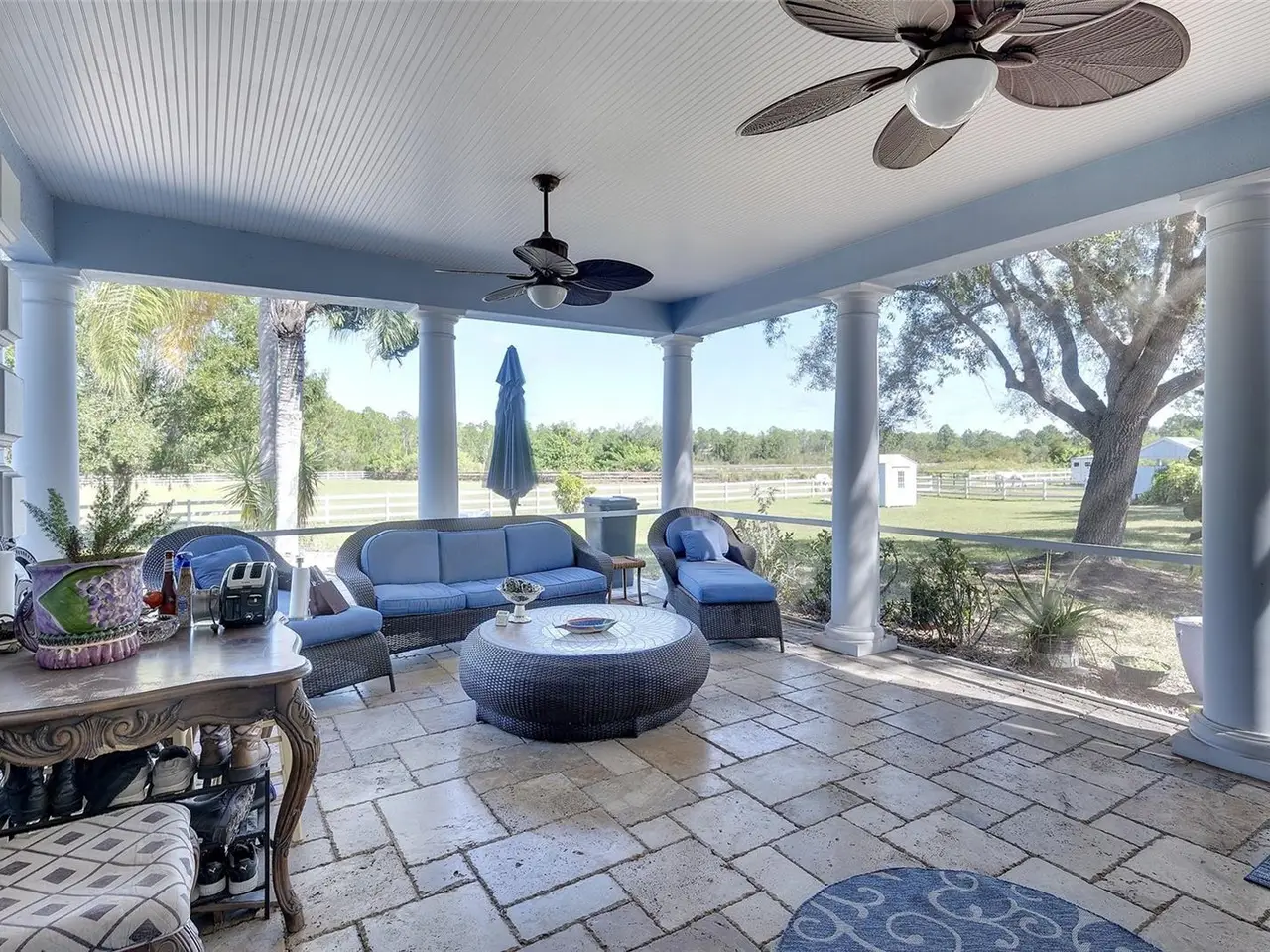 Gated and completely fenced, this elegant traditional home is in the highly sought after neighborhood of Foxwood in Panther Ridge. Its storm ready and perfectly positioned in Zone X, sitting high and dry, with no flood insurance required. Adding to your peace of mind, the house and barn have new roofs in 2025, each with a transferrable warranty. This country estate offers enduring craftmanship. Arrive through the automatic gate to the oak tree lined driveway. The view of pasture and block barn on right and pond on left make for beautiful curbside appeal. Step onto front porch and enter the marble foyer. Once inside you will find an impressive gourmet kitchen with cherry cabinetry, Cambria quarts, a 6 burned DACOR gas range, Sub-Zero refrigerator, Miele dishwasher-ideal for those who love to cook. The kitchen is light and airy with breakfast bar and plenty of room for table to view the saltwater pool with Baha shelf. The first-floor primary suite features a gas fireplace, spa-inspired bath with Mr. Steam shower and brass clawfoot tub, and custom closets with locking cabinetry. The great room has 20-foot ceilings, gas fireplace, marble floors and poplar built-ins open to a screened lanai with an automatic shade for effortless indoor-outdoor living. Additional rooms on first floor are spacious dining room, office, and private bedroom with ensuite bath. Featured upstairs is a large bonus room with bar connecting to a TREX deck overlooking pool with generous travertine surround. Two additional bedrooms and bathroom complete the second floor. The block barn designed with 4 stalls, individual turnouts, automatic fly system, fans, tack room, feed room, wash racks, and RV outlets. The barn offers infinite flexibility and could be converted into a guest house, workshop, or space for a car collector. Both the home and barn feature Miami-Dade hurricane rated windows and doors. For year-round comfort and security, a 30KW Generac generator and Martin garage doors have been installed. It is important to note that Panther Ridge offers miles of groomed private trails with bridges, oak hammocks, pine forests. Horseback riding, hiking and biking are allowed with no motorized vehicles to disturb the beauty of Mother Nature. Panther Ridge is a prime location for the Florida country living lifestyle. The serene setting and proximity to hospitals, schools, shopping, sports parks and only 8 miles from I-75. Bordering on the West side of the community is The Concession Golf Club designed by Jack Nicklaus and Gary Player. Don't miss the opportunity to live and enjoy this home in a unique setting. Places like this are not being built with everything this extraordinary home and property have to offer.