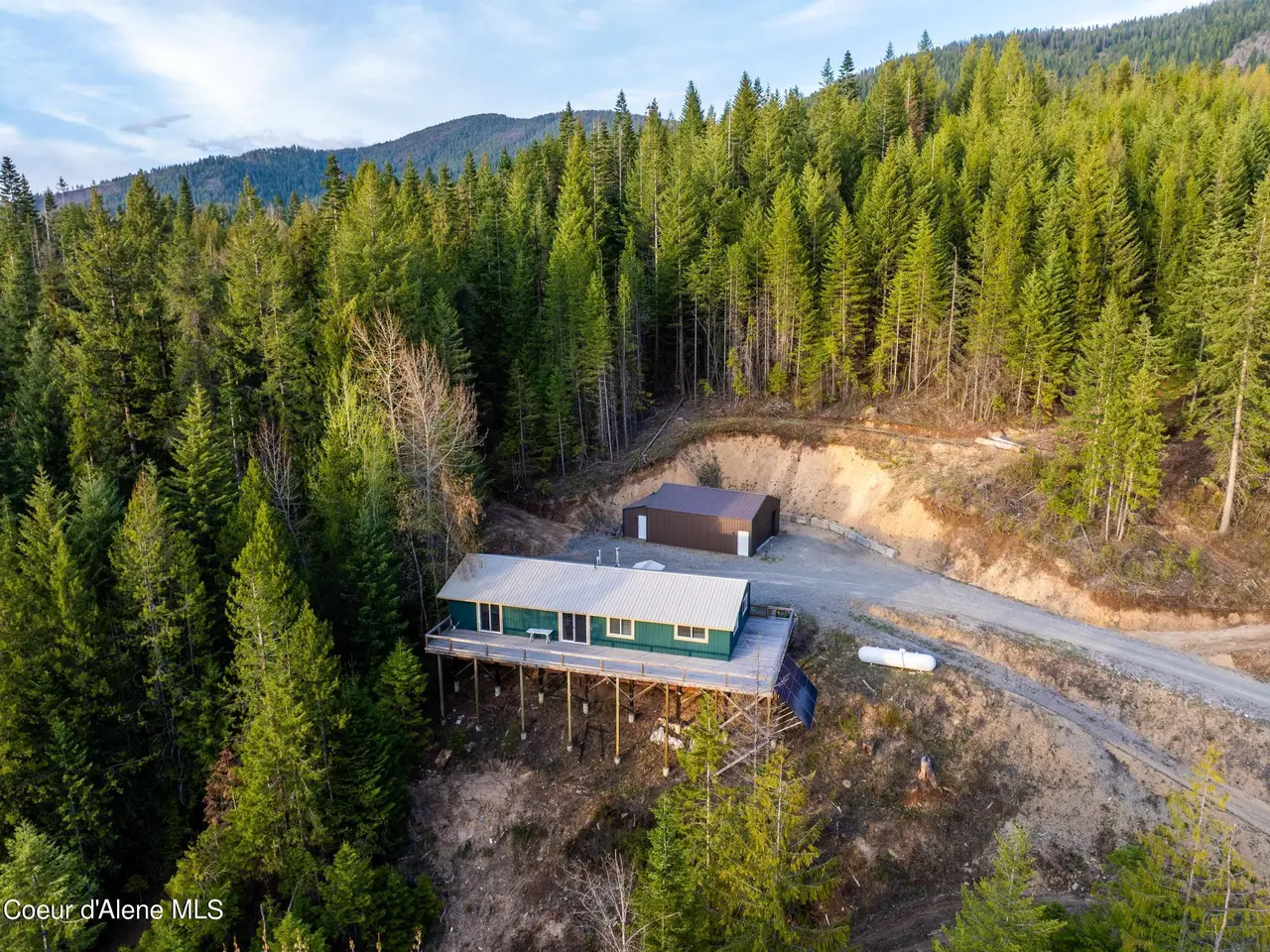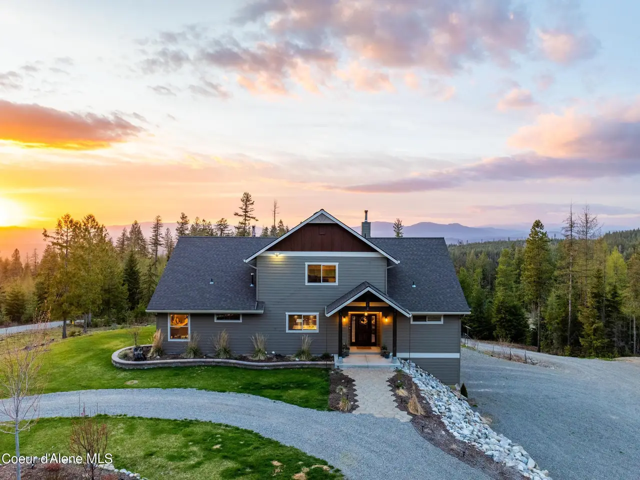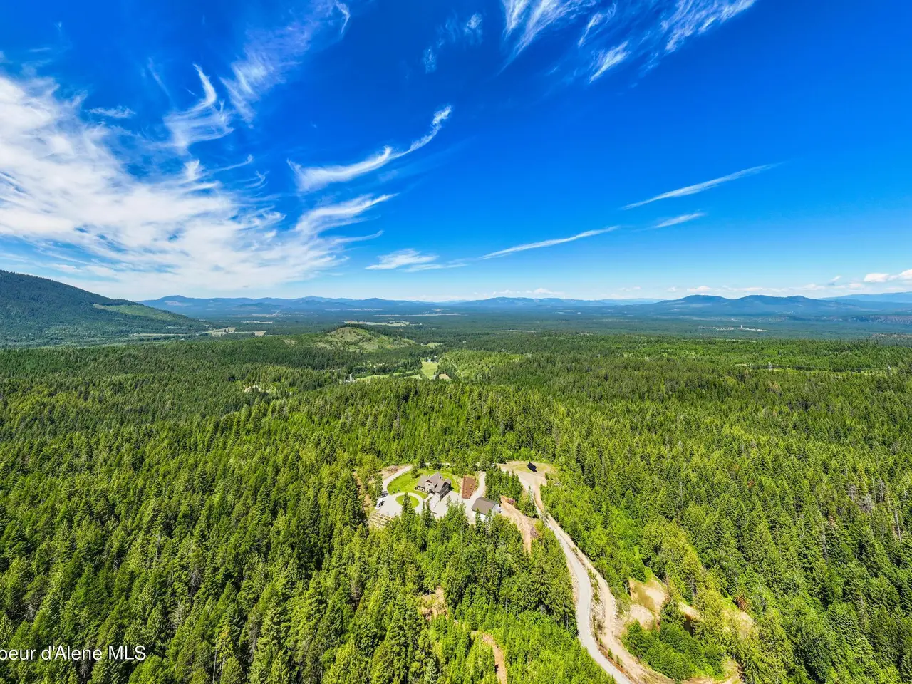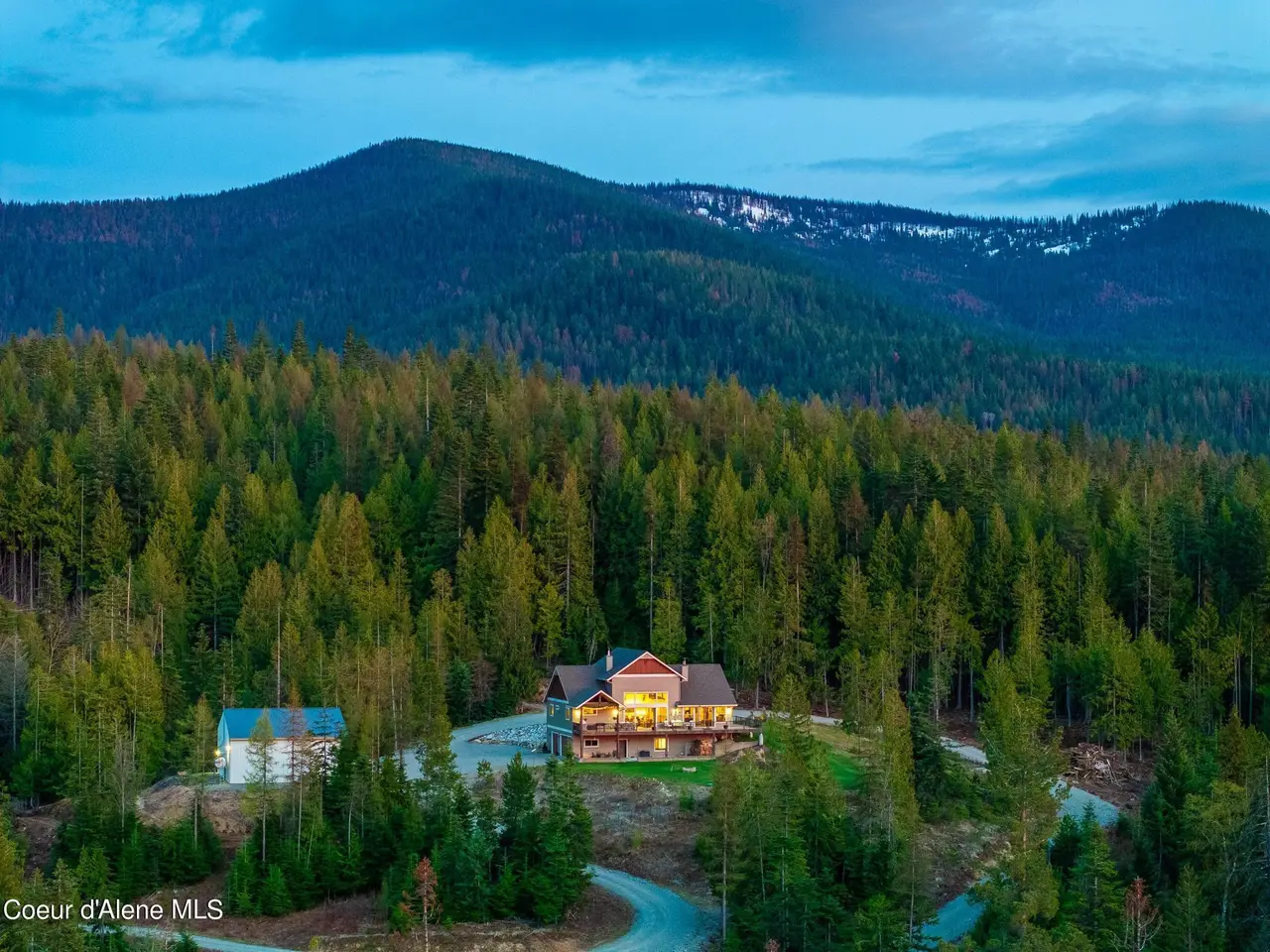 Welcome to your 45-acre luxury compound surrounded by beautiful timberland for your own private playground! This self-sustaining estate is completely surrounded by Forest Service land delivering optimal privacy but only 25 minutes from town. This truly magnificent structure is unlike anything on the market in the Pacific Northwest offering off-grid living at the highest level with state-of-the-art solar power serving 2 homes, high production well producing 17 GPM, two shops with the potential for additional dwellings tucked in the trees. The main residence is a 3 bed 4 bath 3,984 sq ft custom home fully upgraded throughout including a gourmet kitchen with Thermador appliances, custom Alder cabinetry, walk-in pantry, luxurious master suite with spa bathroom, floor-to-ceiling glass with spectacular views off the main floor of Schweitzer Mountain and Mt Spokane. Just steps away from the home is a 48 x 48 shop with plenty of space for toys and a workshop which includes the electrical room and battery bank with a backup generator for the main home. Also on the property is a two-bedroom one bath 1440 sq ft guest home with breathtaking views from the back deck, its own solar panel system, propane tank with gas appliances, and a Lopi wood-burning stove. It has a 24 x 36 shop with its own electrical room to include a back-up generator and battery bank system. An impressive garden space with raised beds and drip irrigation supplies plenty of water and also underground water storage for both homes. A year-round spring-fed water system at 15 GPM supplying the cabin will never let you down and creates a beautiful pond down below the 2 homes with potential for a wedding venue. There are beautiful trails throughout the property to explore, hunt and ride your side-by-sides with breathtaking sunsets at the top. It is a dream playground surrounded by nature!