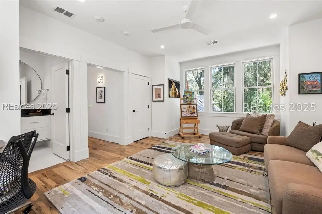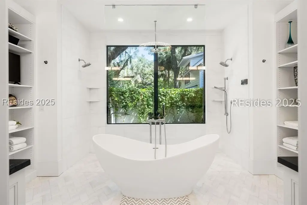 Where contemporary elegance meets timeless Lowcountry beauty. This 4-bedroom, 4 1/2-bath, 3,435-sq-ft Spring Island masterpiece is a seamless fusion of modern design and the soulful charm of the Lowcountry, perfectly positioned among centuries-old Live Oaks. Built in 2021, this home was honored with the coveted Lighthouse Award in all four categories - Best Kitchen, Best Bathroom, Best Exterior, and Best Overall - a true testament to its exceptional craftsmanship and design. Inside, light pours into open, inviting spaces. The chef's kitchen with premium appliances and an entertainer's layout flows into a great room anchored by a striking tabby fireplace. Walls of windows invite the outdoors in, while an expansive, heated screened porch, complete with outdoor grill, kitchen pass-through, and TV, creates the ultimate gathering space for any season. The first-floor primary suite is a serene retreat, featuring a spa-inspired bath with the rare luxury of both indoor and outdoor showers. Upstairs, each guest suite enjoys its own private bath, offering comfort and privacy. An elevator connects every level, ensuring effortless living. The grounds are a work of art - front and rear water gardens shimmer in the sunlight, while a tranquil backyard water feature sets the stage for evenings around the fire pit under a canopy of stars. Conveniently located to both the River House and Golf House, you'll enjoy Spring Island's unmatched amenities with over 3,000 acres of preserved beauty, an Arnold Palmer golf course, equestrian facilities, tennis and pickleball, deep-water docks, and miles of scenic trails. More than a home, this is an experience - crafted for those who value beauty, nature, and the art of living well.