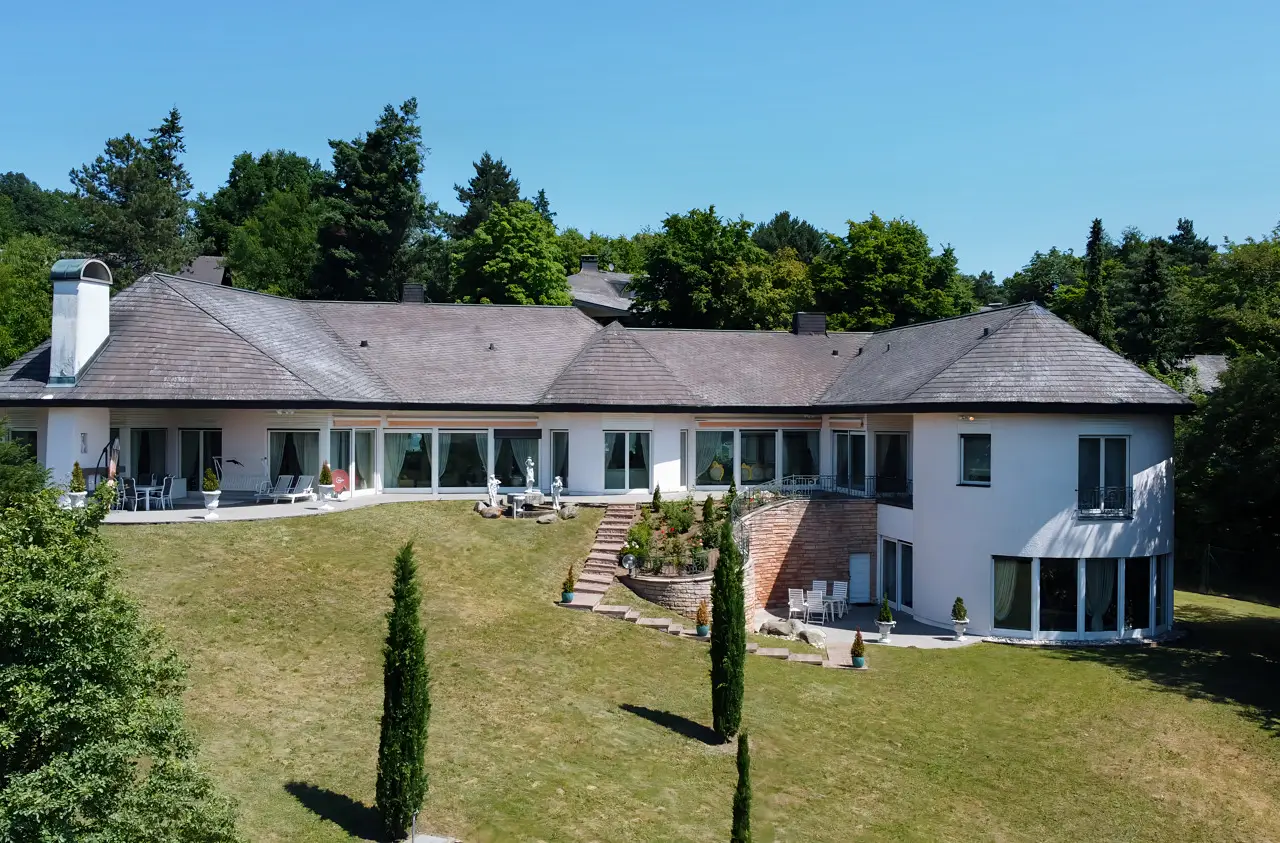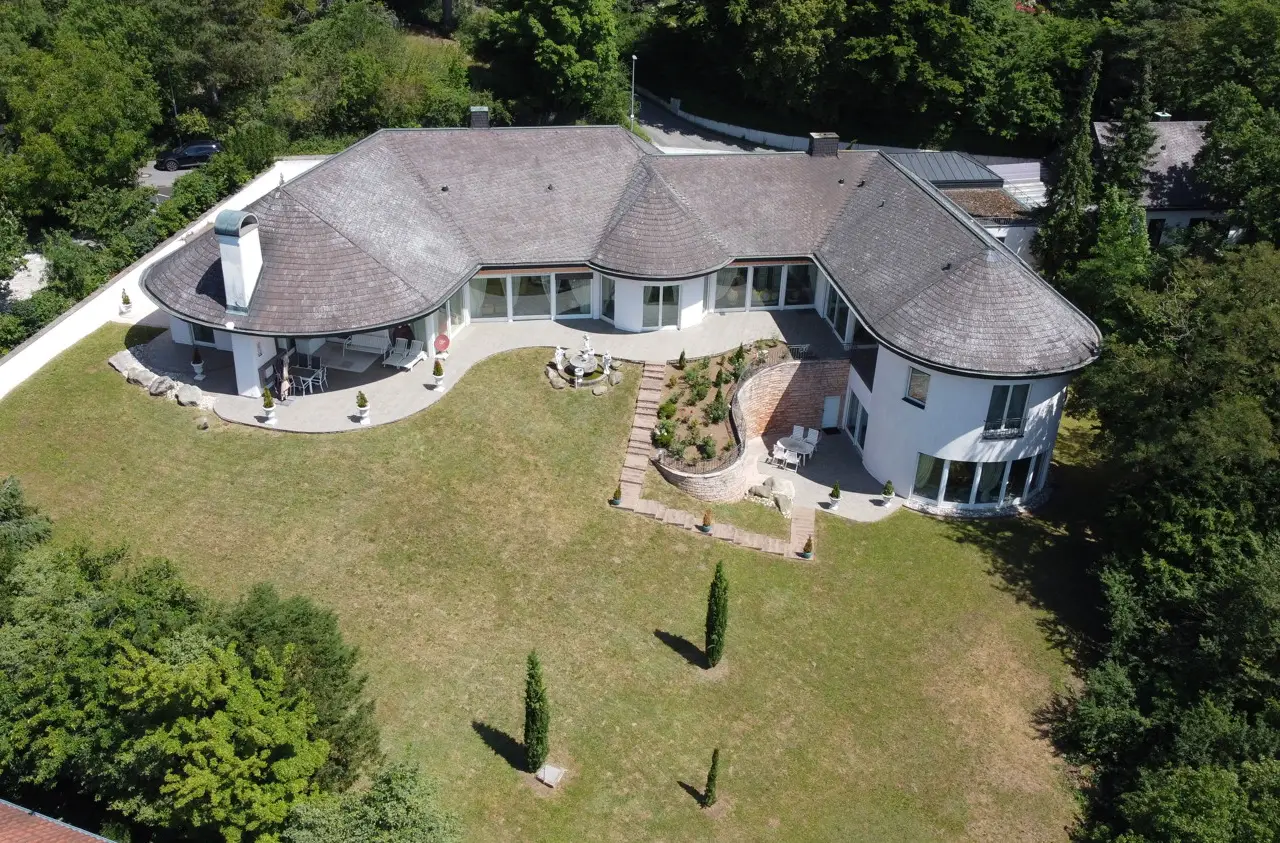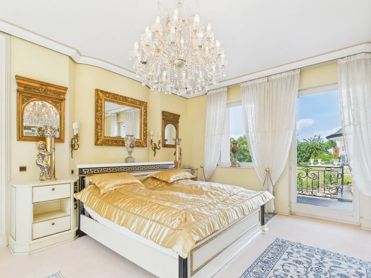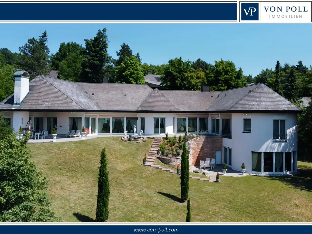 Experience excellence on all levels - this extraordinary villa, designed by the renowned designer Count Pilati, combines classic elegance with the most modern living comfort. Built in 1982, extensively renovated in 2008 and most recently technically updated in 2024, the property is in almost mint condition - an architectural rarity that harmoniously combines historical flair with contemporary luxury. With a generous living space of approx. 620 m² - of which approx. 435 m² is barrier-free on the first floor - this residence meets the highest standards. The space on offer is complemented by a separate granny apartment of approx. 43 m² with a high-quality kitchen, an exclusive wellness area of approx. 150 m², spacious terraces and impressive views over the surrounding countryside. The completely secluded plot of approx. 2,758 m² guarantees absolute privacy and maximum comfort. An impressive feeling of space opens up as soon as you enter. The light-flooded entrance hall leads into spacious reception areas, living hall, lounge, library, dining and breakfast room as well as an elegant gallery. Each room impresses with clear lines, spaciousness and an uncompromisingly exclusive interior. Exquisitely crafted marble floors with mosaic inlays, silk-covered fitted wardrobes, stylish ceiling decorations and finely coordinated Italian furnishings underline the prestigious character. Three luxurious bedroom suites with adjoining dressing areas offer maximum comfort and privacy. The main bathrooms are a gem of classic opulence - fitted with fine marble, built-in mirrors and gold-plated fittings. The spacious kitchen is equipped with modern built-in appliances and is complemented by pantries, a separate sideboard and a functional utility area. Here too, high-quality materials and stylish details dominate. A special highlight is the wellness area with approx. 150 m²: a stylish indoor swimming pool with a 5 × 10 m pool, changing and shower areas, a high-quality sauna and an open-air seating area. Elegant glass mosaics and atmospheric lighting concepts create a luxurious atmosphere. Comfortable warmth is provided by central oil underfloor heating. In addition, convectors sunk into the floor with brass grilles on the panoramic windows offer a technically and creatively sophisticated solution. Two open fireplaces - in the living area and in the covered outdoor area - as well as fountains lend the property additional elegance. The outdoor facilities are as well thought-out as they are magnificent: a double garage, additional parking spaces and a lovingly landscaped garden with mature trees combine privacy, nature and prestige. The well-tended green area is ideal for retreats and stylish garden parties. The villa is located in a sought-after, discreet residential area with the perfect combination of tranquillity and urban proximity. Bamberg impresses with its proximity to golf clubs, top restaurants and airports. This property is a refuge for people who do not seek the extraordinary, but expect it. A rare opportunity to combine architectural class with emotional appeal. Arrange a personal viewing today - and be inspired by the atmosphere of this villa.