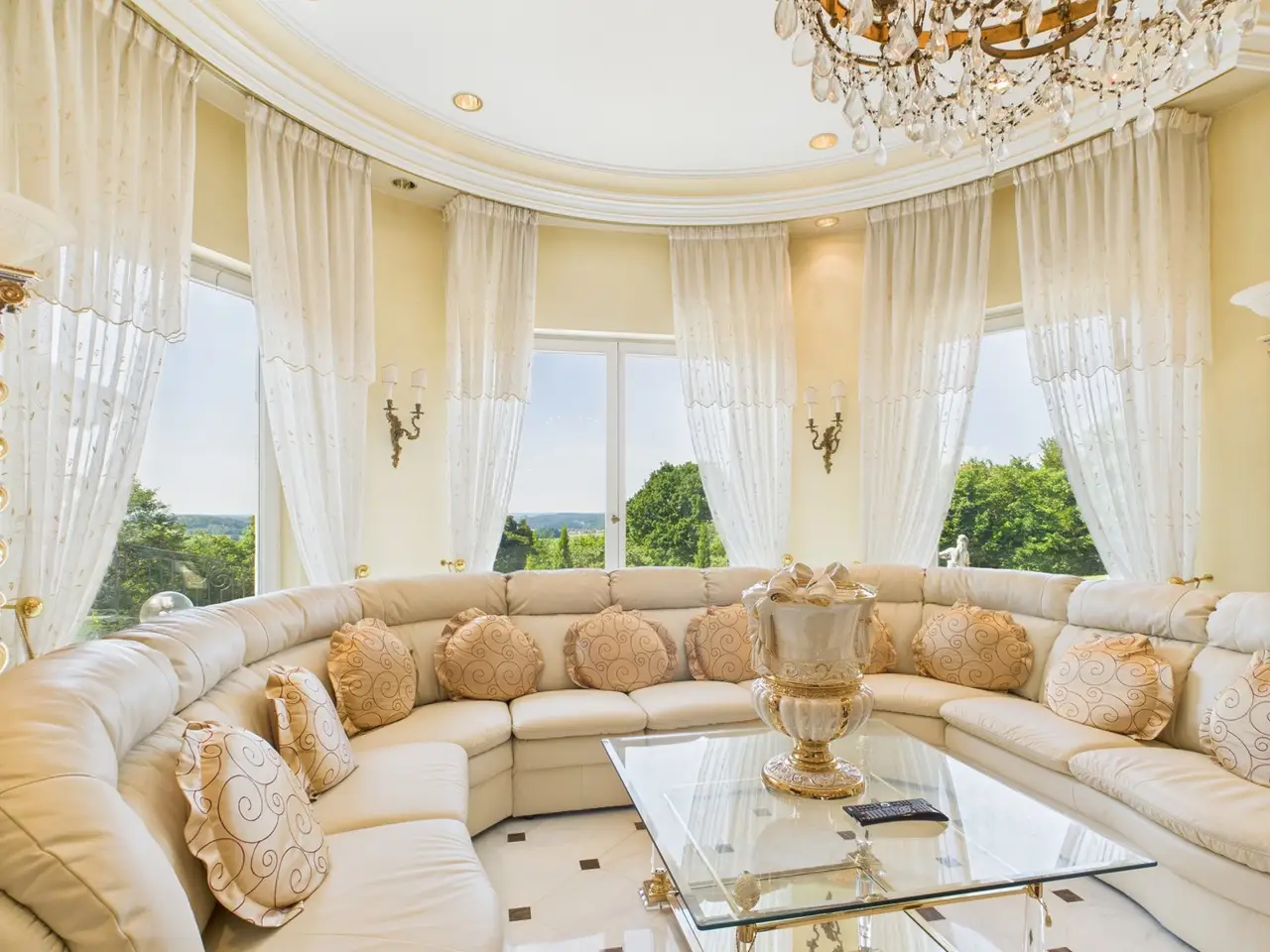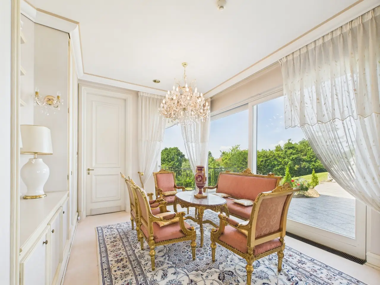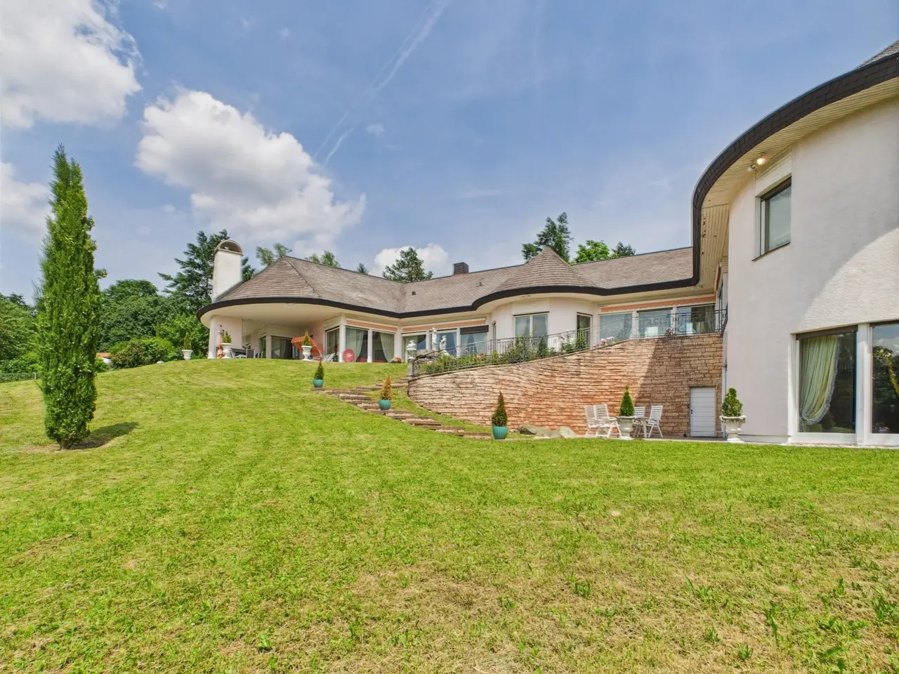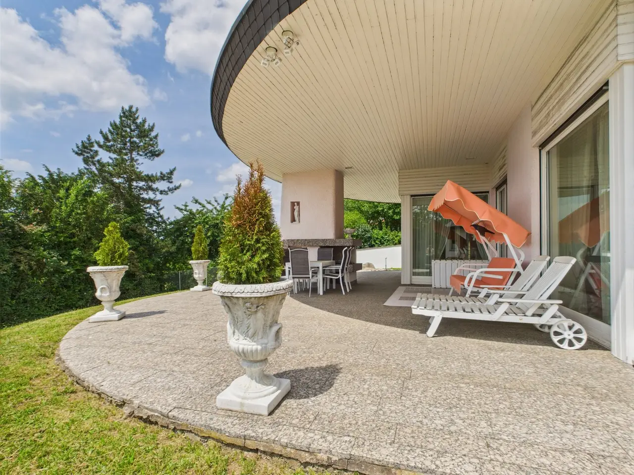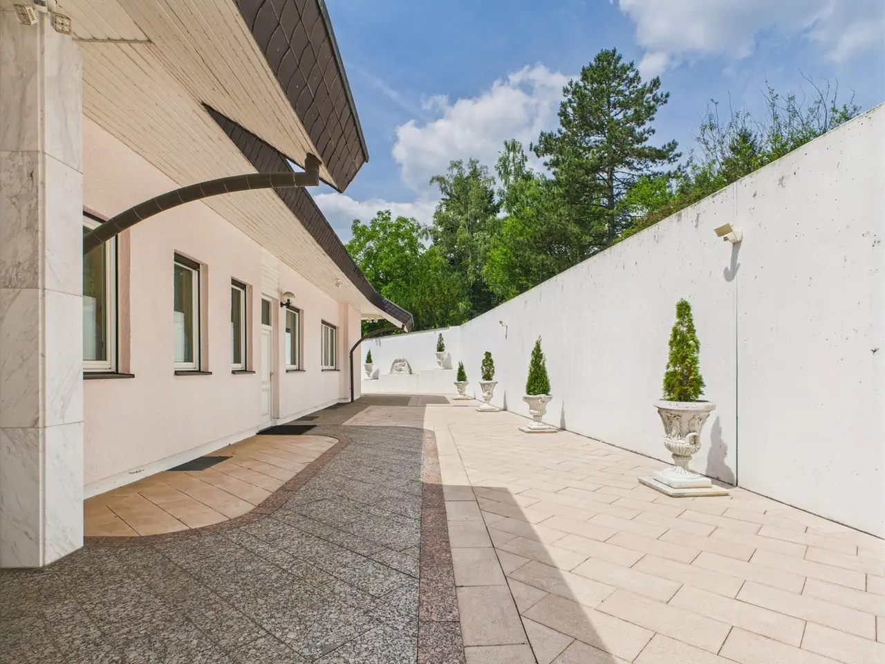 Experience excellence on all levels - this extraordinary villa, designed by the renowned designer Count Pilati, combines classic elegance with the most modern living comfort. Built in 1982, extensively renovated in 2008 and most recently technically updated in 2024, the property is in almost mint condition - an architectural rarity that harmoniously combines historical flair with contemporary luxury. With a generous living space of approx. 620 m² - of which approx. 435 m² is barrier-free on the first floor - this residence meets the highest standards. The space on offer is complemented by a separate granny apartment of approx. 43 m² with a high-quality kitchen, an exclusive wellness area of approx. 150 m², spacious terraces and impressive views over the surrounding countryside. The completely secluded plot of approx. 2,758 m² guarantees absolute privacy and maximum comfort. An impressive feeling of space opens up as soon as you enter. The light-flooded entrance hall leads into spacious reception areas, living hall, lounge, library, dining and breakfast room as well as an elegant gallery. Each room impresses with clear lines, spaciousness and an uncompromisingly exclusive interior. Exquisitely crafted marble floors with mosaic inlays, silk-covered fitted wardrobes, stylish ceiling decorations and finely coordinated Italian furnishings underline the prestigious character. Three luxurious bedroom suites with adjoining dressing areas offer maximum comfort and privacy. The main bathrooms are a gem of classic opulence - fitted with fine marble, built-in mirrors and gold-plated fittings. The spacious kitchen is equipped with modern built-in appliances and is complemented by pantries, a separate sideboard and a functional utility area. Here too, high-quality materials and stylish details dominate. A special highlight is the wellness area with approx. 150 m²: a stylish indoor swimming pool with a 5 × 10 m pool, changing and shower areas, a high-quality sauna and an open-air seating area. Elegant glass mosaics and atmospheric lighting concepts create a luxurious atmosphere. Comfortable warmth is provided by central oil underfloor heating. In addition, convectors sunk into the floor with brass grilles on the panoramic windows offer a technically and creatively sophisticated solution. Two open fireplaces - in the living area and in the covered outdoor area - as well as fountains lend the property additional elegance. The outdoor facilities are as well thought-out as they are magnificent: a double garage, additional parking spaces and a lovingly landscaped garden with mature trees combine privacy, nature and prestige. The well-tended green area is ideal for retreats and stylish garden parties. The villa is located in a sought-after, discreet residential area with the perfect combination of tranquillity and urban proximity. Bamberg impresses with its proximity to golf clubs, top restaurants and airports. This property is a refuge for people who do not seek the extraordinary, but expect it. A rare opportunity to combine architectural class with emotional appeal. Arrange a personal viewing today - and be inspired by the atmosphere of this villa.