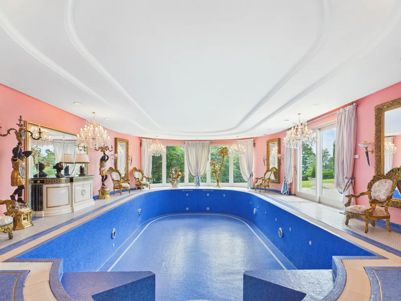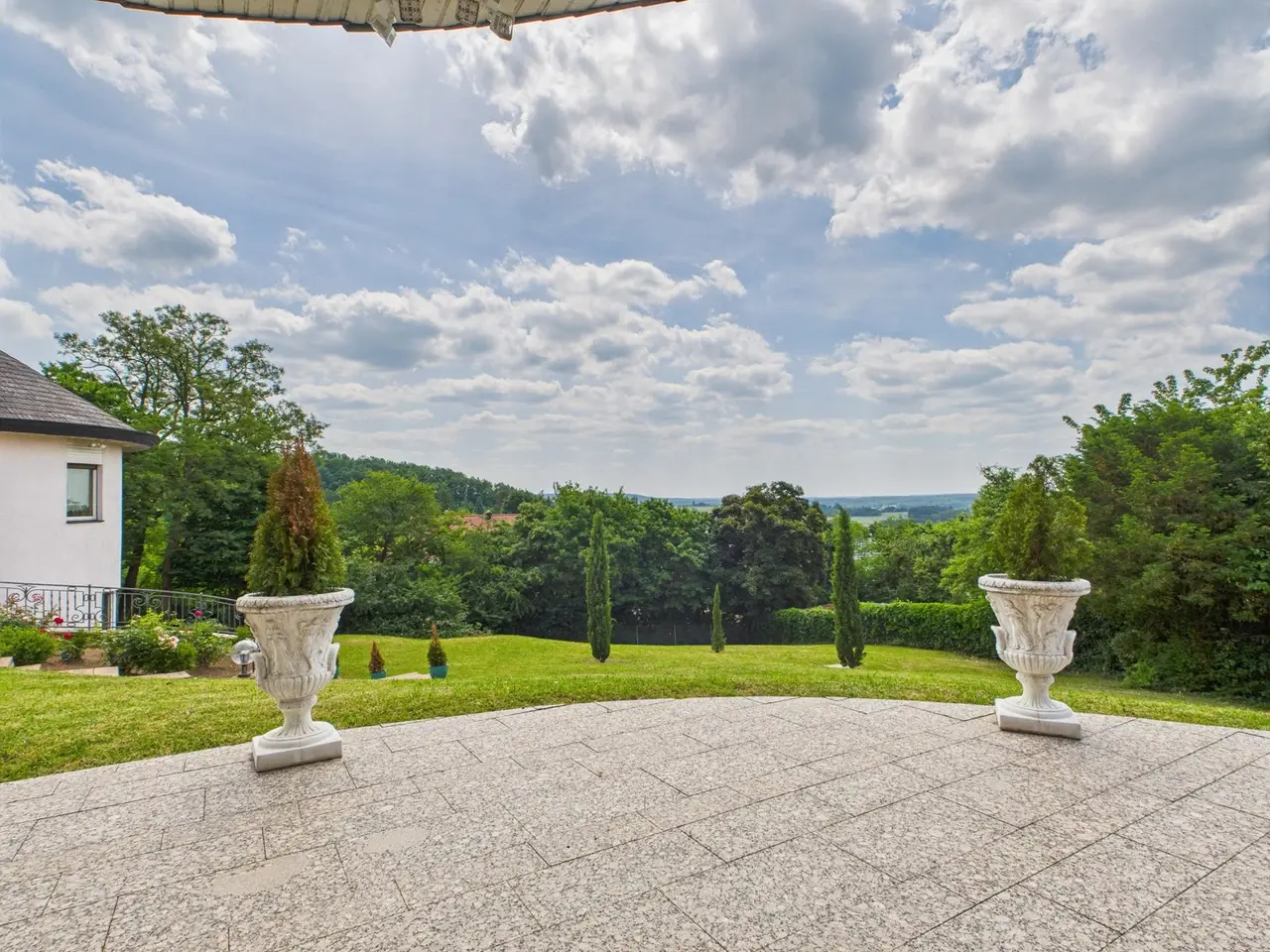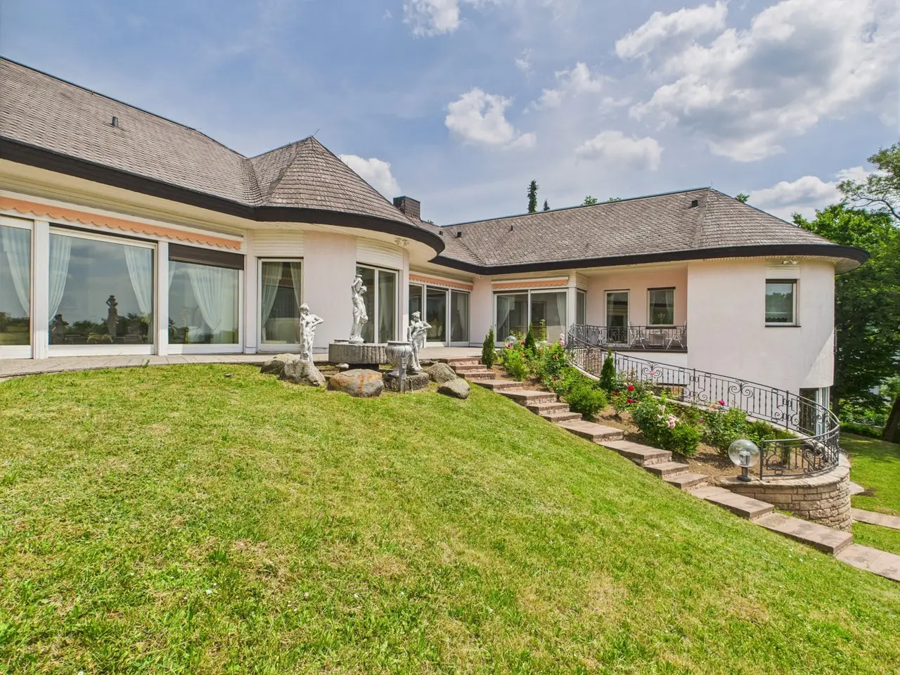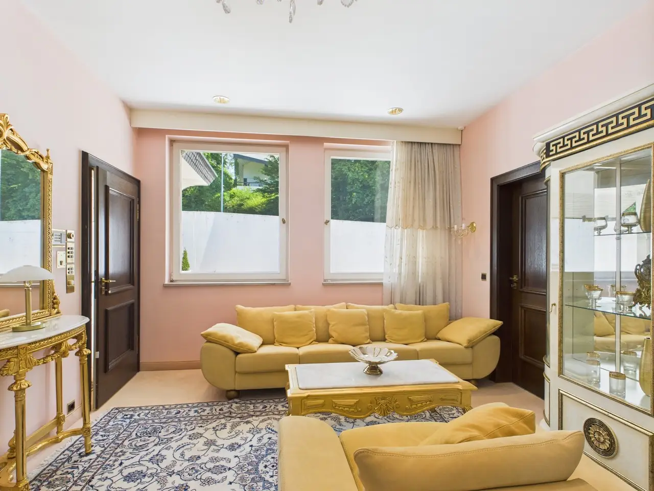Experience excellence on all levels - this extraordinary villa, designed by the renowned designer Count Pilati, combines classic elegance with the most modern living comfort. Built in 1982, extensively renovated in 2008 and most recently technically updated in 2024, the property is in almost mint condition - an architectural rarity that harmoniously combines historical flair with contemporary luxury. With a generous living space of approx. 620 m² - of which approx. 435 m² is barrier-free on the first floor - this residence meets the highest standards. The space on offer is complemented by a separate granny apartment of approx. 43 m² with a high-quality kitchen, an exclusive wellness area of approx. 150 m², spacious terraces and impressive views over the surrounding countryside. The completely secluded plot of approx. 2,758 m² guarantees absolute privacy and maximum comfort. An impressive feeling of space opens up as soon as you enter. The light-flooded entrance hall leads into spacious reception areas, living hall, lounge, library, dining and breakfast room as well as an elegant gallery. Each room impresses with clear lines, spaciousness and an uncompromisingly exclusive interior. Exquisitely crafted marble floors with mosaic inlays, silk-covered fitted wardrobes, stylish ceiling decorations and finely coordinated Italian furnishings underline the prestigious character. Three luxurious bedroom suites with adjoining dressing areas offer maximum comfort and privacy. The main bathrooms are a gem of classic opulence - fitted with fine marble, built-in mirrors and gold-plated fittings. The spacious kitchen is equipped with modern built-in appliances and is complemented by pantries, a separate sideboard and a functional utility area. Here too, high-quality materials and stylish details dominate. A special highlight is the wellness area with approx. 150 m²: a stylish indoor swimming pool with a 5 × 10 m pool, changing and shower areas, a high-quality sauna and an open-air seating area. Elegant glass mosaics and atmospheric lighting concepts create a luxurious atmosphere. Comfortable warmth is provided by central oil underfloor heating. In addition, convectors sunk into the floor with brass grilles on the panoramic windows offer a technically and creatively sophisticated solution. Two open fireplaces - in the living area and in the covered outdoor area - as well as fountains lend the property additional elegance. The outdoor facilities are as well thought-out as they are magnificent: a double garage, additional parking spaces and a lovingly landscaped garden with mature trees combine privacy, nature and prestige. The well-tended green area is ideal for retreats and stylish garden parties. The villa is located in a sought-after, discreet residential area with the perfect combination of tranquillity and urban proximity. Bamberg impresses with its proximity to golf clubs, top restaurants and airports. This property is a refuge for people who do not seek the extraordinary, but expect it. A rare opportunity to combine architectural class with emotional appeal. Arrange a personal viewing today - and be inspired by the atmosphere of this villa.