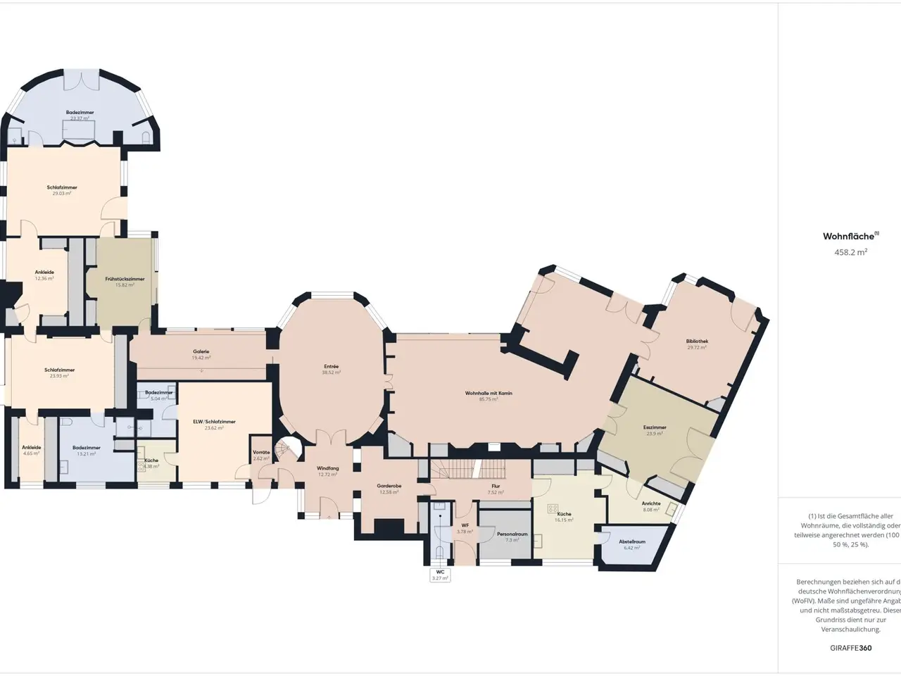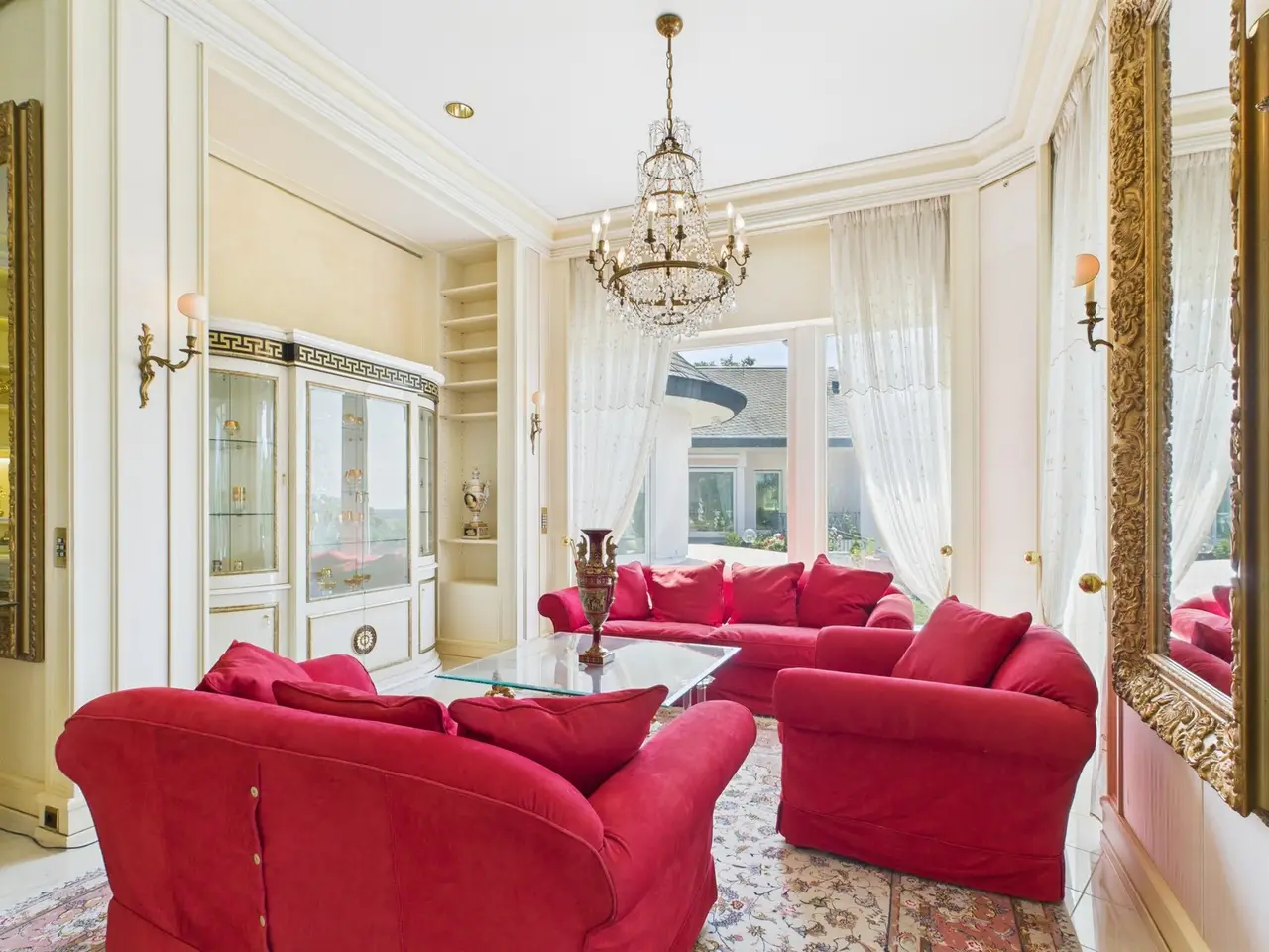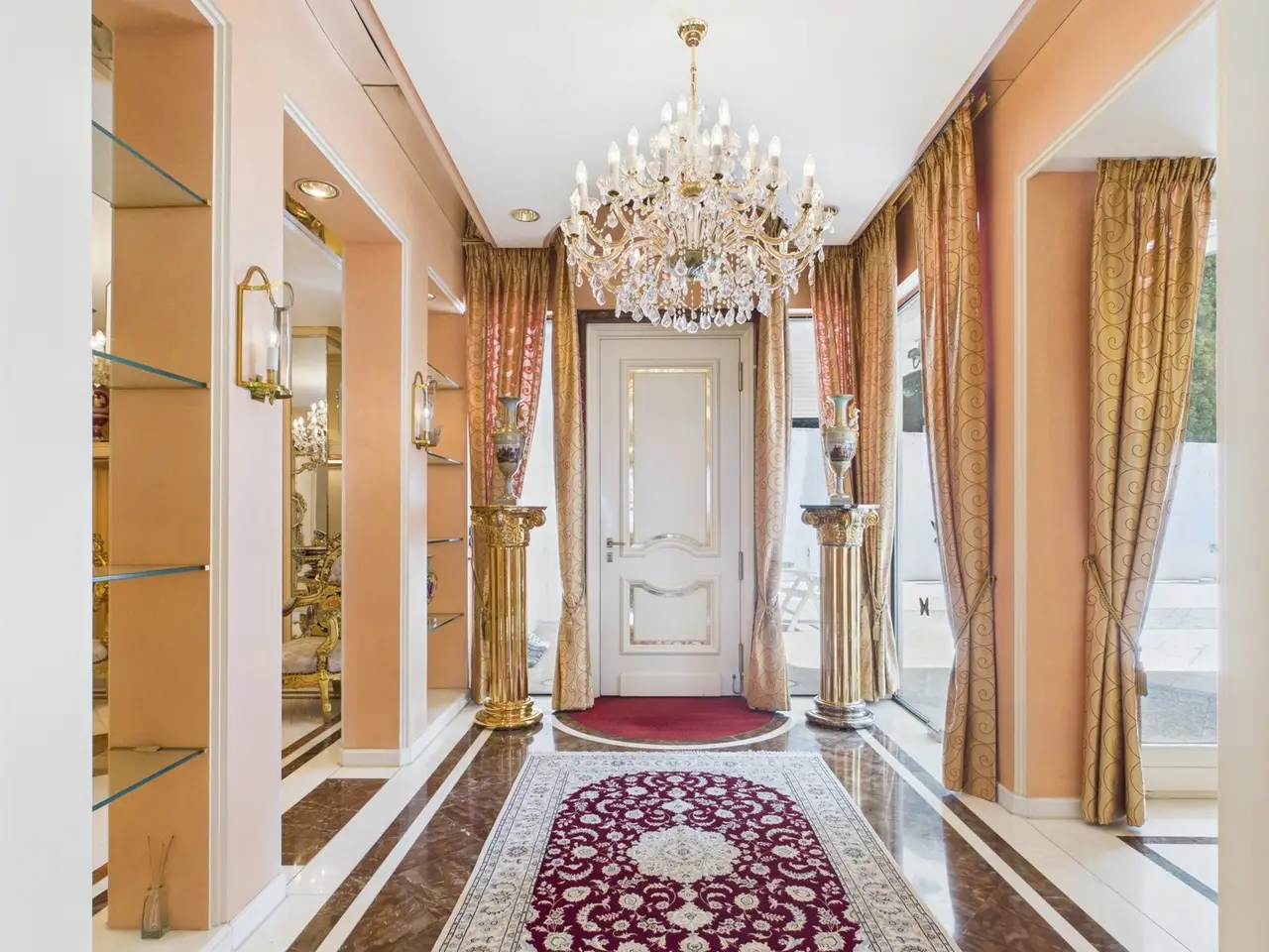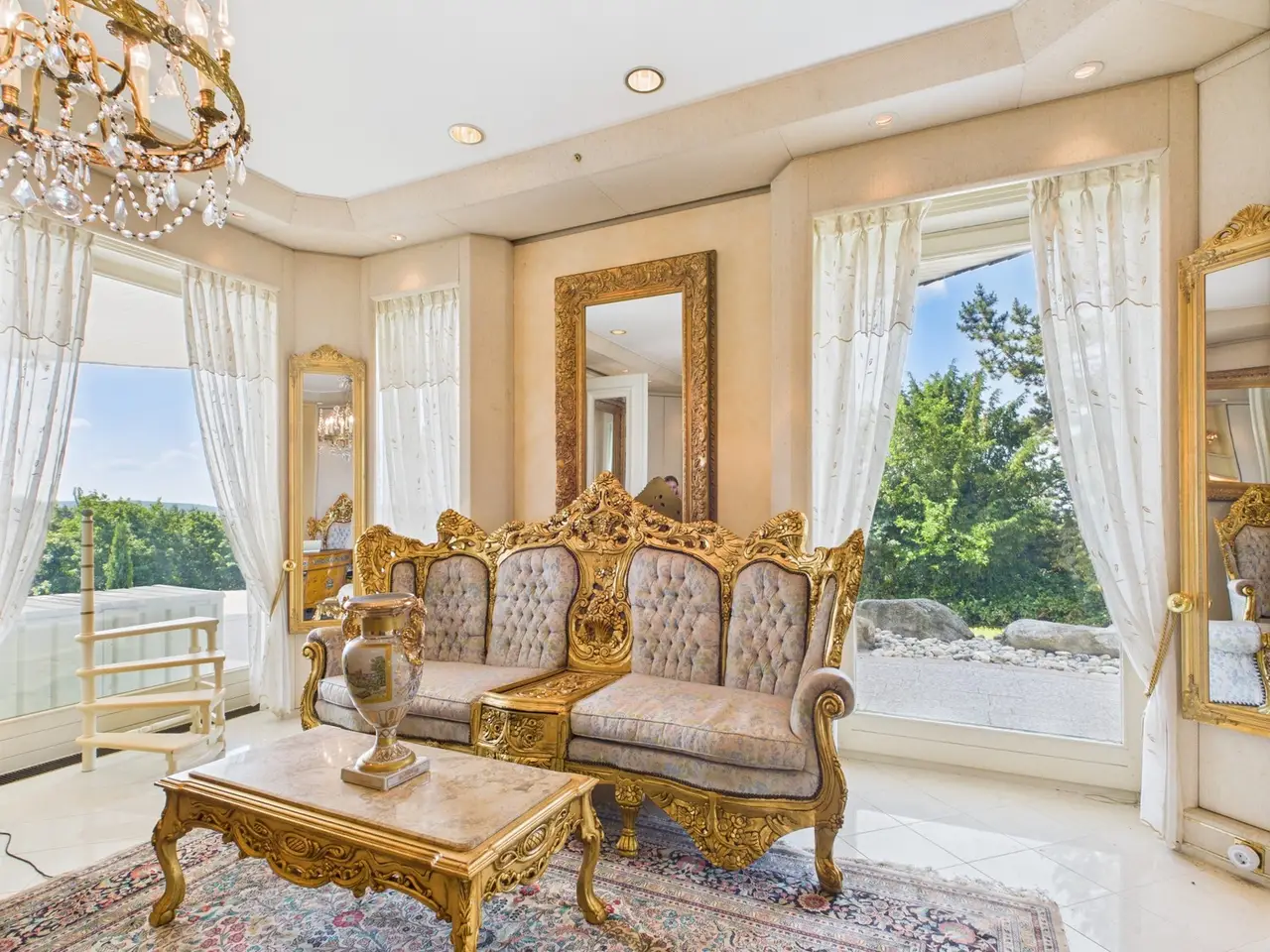 Experience excellence on all levels - this extraordinary villa, designed by the renowned designer Count Pilati, combines classic elegance with the most modern living comfort. Built in 1982, extensively renovated in 2008 and most recently technically updated in 2024, the property is in almost mint condition - an architectural rarity that harmoniously combines historical flair with contemporary luxury. With a generous living space of approx. 620 m² - of which approx. 435 m² is barrier-free on the first floor - this residence meets the highest standards. The space on offer is complemented by a separate granny apartment of approx. 43 m² with a high-quality kitchen, an exclusive wellness area of approx. 150 m², spacious terraces and impressive views over the surrounding countryside. The completely secluded plot of approx. 2,758 m² guarantees absolute privacy and maximum comfort. An impressive feeling of space opens up as soon as you enter. The light-flooded entrance hall leads into spacious reception areas, living hall, lounge, library, dining and breakfast room as well as an elegant gallery. Each room impresses with clear lines, spaciousness and an uncompromisingly exclusive interior. Exquisitely crafted marble floors with mosaic inlays, silk-covered fitted wardrobes, stylish ceiling decorations and finely coordinated Italian furnishings underline the prestigious character. Three luxurious bedroom suites with adjoining dressing areas offer maximum comfort and privacy. The main bathrooms are a gem of classic opulence - fitted with fine marble, built-in mirrors and gold-plated fittings. The spacious kitchen is equipped with modern built-in appliances and is complemented by pantries, a separate sideboard and a functional utility area. Here too, high-quality materials and stylish details dominate. A special highlight is the wellness area with approx. 150 m²: a stylish indoor swimming pool with a 5 × 10 m pool, changing and shower areas, a high-quality sauna and an open-air seating area. Elegant glass mosaics and atmospheric lighting concepts create a luxurious atmosphere. Comfortable warmth is provided by central oil underfloor heating. In addition, convectors sunk into the floor with brass grilles on the panoramic windows offer a technically and creatively sophisticated solution. Two open fireplaces - in the living area and in the covered outdoor area - as well as fountains lend the property additional elegance. The outdoor facilities are as well thought-out as they are magnificent: a double garage, additional parking spaces and a lovingly landscaped garden with mature trees combine privacy, nature and prestige. The well-tended green area is ideal for retreats and stylish garden parties. The villa is located in a sought-after, discreet residential area with the perfect combination of tranquillity and urban proximity. Bamberg impresses with its proximity to golf clubs, top restaurants and airports. This property is a refuge for people who do not seek the extraordinary, but expect it. A rare opportunity to combine architectural class with emotional appeal. Arrange a personal viewing today - and be inspired by the atmosphere of this villa.