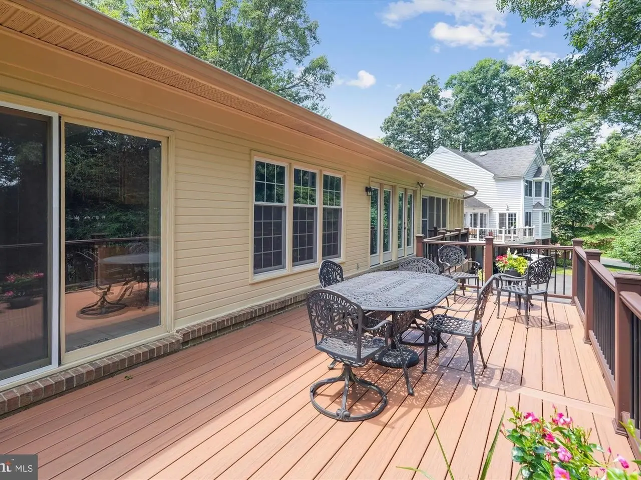 Offering the opportunity for multi-generational living, 9509 Windcroft Way is an exceptional residence nestled on a quiet cul-de-sac in the sought after Falls Reach neighborhood. This beautifully designed six-bedroom home offers the perfect blend of comfort, functionality and elegance. Step inside the gracious two-story entry to a main level that truly has it all: a bright and welcoming living room, a luxurious primary suite with its' private full bath and dressing area, an inviting eat-in kitchen, a cozy family room and a formal living room. The sunny enclosed porch and open deck complete this floor - making all major living areas easily accessible. Upstairs you'll find a spacious, open landing area that provides flexible space for a home office, study, or additional lounge area. Three well-appointed bedrooms and two full baths complete the upper level, including a private ensuite bath in one of the bedrooms - ideal for guests or a second primary suite option. Whether used for family game nights, fitness equipment or a creative studio, the lower-level recreation room offers plenty of space and versatility. Connected to the main home - yet offering privacy and independence - is a well-appointed apartment. This separate living space features: two comfortable bedrooms, two bathrooms, a spacious living room, a full kitchen, an adjoining dining area and laundry. The apartment has its own private entrance accessed via glass doors that open to an inviting outdoor patio- perfect for enjoying fresh air, container gardening, or casual gatherings. This entrance also conveniently connects to dedicated parking, ensuring ease and autonomy for apartment occupants. Whether you're looking to accommodate extended family or host long-term guests, this home's unique layout offers both connection and independence, all under one roof.