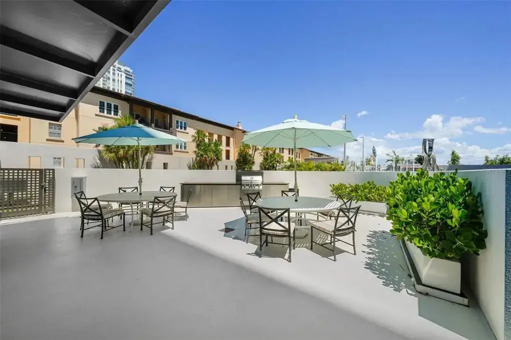 *** One of a Kind Condo *** This home offers a very special opportunity, the ease of metropolitan condo living with the feel of a gorgeous backyard. Truly one of a kind at the Salvador and perhaps in all of St Pete, this home offers a 1000+ SF terrace covered in artificial turf that's made with heat-reflective technology, providing a cool, maintenance free area for dining and relaxing outdoors. The terrace overlooks the 3rd floor amenities deck, downtown, the Dali museum, and Tampa Bay. An open floor plan with the Kitchen, Dining, and Living rooms all overlooking the terrace through floor to ceiling windows provide a most elegant space to entertain, in and out of doors. This condo sets out from the rest of the building and therefore has no adjacent units next to it, providing the ultimate in privacy. Engineered hardwood floors flow throughout the 1555sf of this home. A large, open, contemporary kitchen with Quartz countertops, Bosch appliances, Gas Range, and Wine Cooler has abundant natural light. The living room features a built-in entertainment center with an additional beverage cooler and motorized blinds. The primary bedroom with an oversized walk-in closet, is en-suite with a deep soak tub, dual sinks, and large shower. The guest bath has a tub/shower with shower door and both bedrooms have tall windows with blackout shades. The home has two parking spaces and a climate-controlled storage unit. The Salvador, a LEEDS certified green 74 unit building has great amenities in a saltwater pool, spa, state-of-the-art fitness center, social room, grilling station, gated dog park with dog washing station, sculpture garden and outdoor fire pit area. Concierge and on-site management are convenient features for the owners. All located within easy access to all that downtown living offers and yet, located in a quiet part of town when you’re ready to wind down. Call for your private tour of this exquisite and unique home.