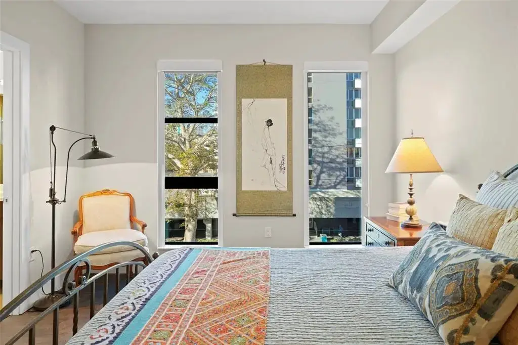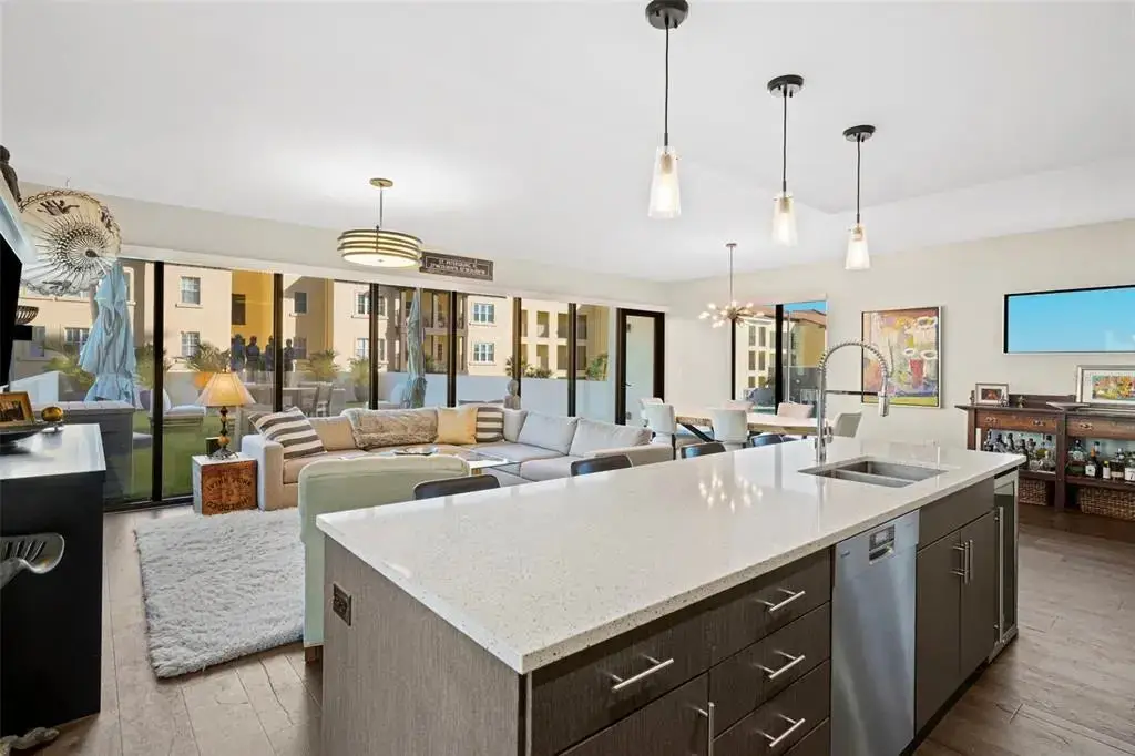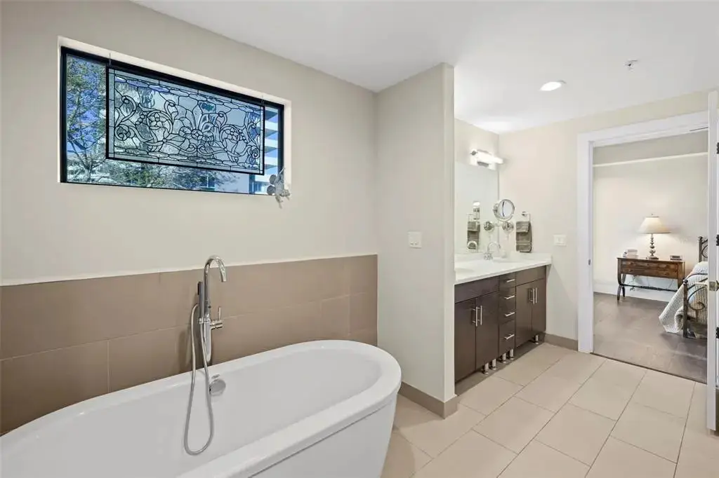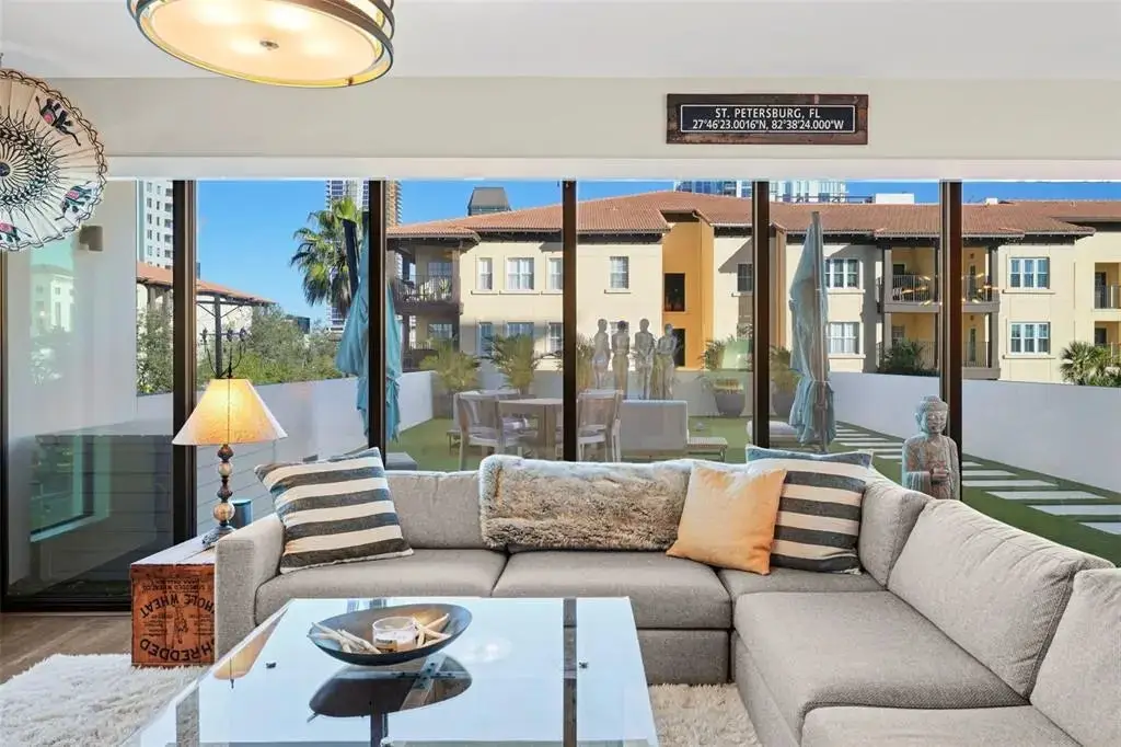 Floor-to-ceiling windows overlooking downtown and Tampa Bay