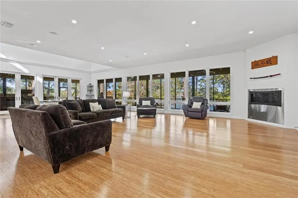 Experience refined waterfront living on this 2.2-acre estate with 186 feet of deep-water frontage along beautiful Fish River. This 5,200 sq. ft. concrete constructed home with a metal roof blends modern design with elegant Asian-inspired details and offers the perfect balance of sophistication and natural beauty.Interior Highlights:Step inside to an open, light-filled floor plan surrounded by expansive windows that showcase panoramic water views. The Thermador-equipped chef's kitchen features premium appliances, sleek cabinetry, and clean, contemporary lines. With three laundry rooms, generous living areas, and thoughtful design throughout, the home delivers both comfort and functionality in every detail.Exterior Features:Enjoy seamless indoor-outdoor living with a screened outdoor kitchen featuring a built-in grill, dishwasher, sink, and refrigerator ideal for entertaining by the river. The property includes a sprinkler system, heated and cooled metal building with a car lift, and a second metal building with RV storage. Surrounded by mature trees and natural landscape, this estate offers privacy, tranquility, and a true connection to the water. Buyer to verify all information during due diligence.